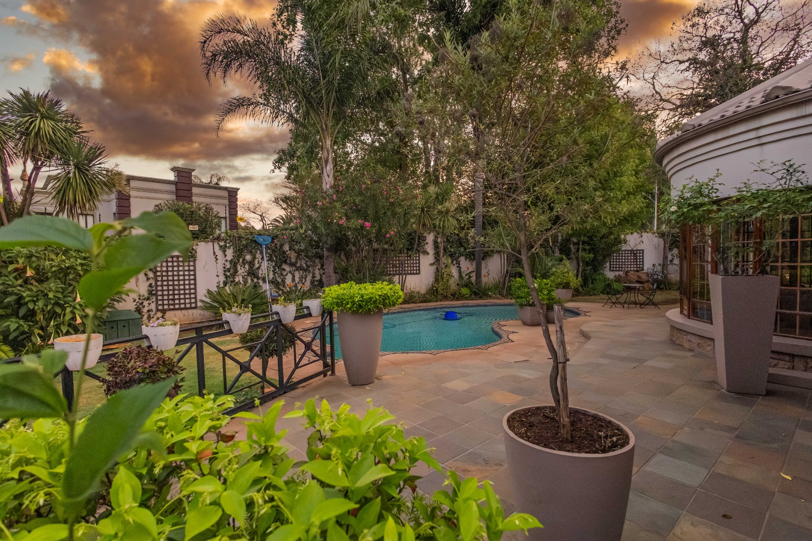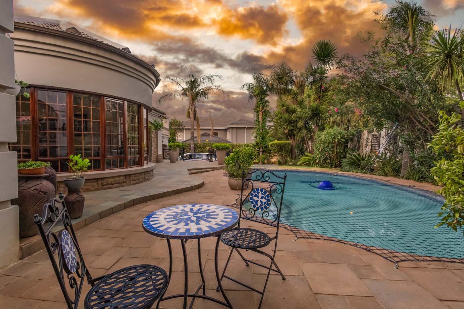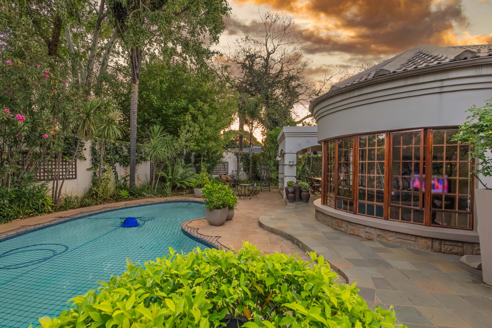 Outdoor features include a covered patio overlooking the sparkling pool, a spacious garden with high boundary walls for privacy, and a double garage with access to a rooftop terrace that can serve as extra entertainment space supported by a slab which could allow the extension to build a cottage!