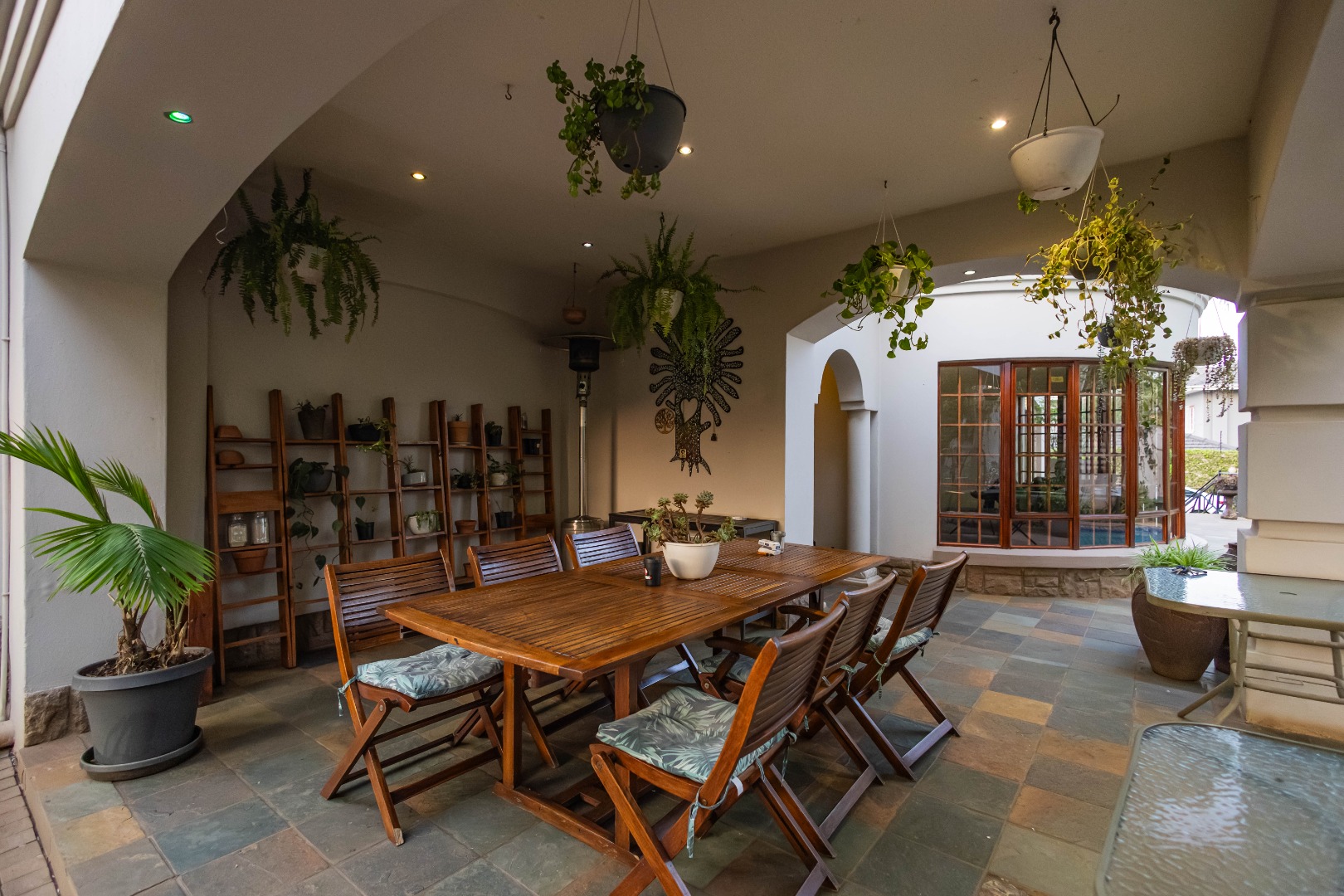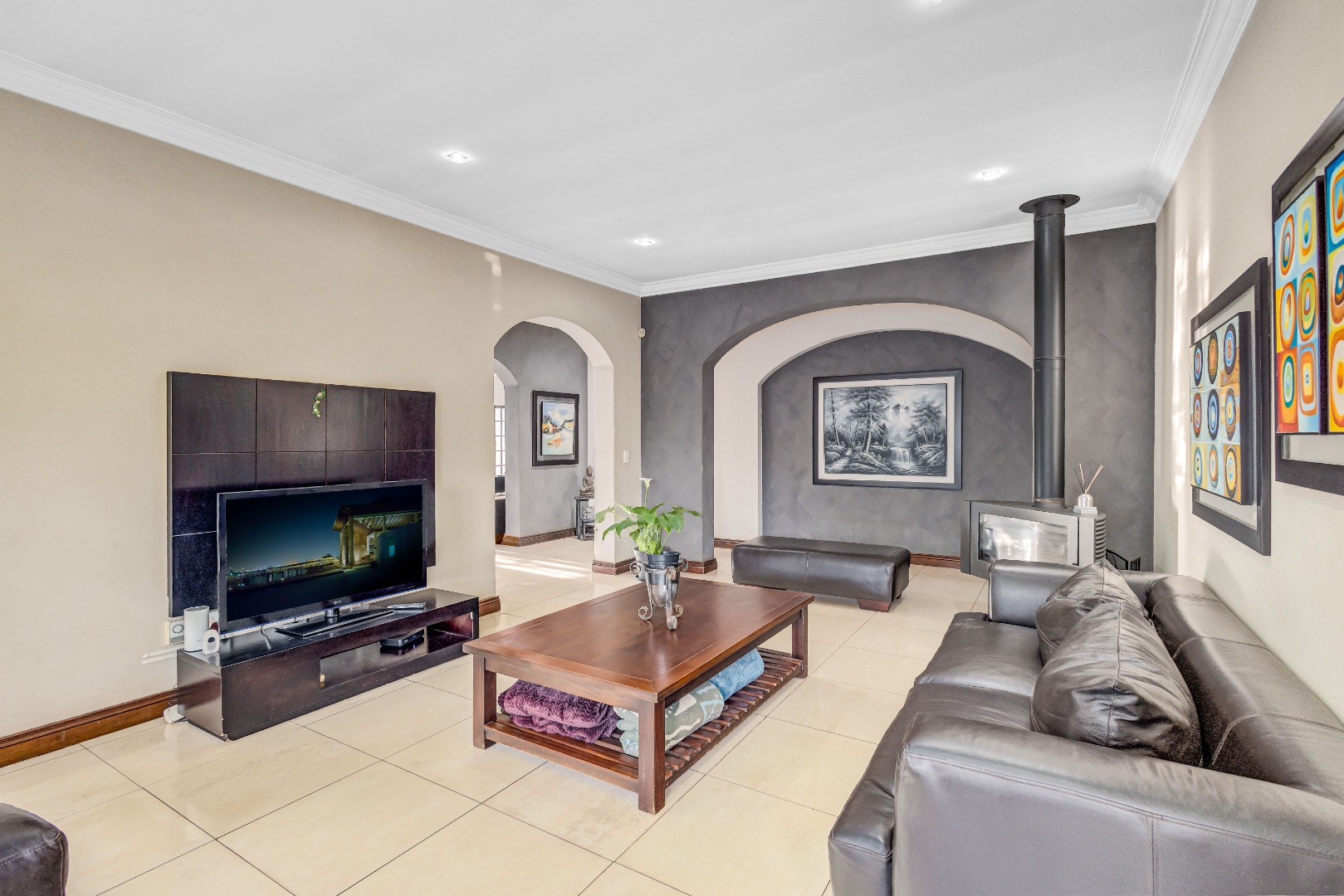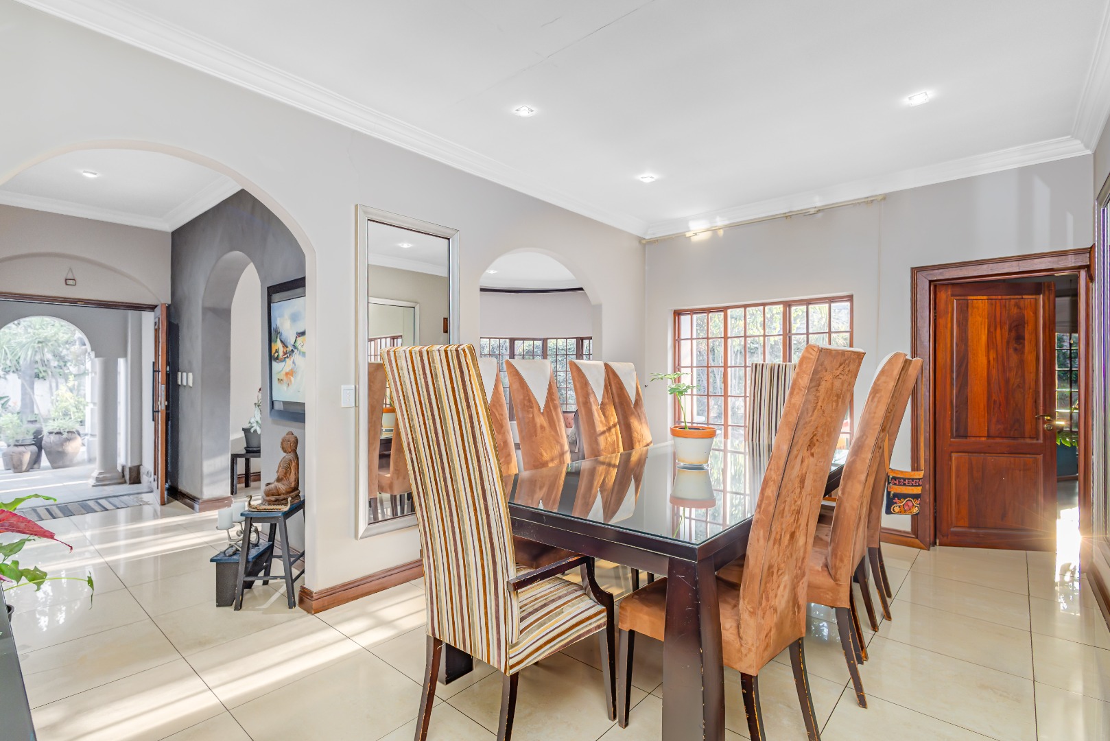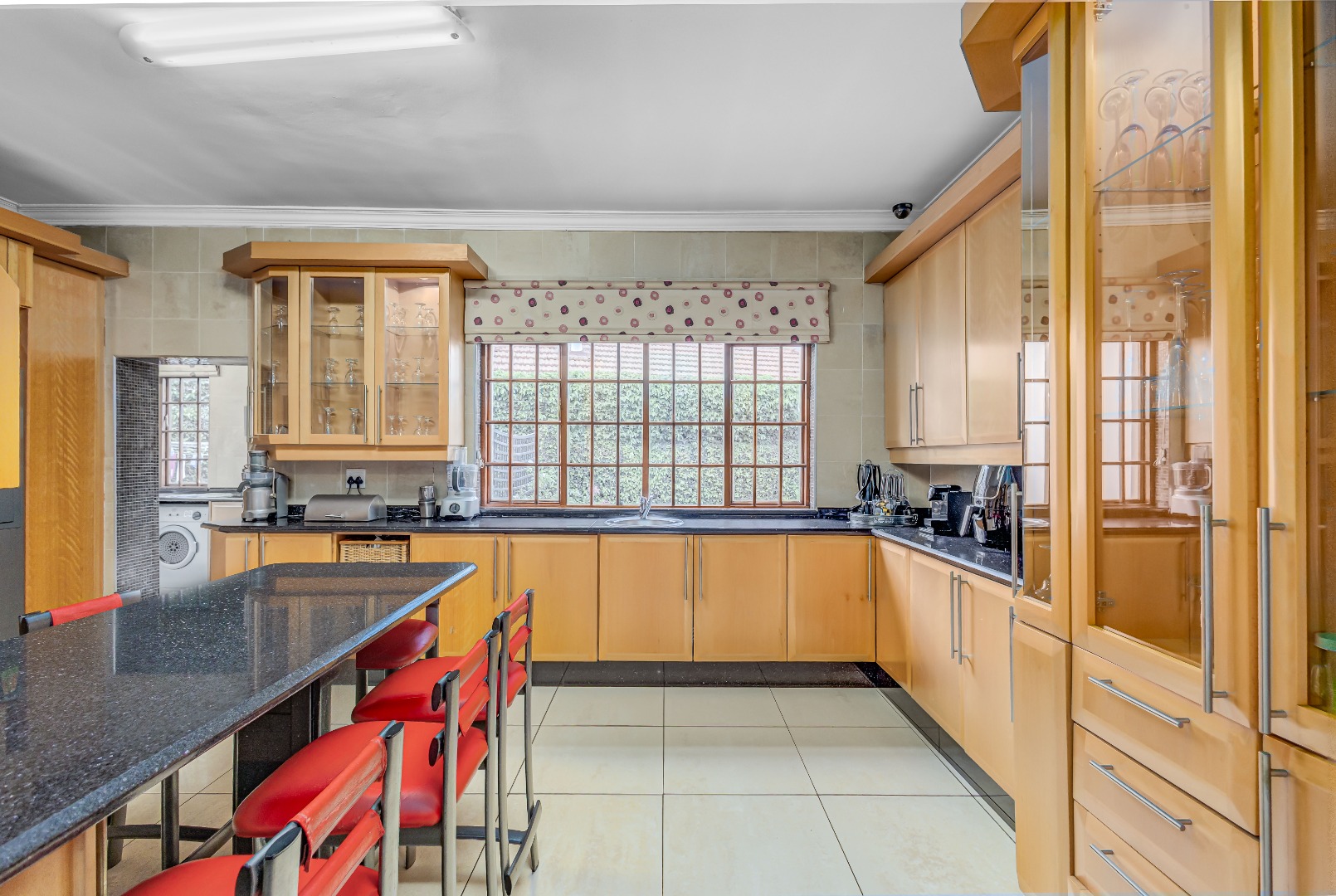 The home flows beautifully, starting with versatile living areas that include a semi open plan TV lounge, a formal lounge or family room, and a dining room. The dining room connects to the generous kitchen, fitted with sleek granite countertops, ample cabinetry, a breakfast nook, electric hob, and double eye level oven, making it a true chef’s delight. A separate scullery provides space for three under counter appliances for added convenience.