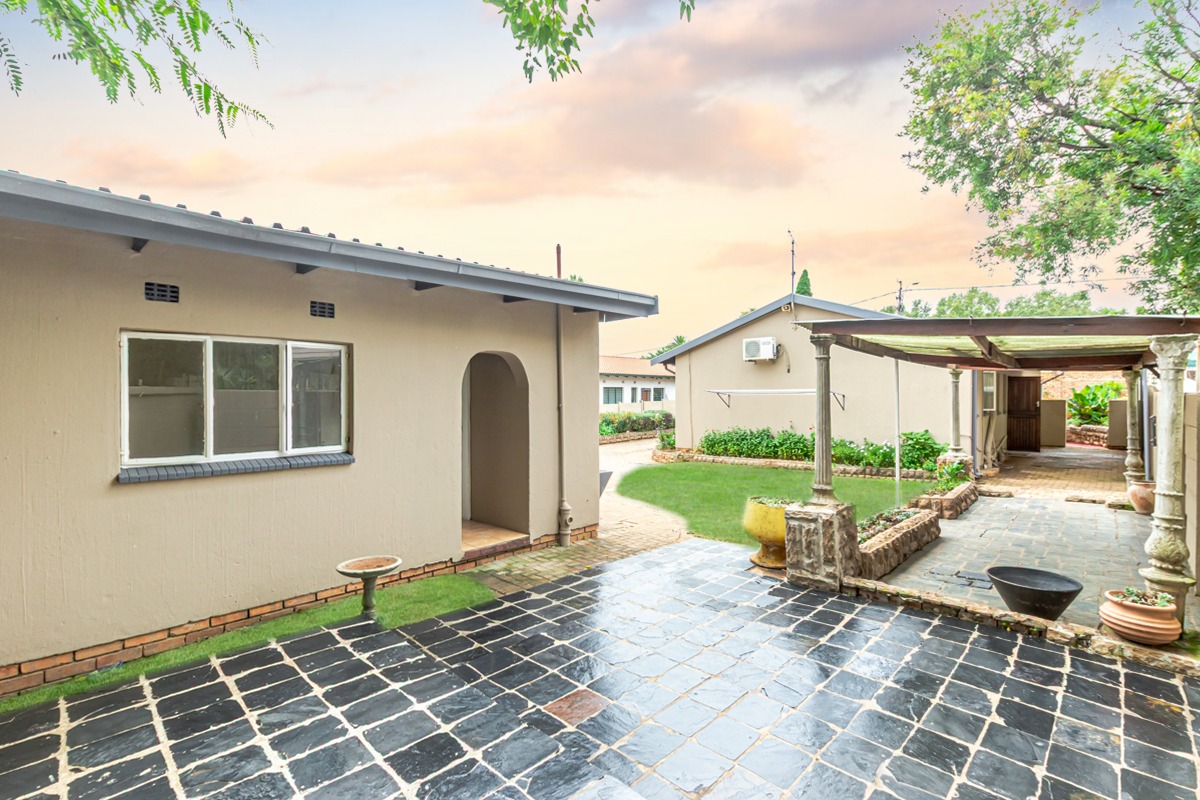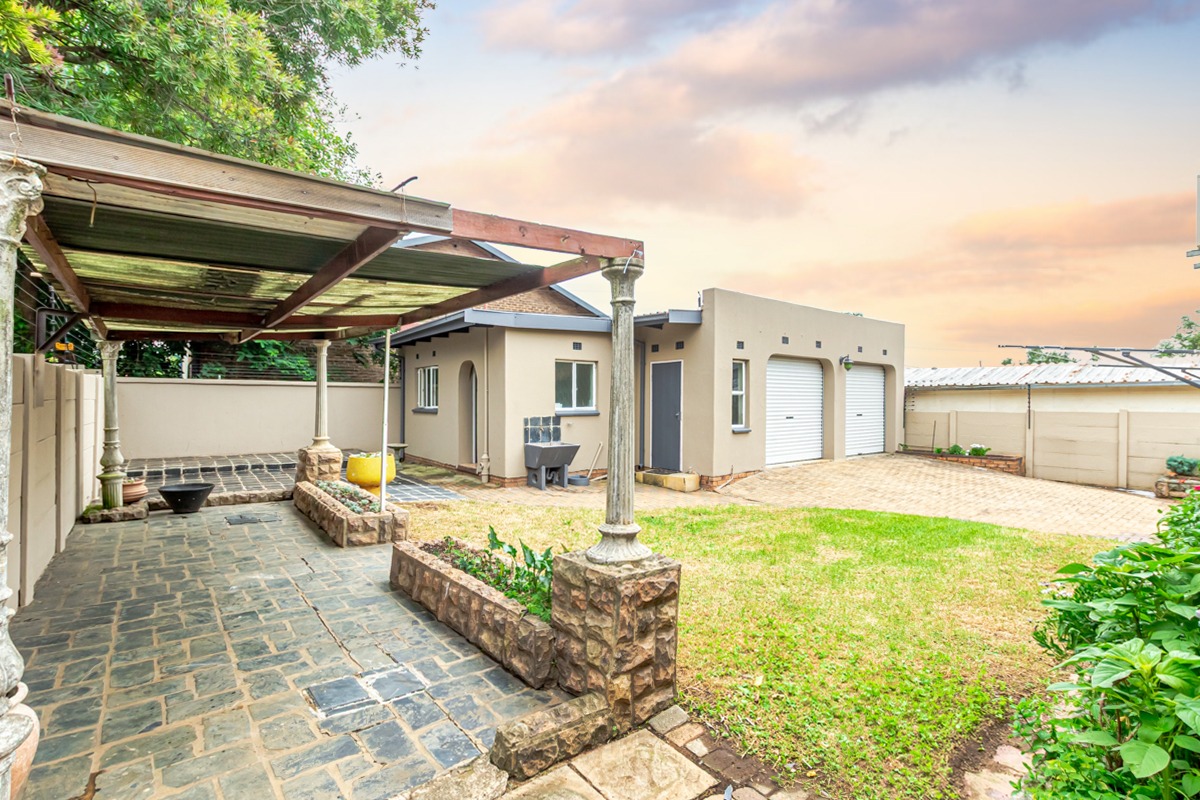 Outside, the property includes a separate flatlet with a bedroom, built-in cupboards, and a bathroom—ideal for guests or extended family. Additional features include a double garage with one automated door, a beautifully manicured garden, and an entertainment area complete with a gazebo and awning.