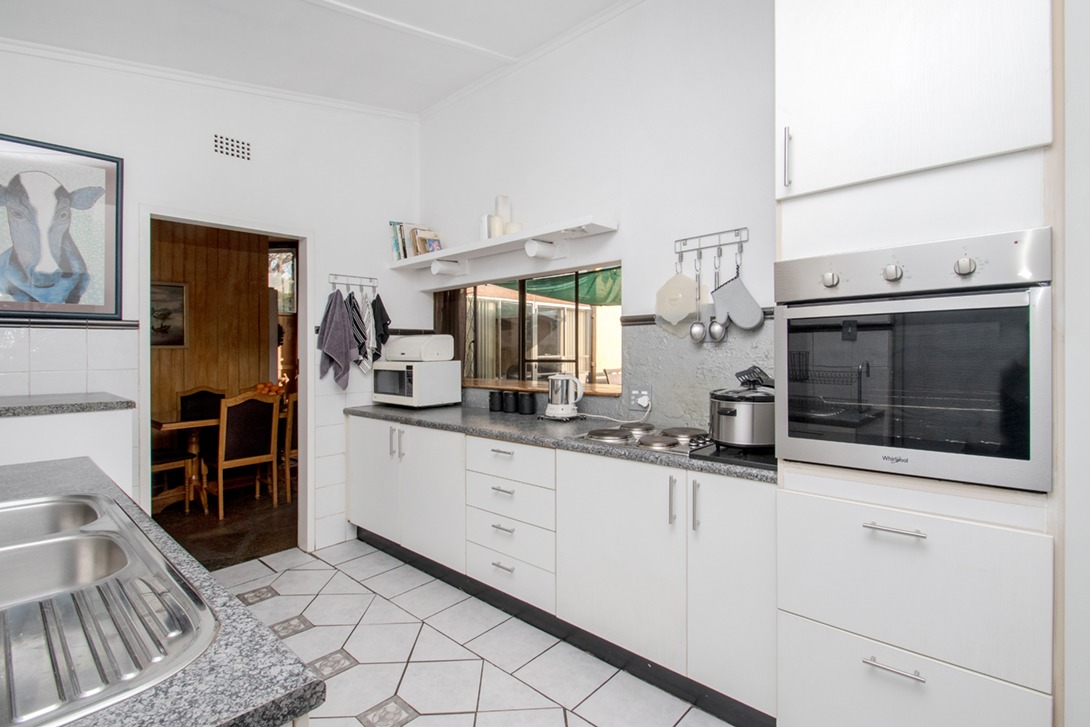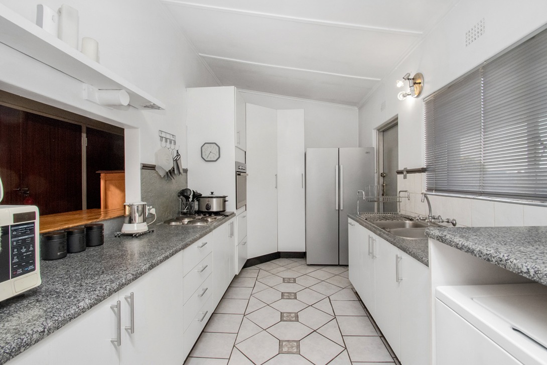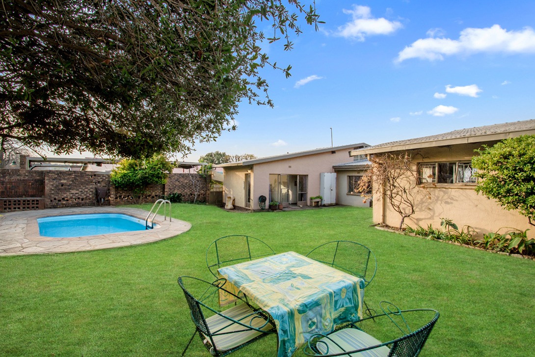 Charming and well-positioned family home set on a quiet, tree-lined street on 848m² stand. Ideal for the extended family with one bedroom and bathroom on the one wing of the house and the other two bedrooms on the opposite wing of the house with another bathroom. Perfect for parents with adult children.
