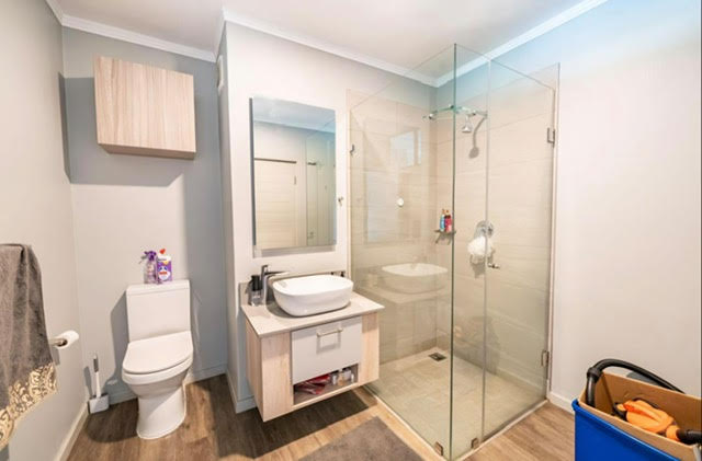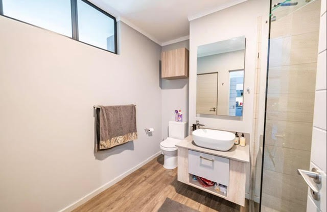 The master suite offers a spacious layout, featuring built in cupboards and laminate flooring leading into a beautifully appointed en suite bathroom. The second bedroom is a flexible and inviting space, perfect for guests or as a home office also en suite but with guest access also.