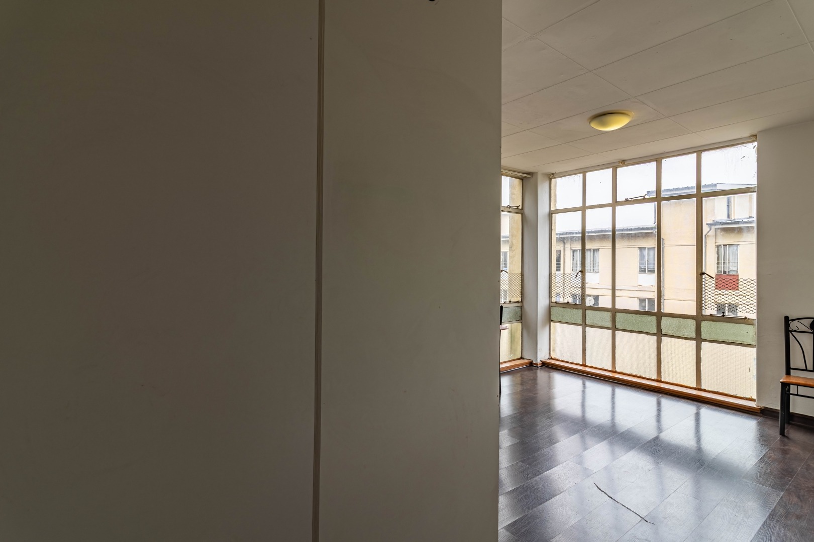 A bright, well-lit lounge featuring a cordoned-off area—perfect for a home office or a compact second sleeping space