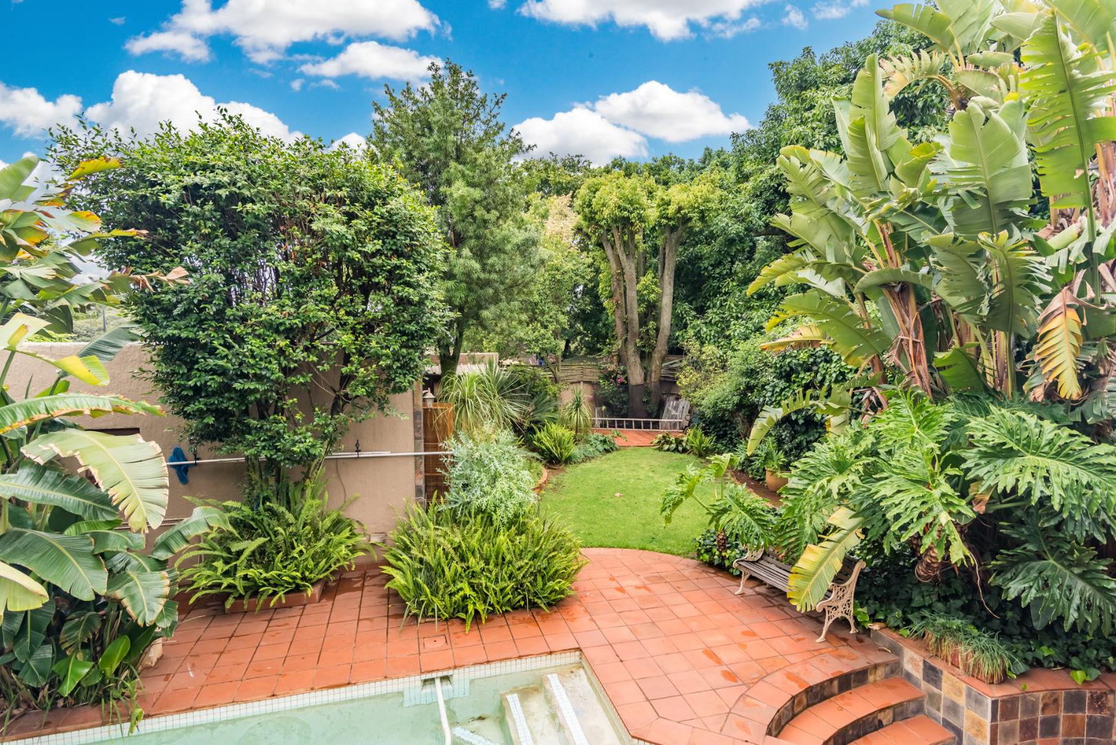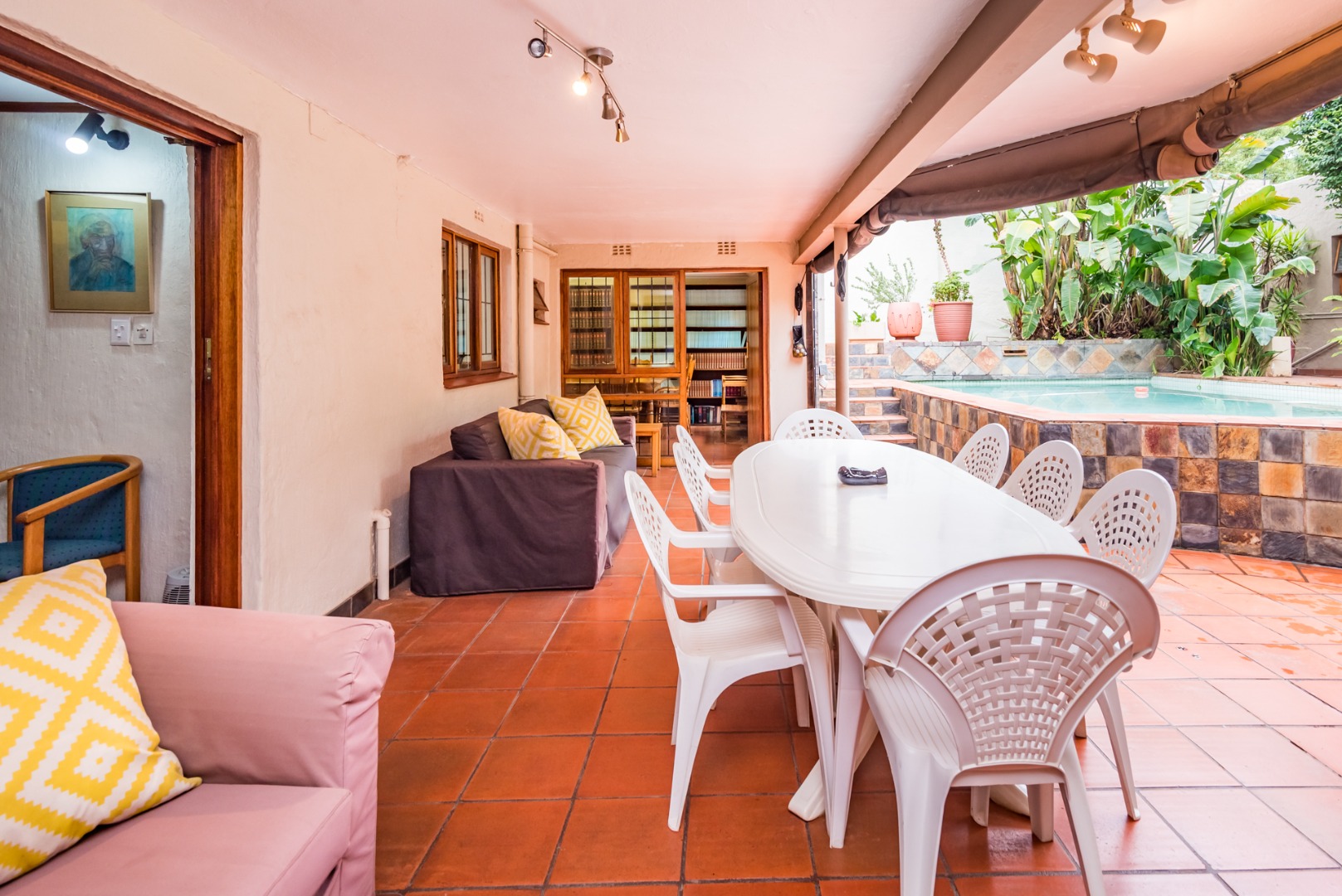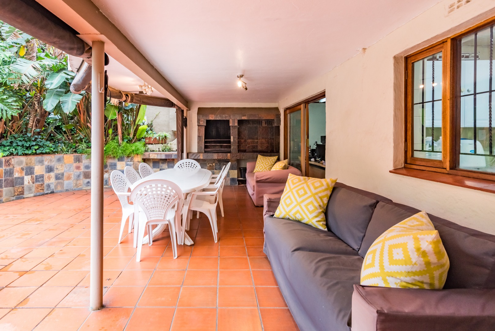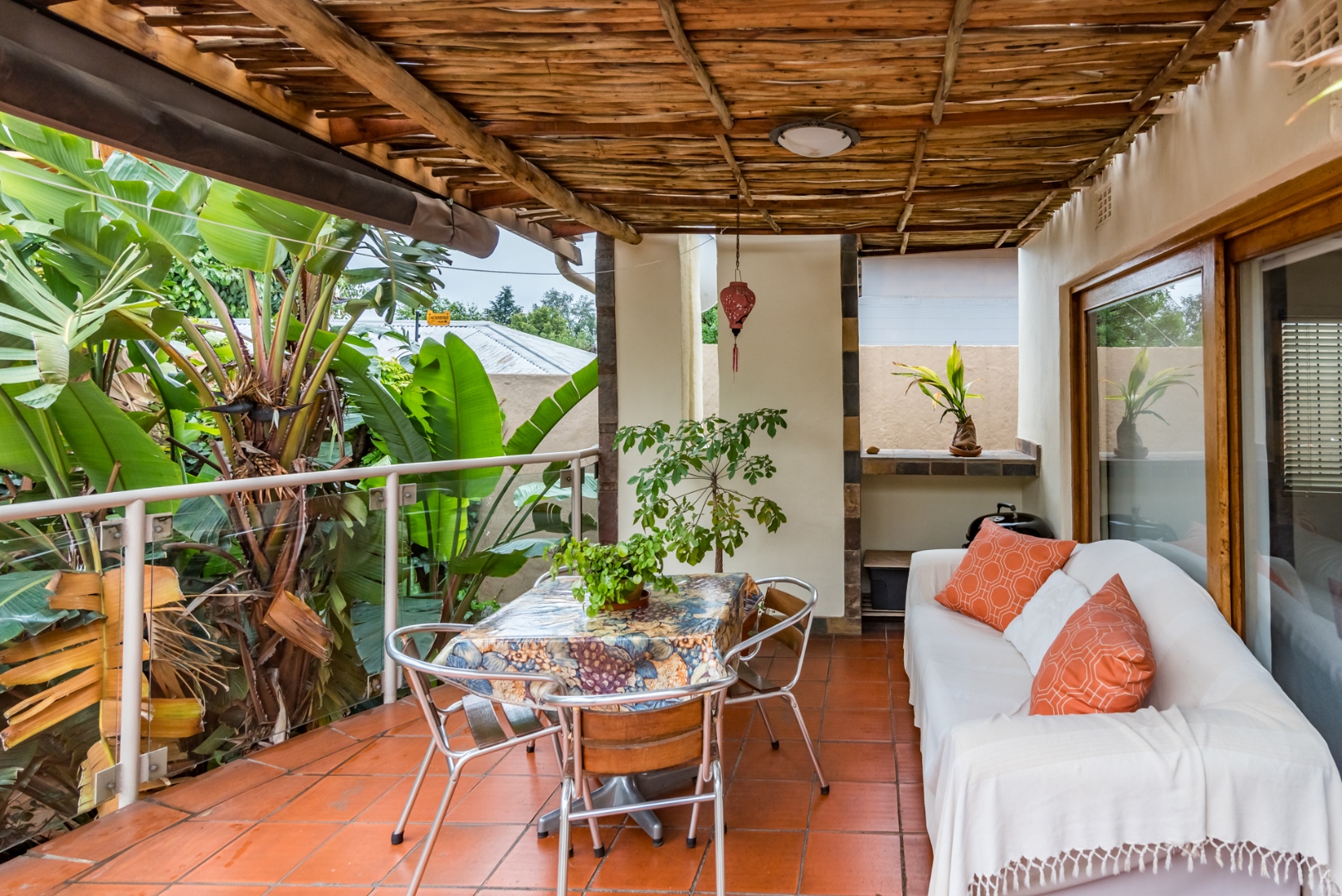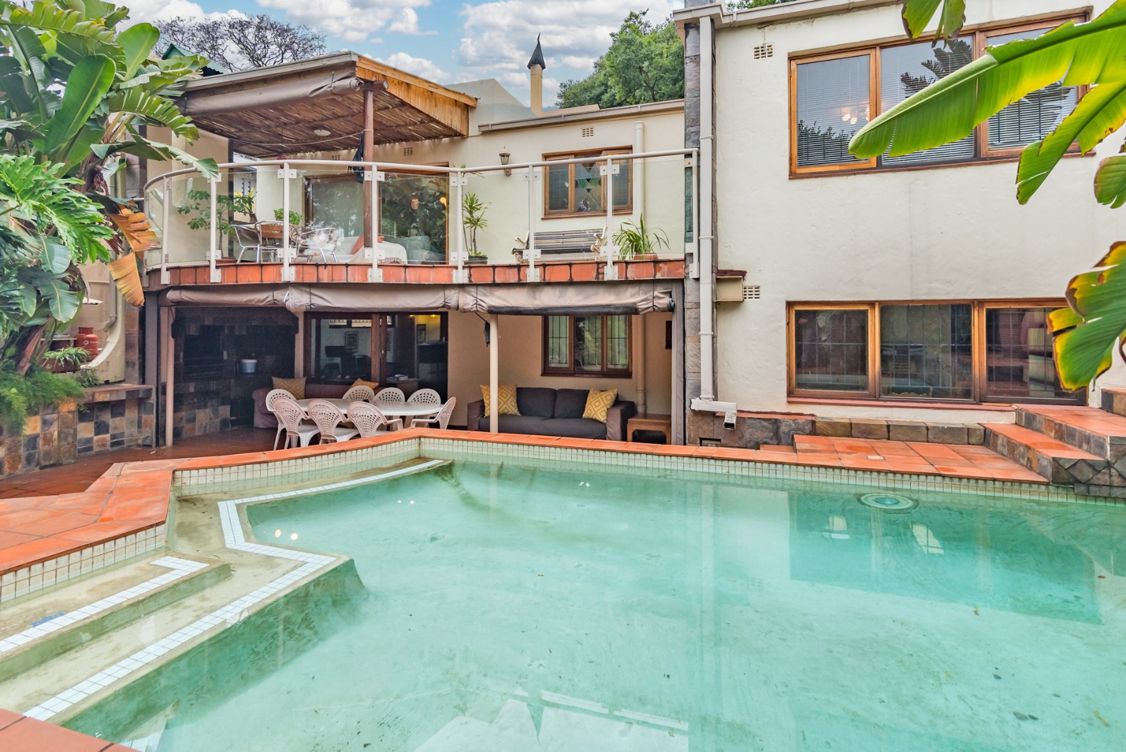 Discover this charming 3-bedroom, 3-bathroom residence nestled in the desirable suburban area of Westdene. The inviting interior features a spacious lounge, a dedicated dining room, and a family TV room, all boasting warm hardwood flooring and characterful exposed ceiling beams. Large windows and sliding doors ensure ample natural light, with direct access to a private patio and a lush outdoor balcony, perfect for relaxation or entertaining.