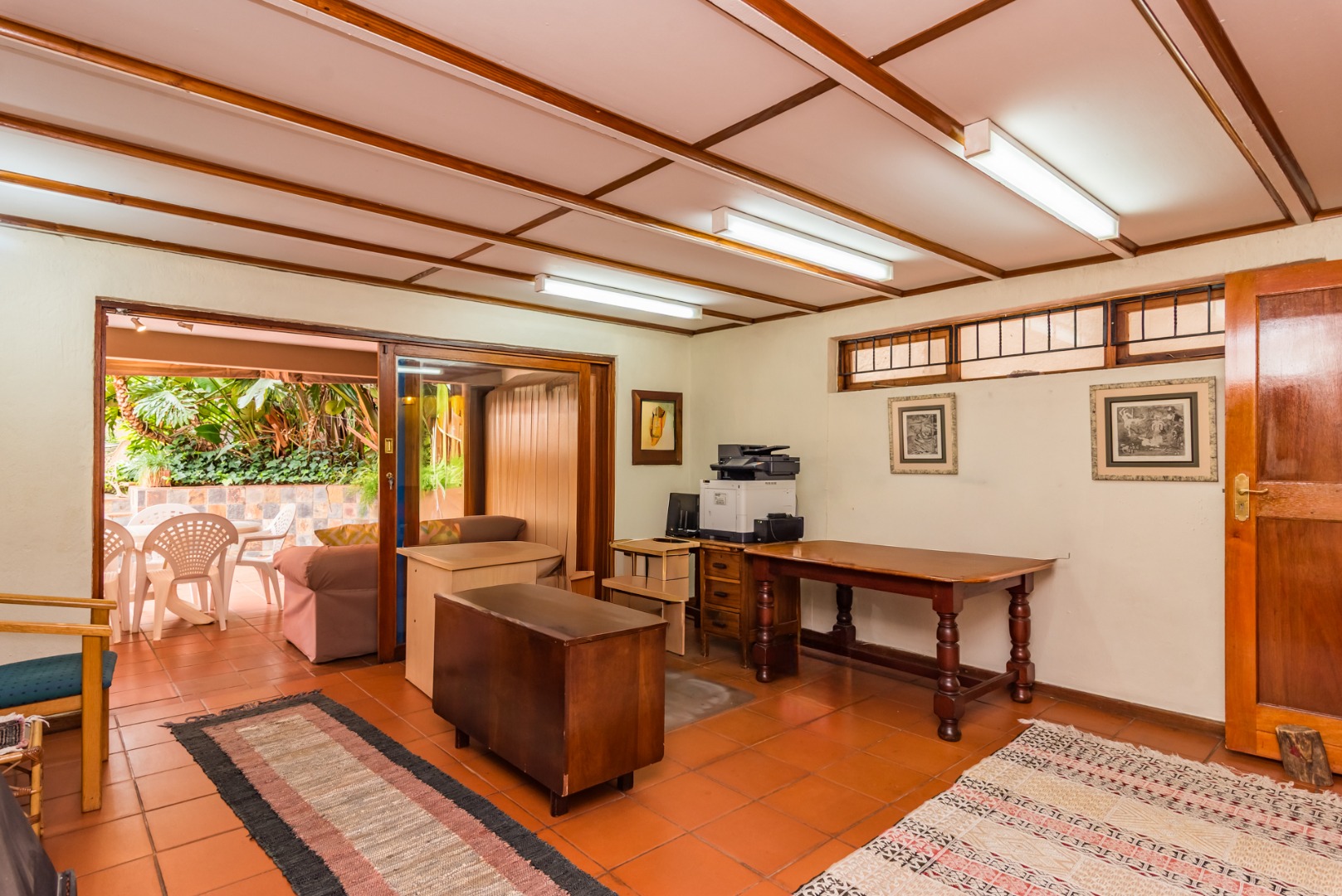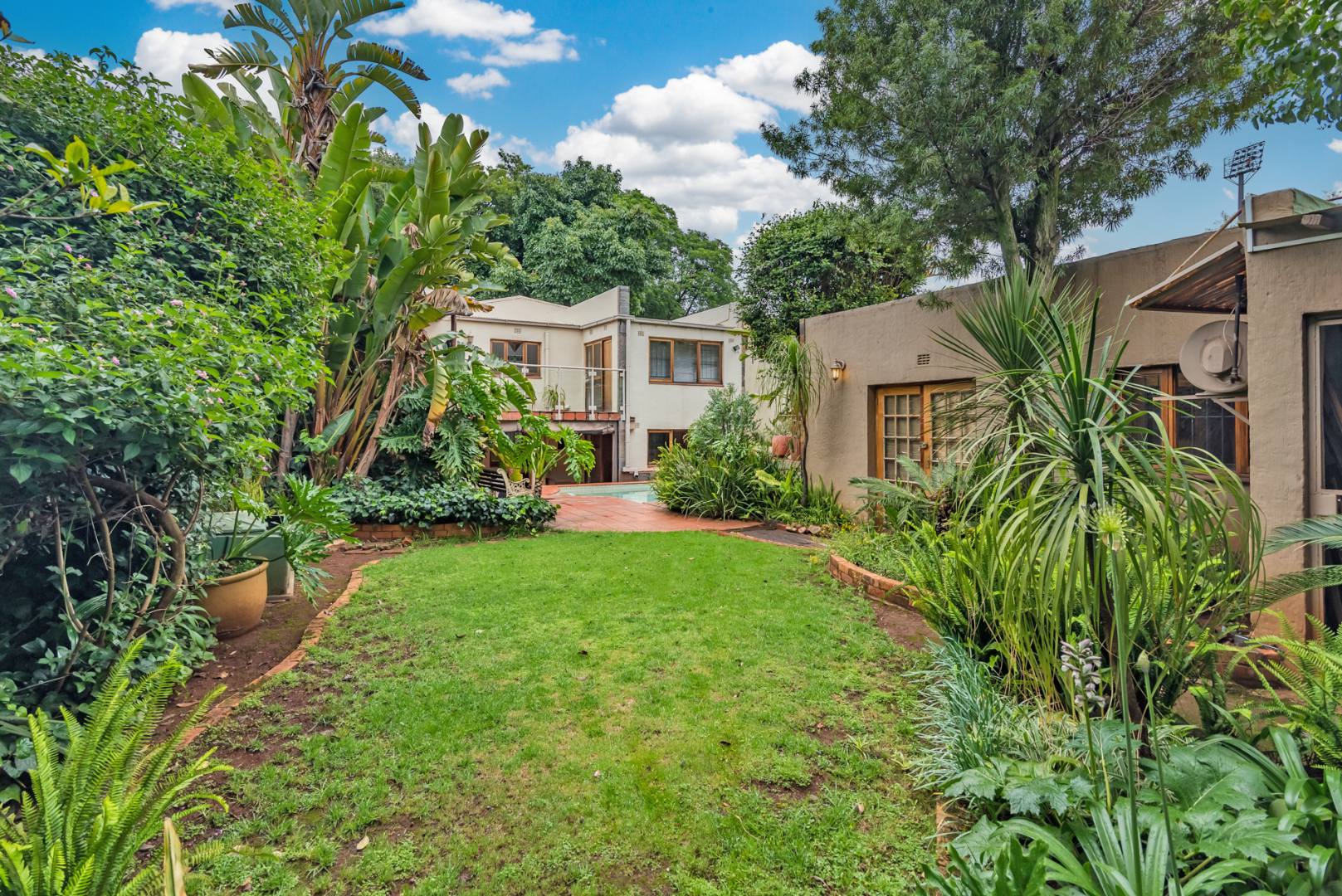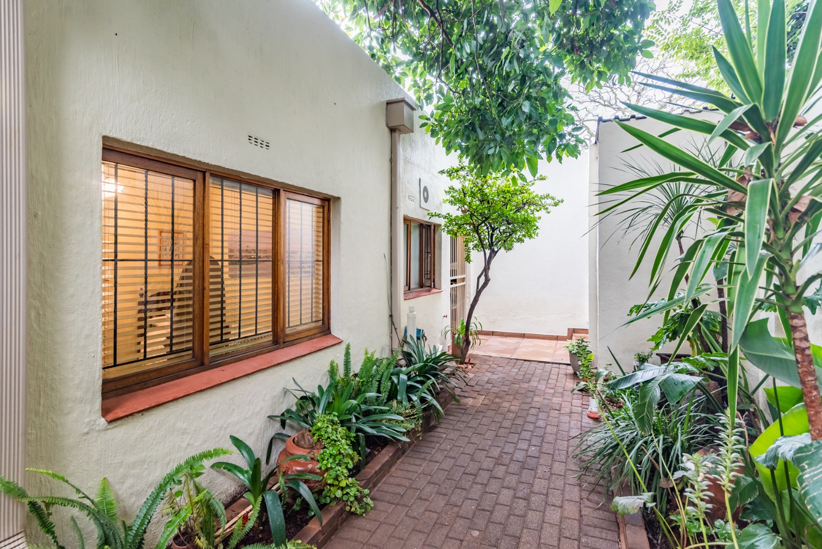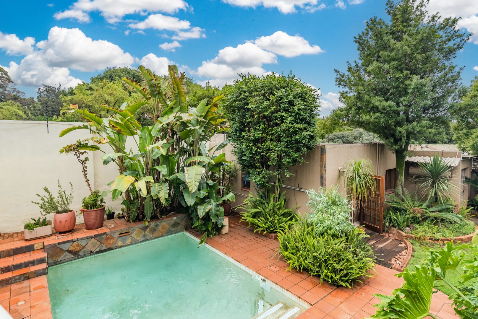 Discover this charming 3-bedroom, 3-bathroom residence nestled in the desirable suburban area of Westdene. The inviting interior features a spacious lounge, a dedicated dining room, and a family TV room, all boasting warm hardwood flooring and characterful exposed ceiling beams. Large windows and sliding doors ensure ample natural light, with direct access to a private patio and a lush outdoor balcony, perfect for relaxation or entertaining.