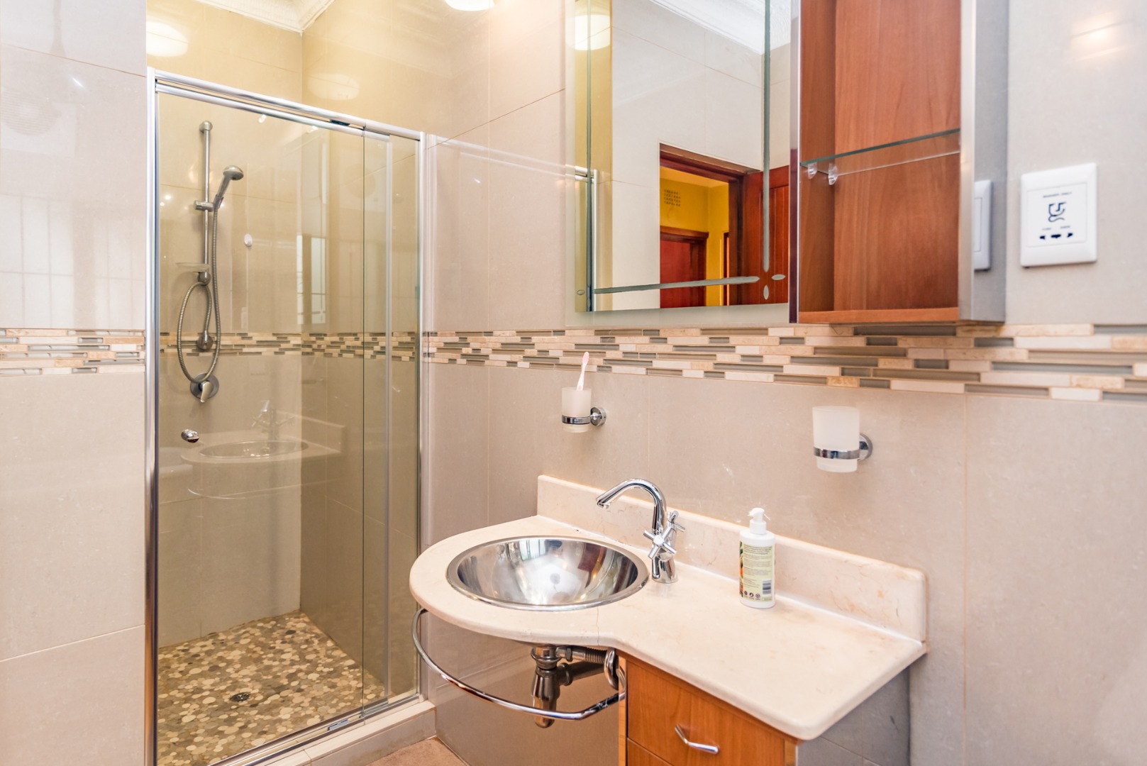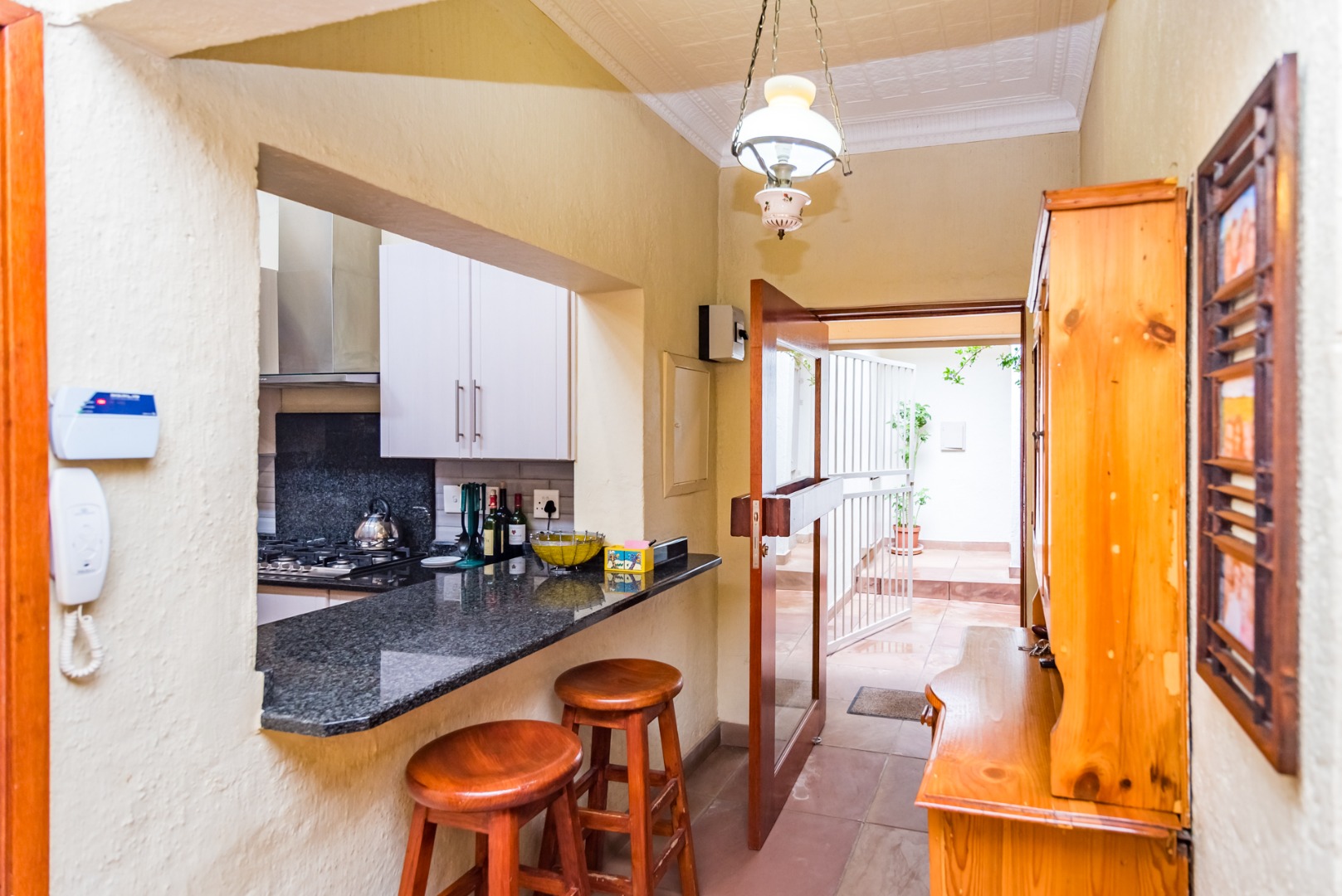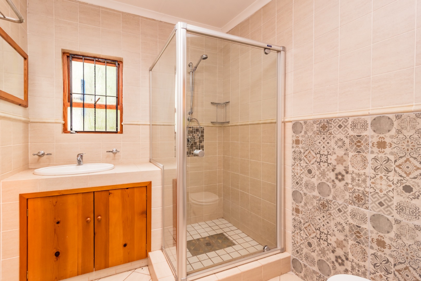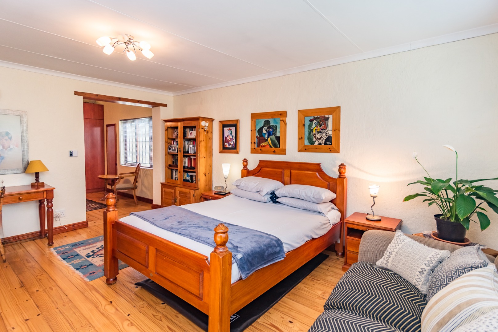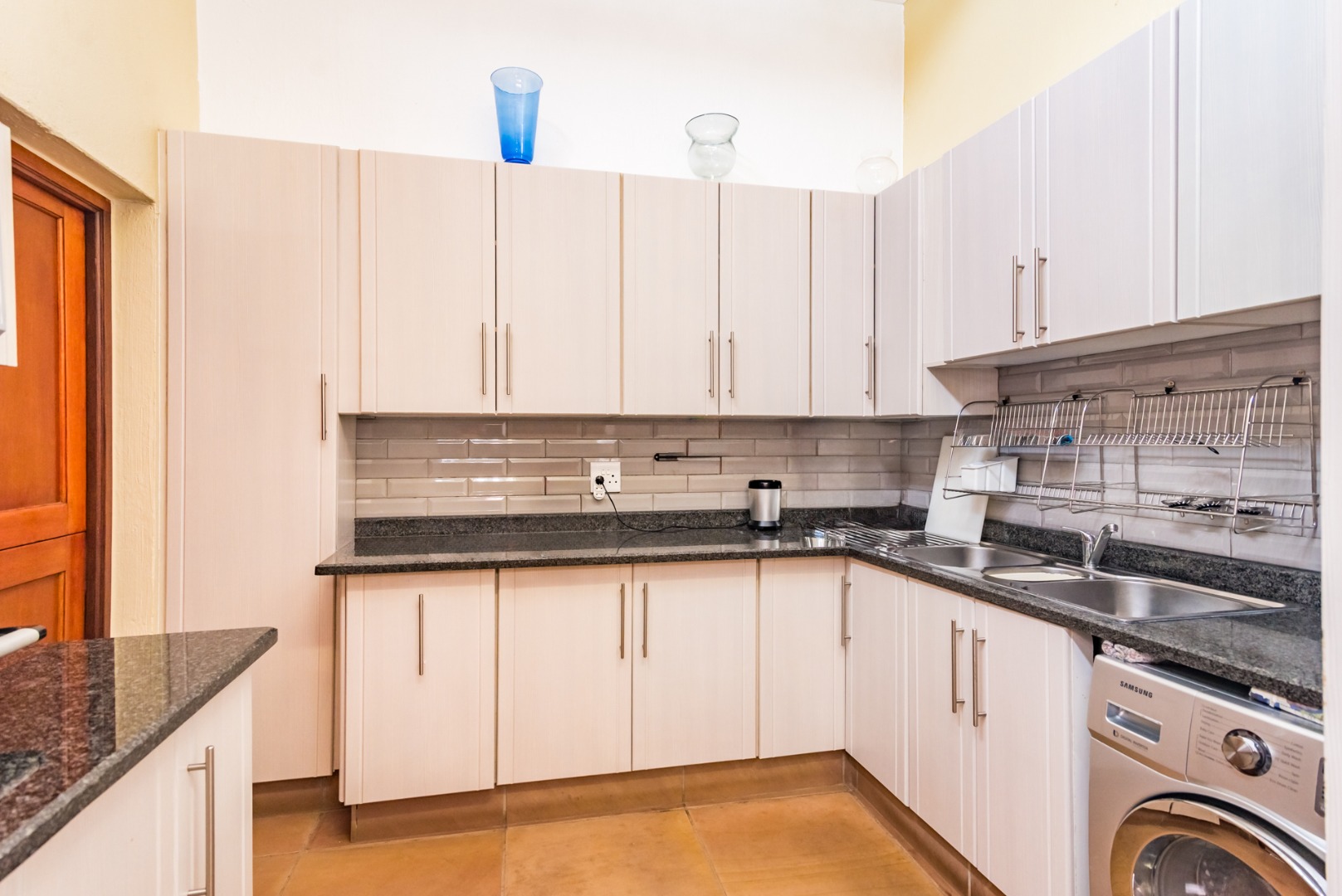 The well-appointed kitchen is equipped with modern light cabinetry, durable granite countertops, a gas hob, and integrated appliances, including a washing machine, complemented by a convenient breakfast bar. The property includes a study, offering a versatile space for work or hobbies. Outside, enjoy a refreshing pool and a well-maintained garden on the 540 sqm erf.
