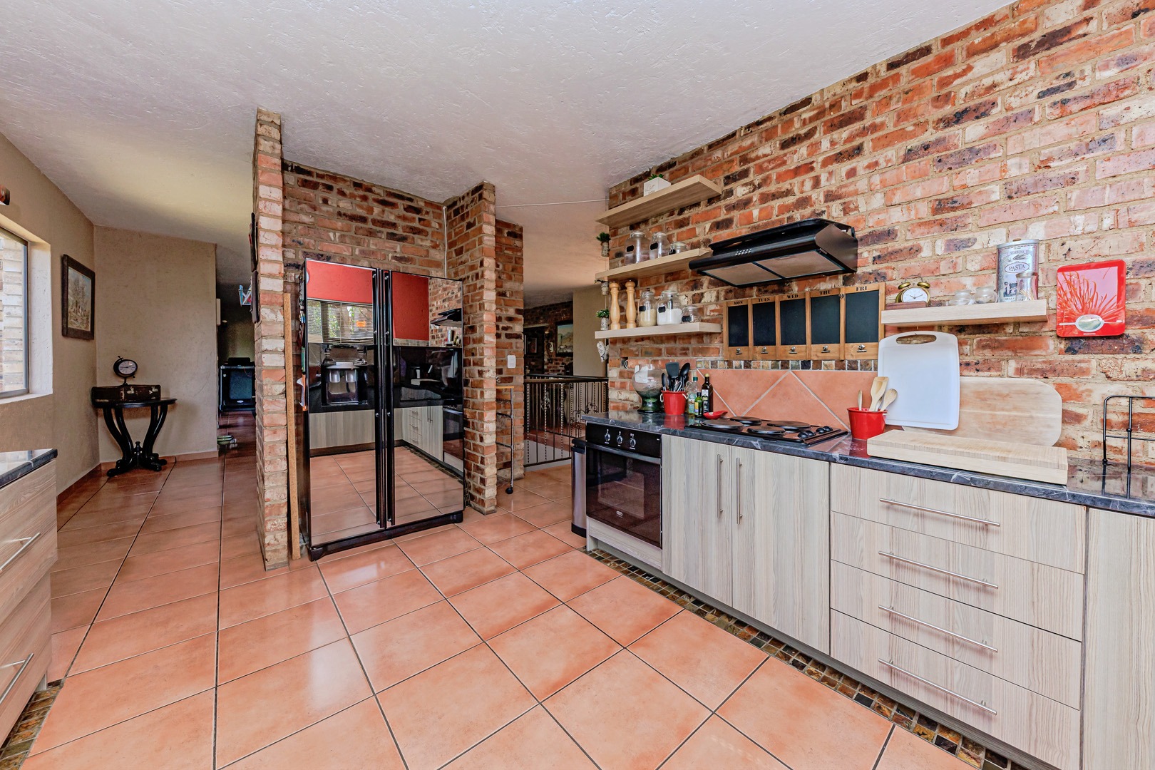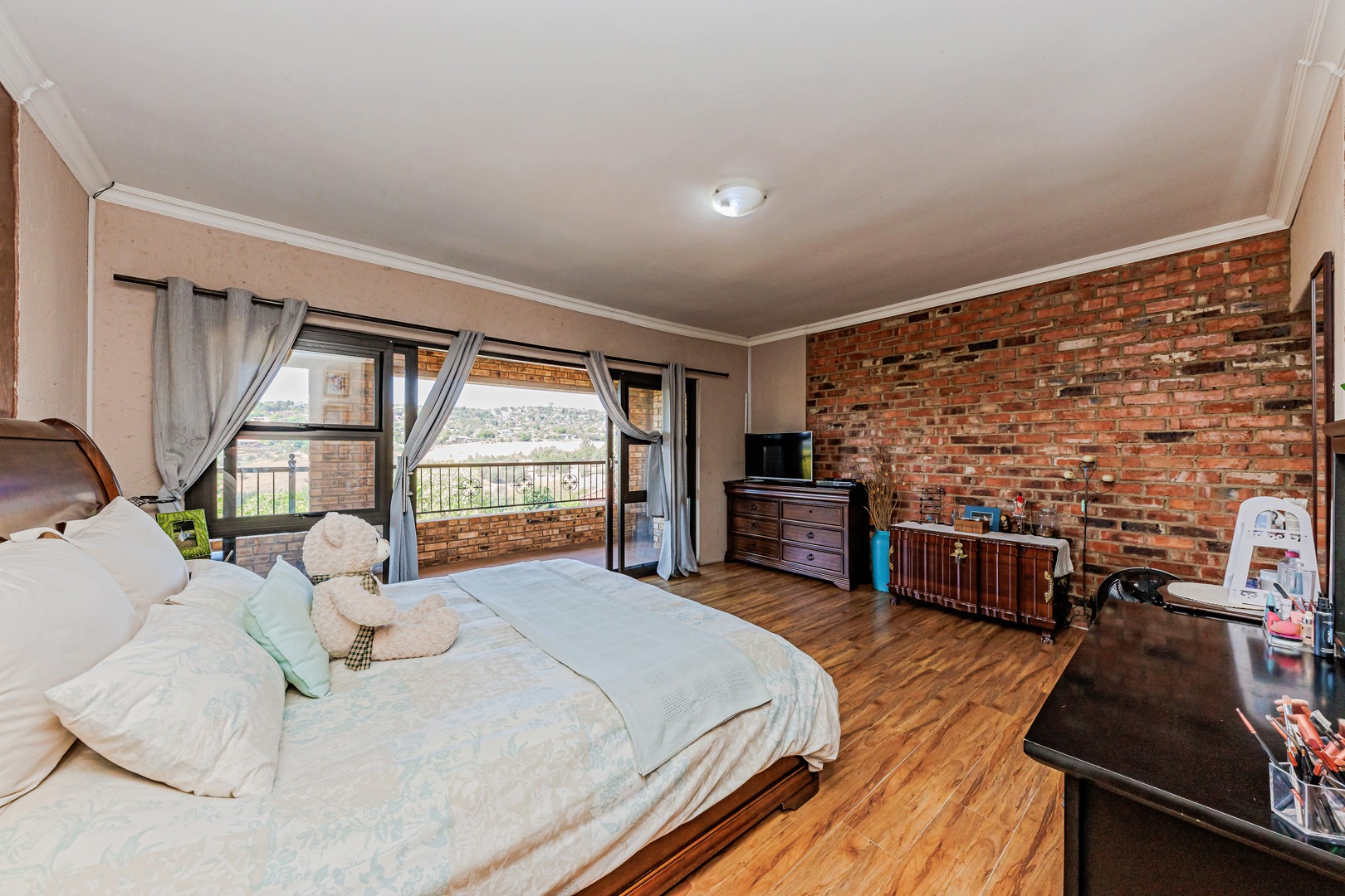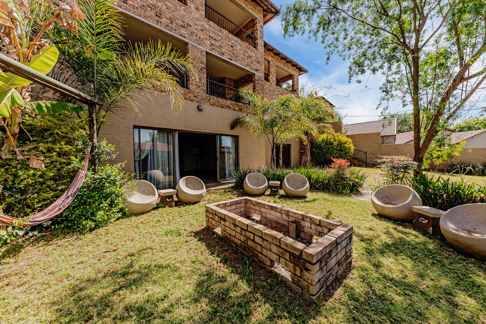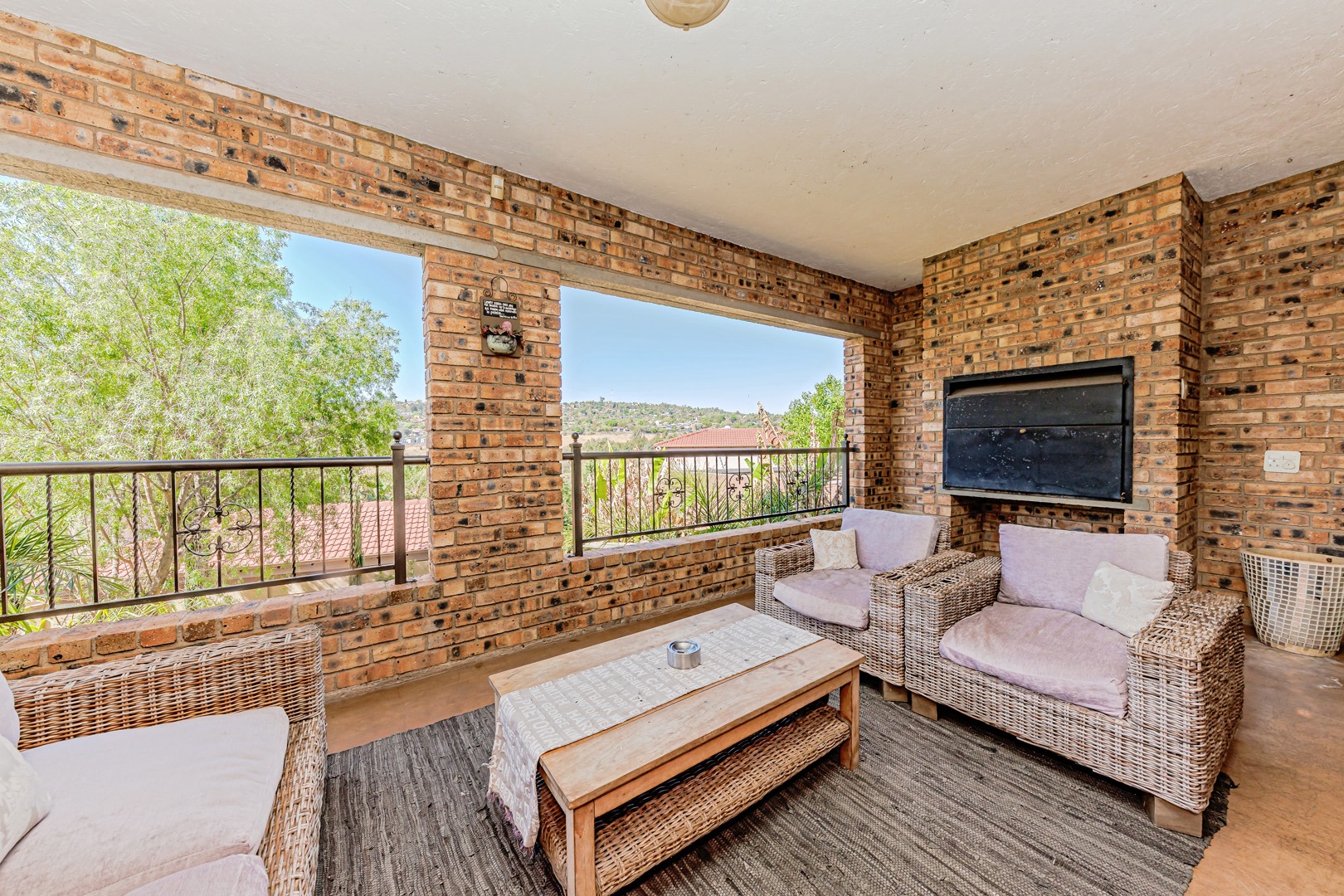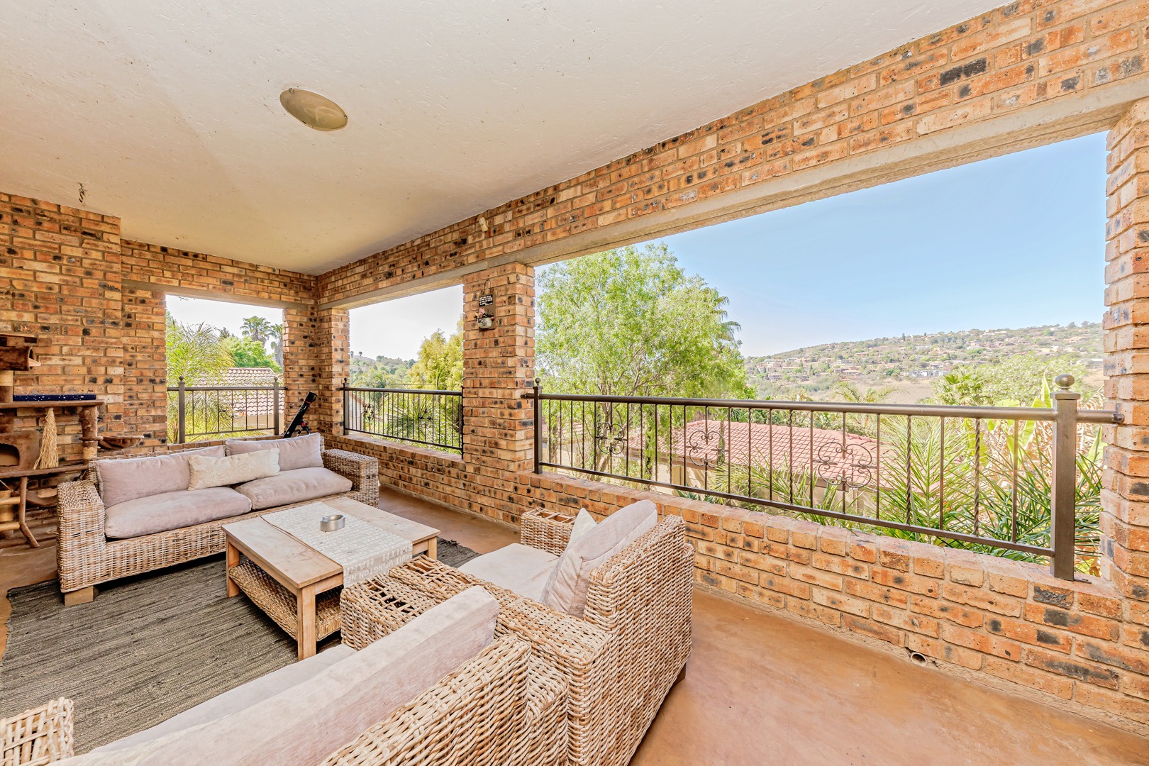 Outdoor living is a real treat here, with multiple balconies and paved areas providing plenty of spots to enjoy the fresh air and scenic views. The large, established garden, offers a wonderful green space for kids and pets (yes, they're allowed!). Plus, there's a built-in braai for those classic South African get-togethers. Exclusive Entertainer’s Home with Boma & Bar Room, perfect for hosting with comfort and class. Parking is a breeze with two garages and an additional four open parking spaces.