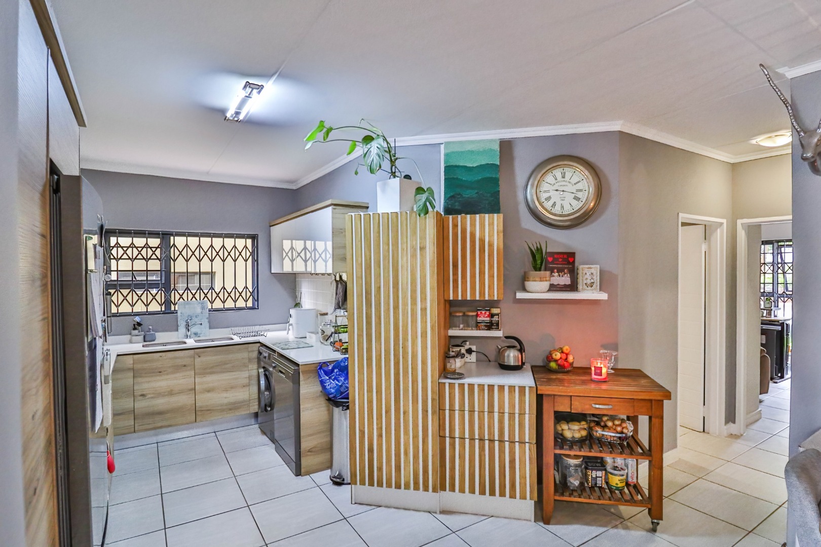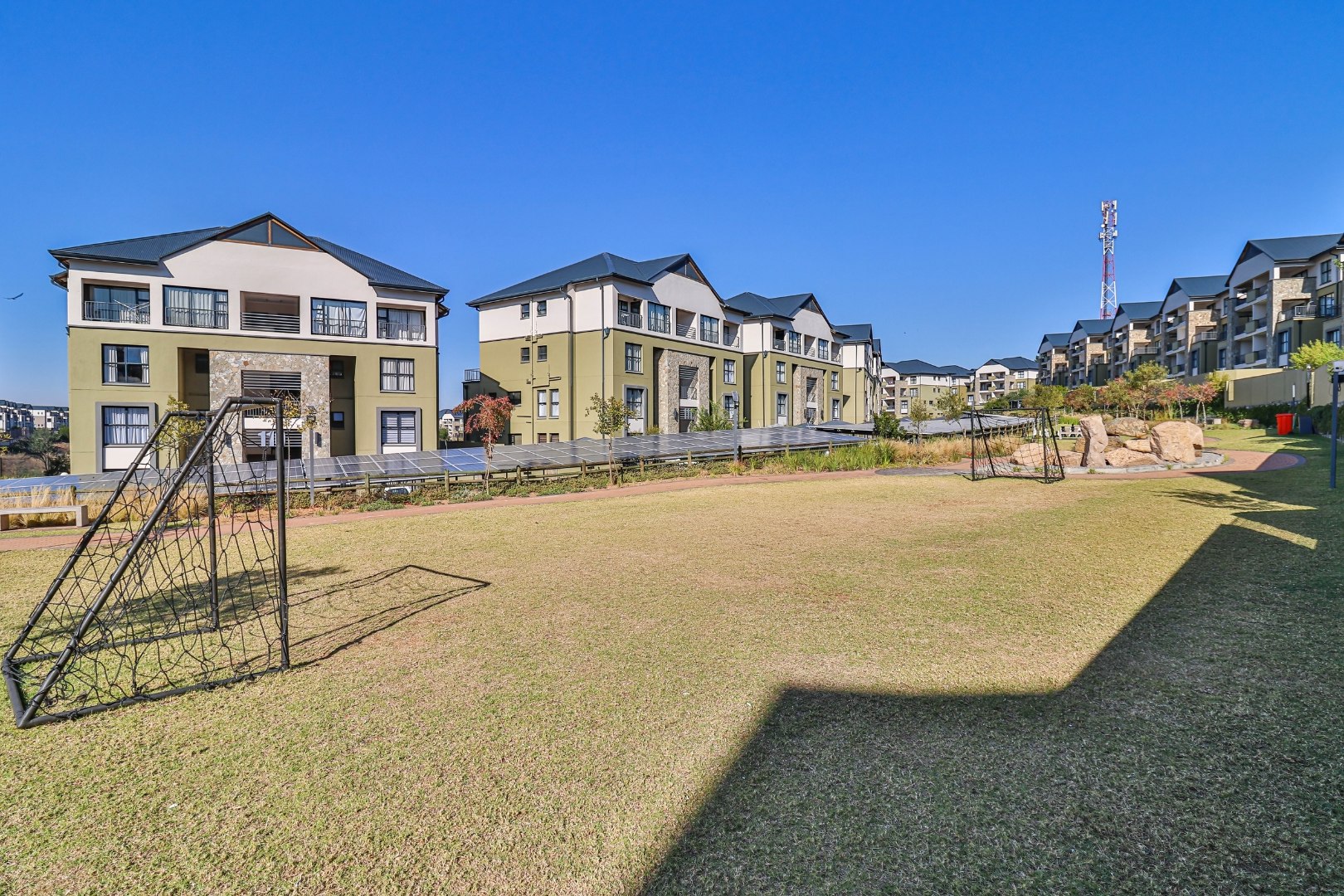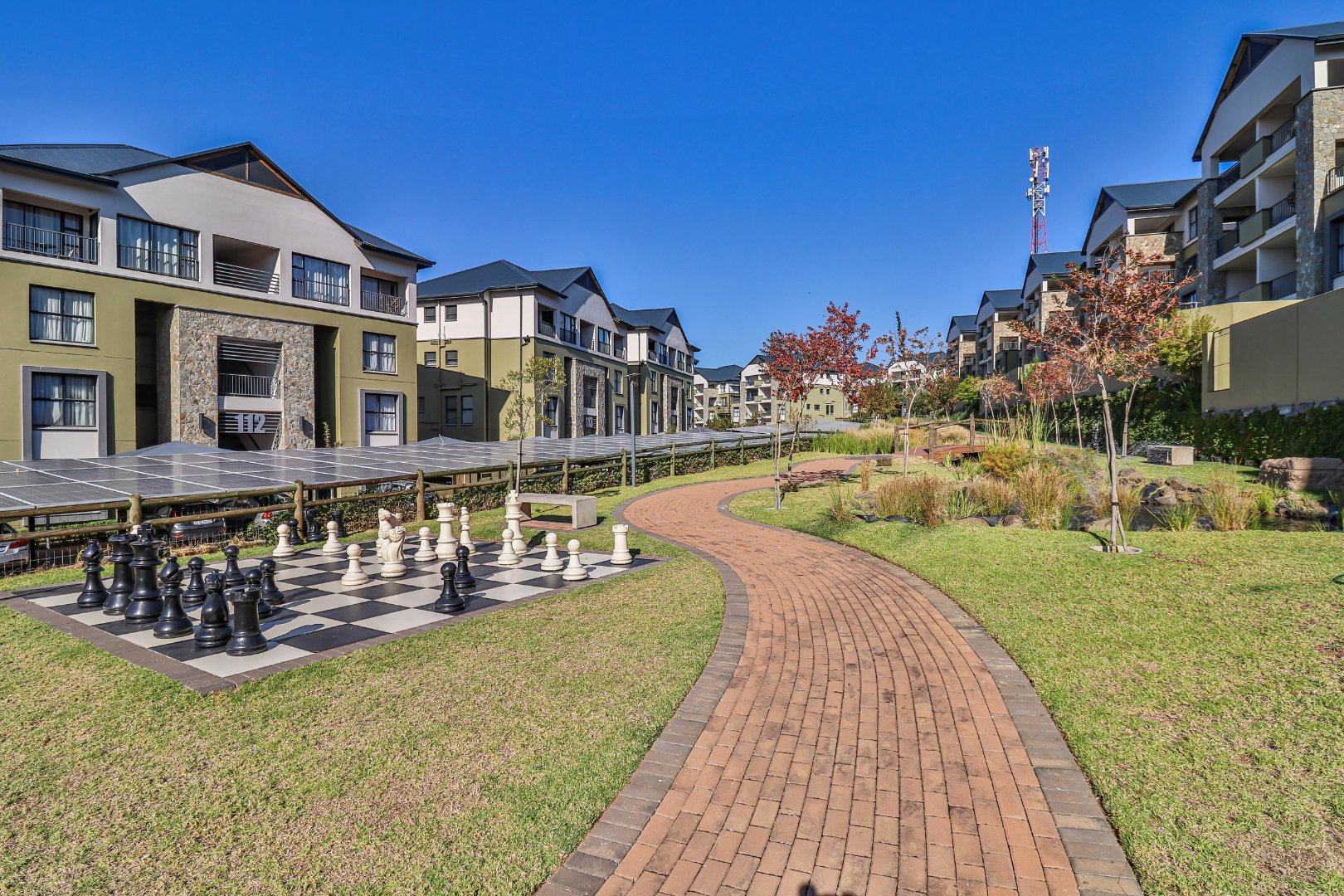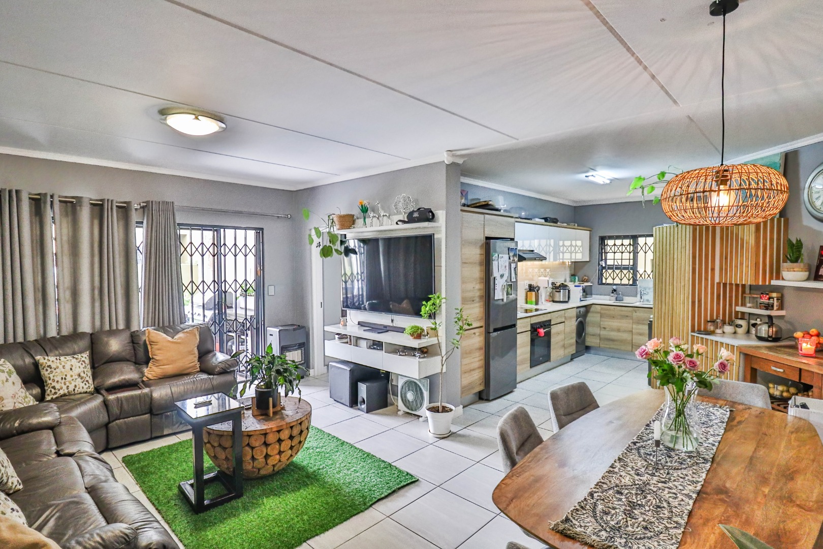 This modern 110 sqm apartment offers sophisticated estate living in Waterfall, Midrand. Its open-plan design seamlessly connects the living, dining, and kitchen areas, creating an inviting atmosphere. The contemporary kitchen boasts stylish two-tone cabinetry, integrated appliances, and a convenient washing machine, complemented by natural light. A dedicated study provides a versatile space. The residence features three comfortable bedrooms and two well-appointed bathrooms, including a private en-suite for the main bedroom. Step outside to a private ground-floor garden and a spacious covered patio, ideal for outdoor entertaining. This area, equipped with a gas grill and string lights, offers direct access to a small, well-maintained lawn. Residents also benefit from exceptional estate amenities: a communal pool, fully equipped gym, squash court, and clubhouse. Security is paramount, with features such as security gates, burglar bars, electric fencing, a security post, and an access gate within a totally walled property. The home includes a battery inverter for uninterrupted power and fibre connectivity. Water tanks contribute to sustainability, and the property is wheelchair friendly. Waterfall, Midrand, offers a desirable suburban estate environment, combining modern conveniences with a secure and vibrant community lifestyle. **Key Features:** * 3 Bedrooms, 2 Bathrooms (1 En-suite) * 110 sqm Floor Size * Open-Plan Living, Dining & Kitchen * Modern Kitchen with Integrated Appliances * Private Covered Patio & Garden * Estate Amenities: Pool, Gym, Squash Court, Clubhouse * Battery Inverter & Fibre Ready * Enhanced Security Features * Wheelchair Friendly * Dedicated Study