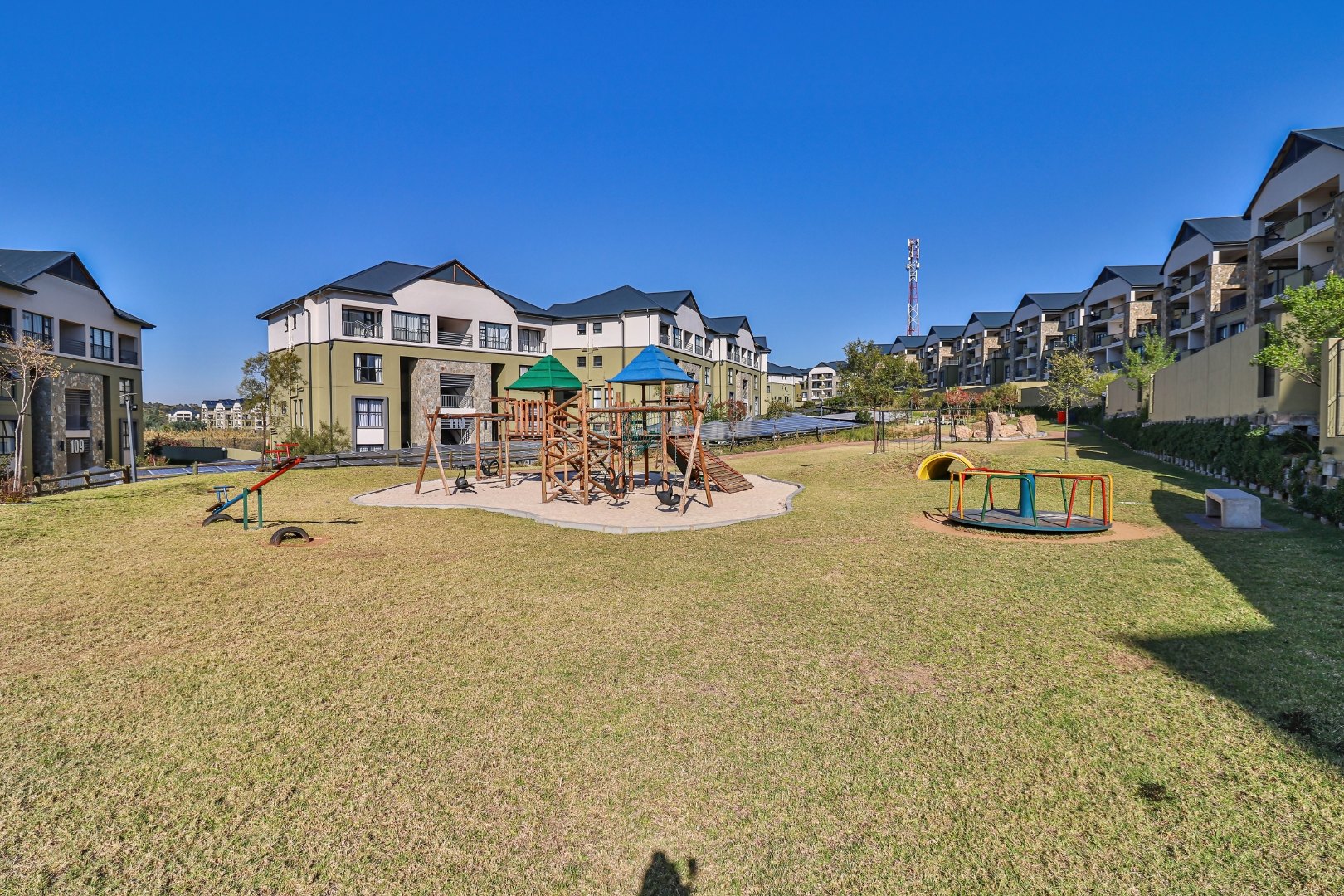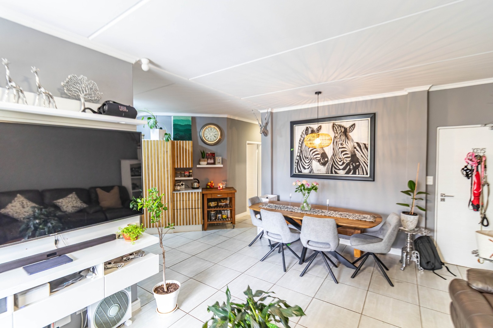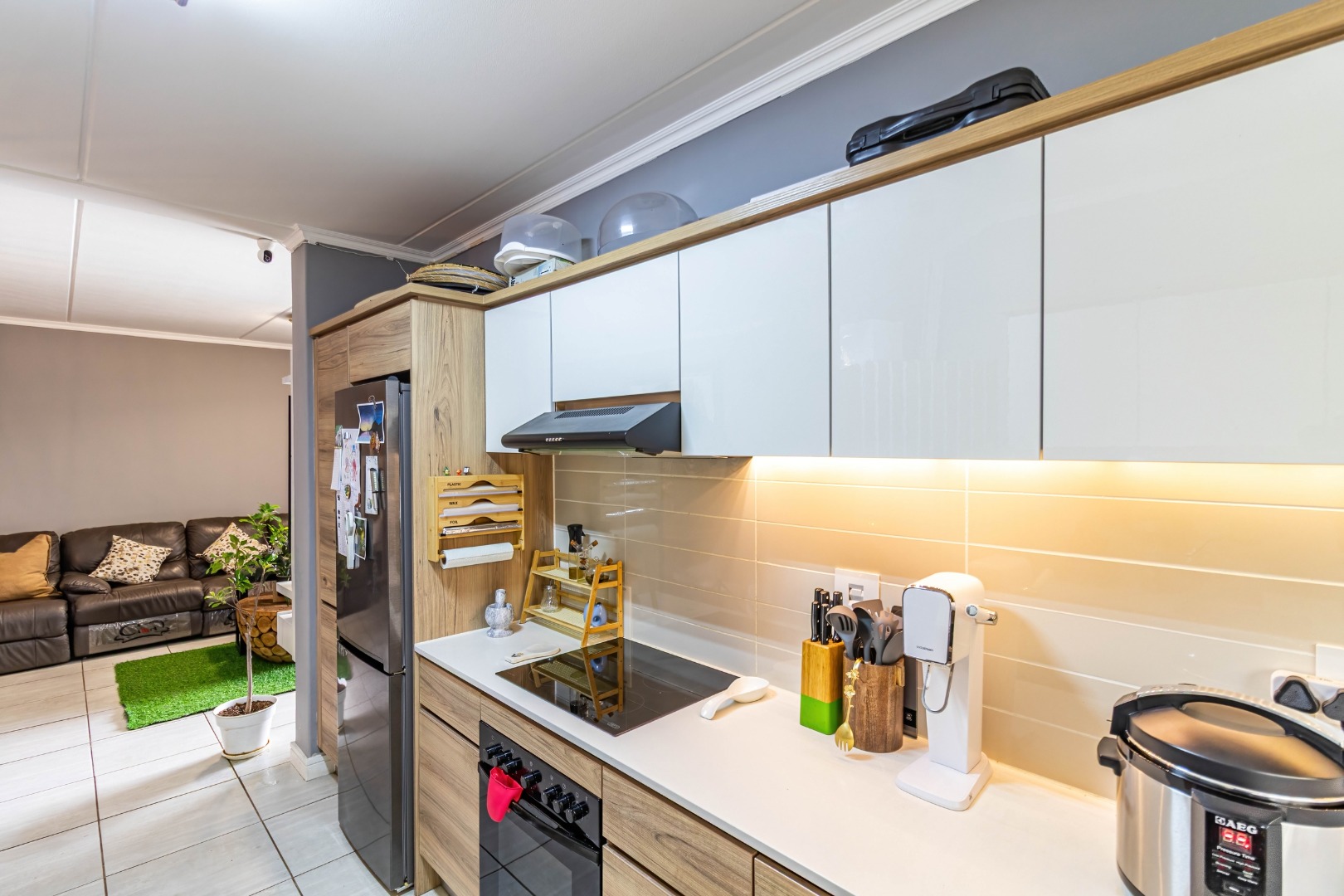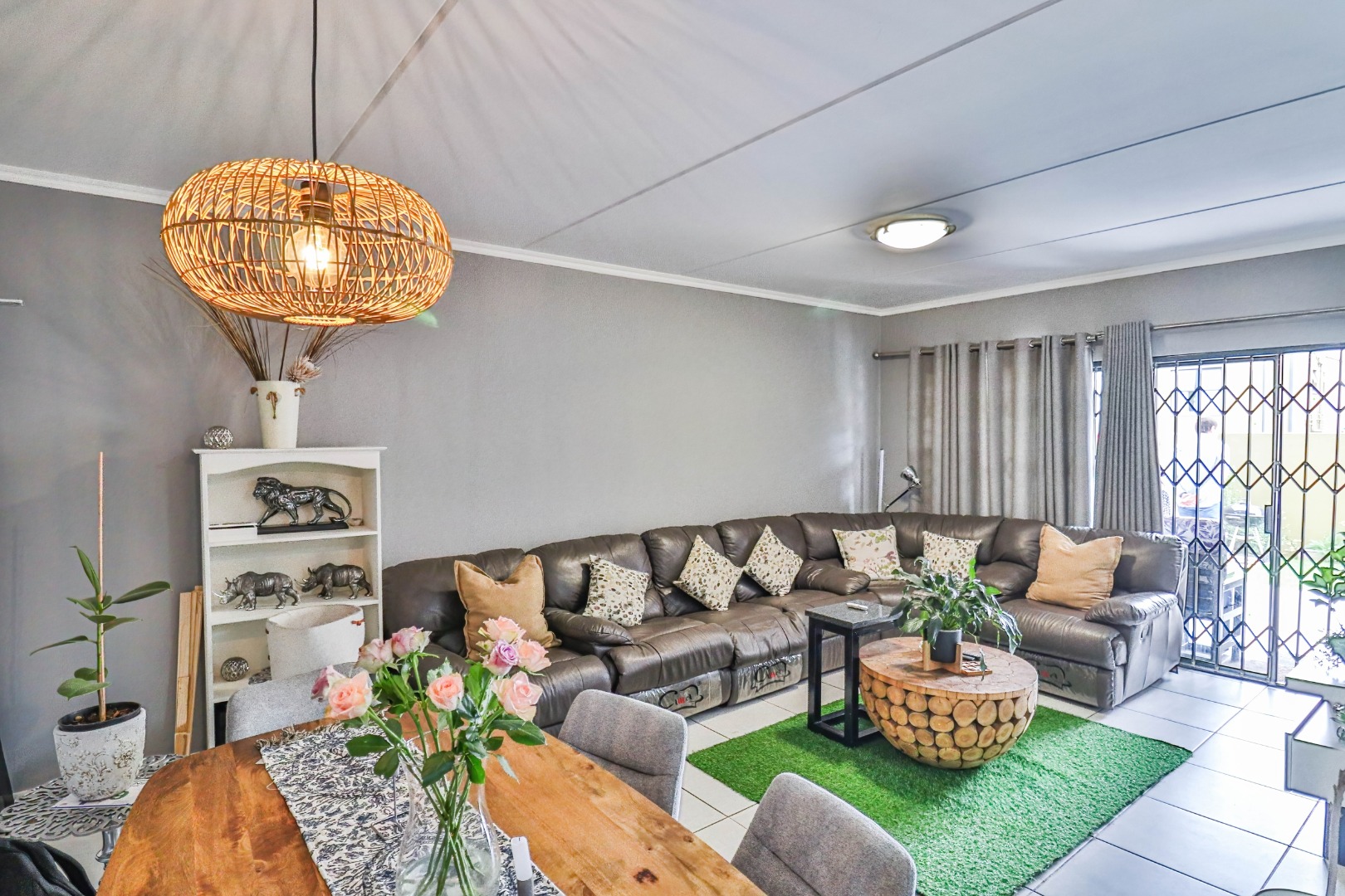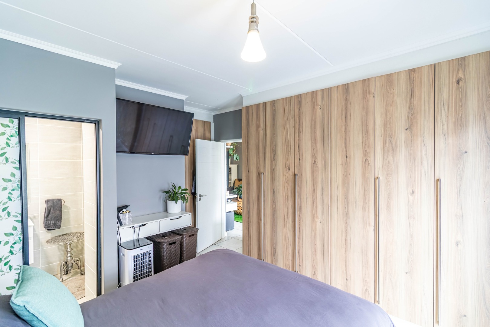 This modern 110 sqm apartment offers sophisticated estate living in Waterfall, Midrand. Its open-plan design seamlessly connects the living, dining, and kitchen areas, creating an inviting atmosphere. The contemporary kitchen boasts stylish two-tone cabinetry, integrated appliances, and a convenient washing machine, complemented by natural light. A dedicated study provides a versatile space. The residence features three comfortable bedrooms and two well-appointed bathrooms, including a private en-suite for the main bedroom. Step outside to a private ground-floor garden and a spacious covered patio, ideal for outdoor entertaining. This area, equipped with a gas grill and string lights, offers direct access to a small, well-maintained lawn. Residents also benefit from exceptional estate amenities: a communal pool, fully equipped gym, squash court, and clubhouse. Security is paramount, with features such as security gates, burglar bars, electric fencing, a security post, and an access gate within a totally walled property. The home includes a battery inverter for uninterrupted power and fibre connectivity. Water tanks contribute to sustainability, and the property is wheelchair friendly. Waterfall, Midrand, offers a desirable suburban estate environment, combining modern conveniences with a secure and vibrant community lifestyle. **Key Features:** * 3 Bedrooms, 2 Bathrooms (1 En-suite) * 110 sqm Floor Size * Open-Plan Living, Dining & Kitchen * Modern Kitchen with Integrated Appliances * Private Covered Patio & Garden * Estate Amenities: Pool, Gym, Squash Court, Clubhouse * Battery Inverter & Fibre Ready * Enhanced Security Features * Wheelchair Friendly * Dedicated Study