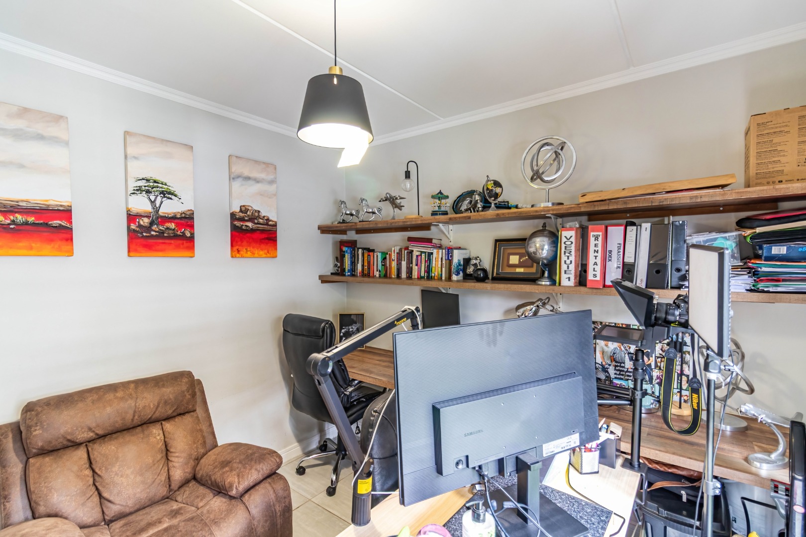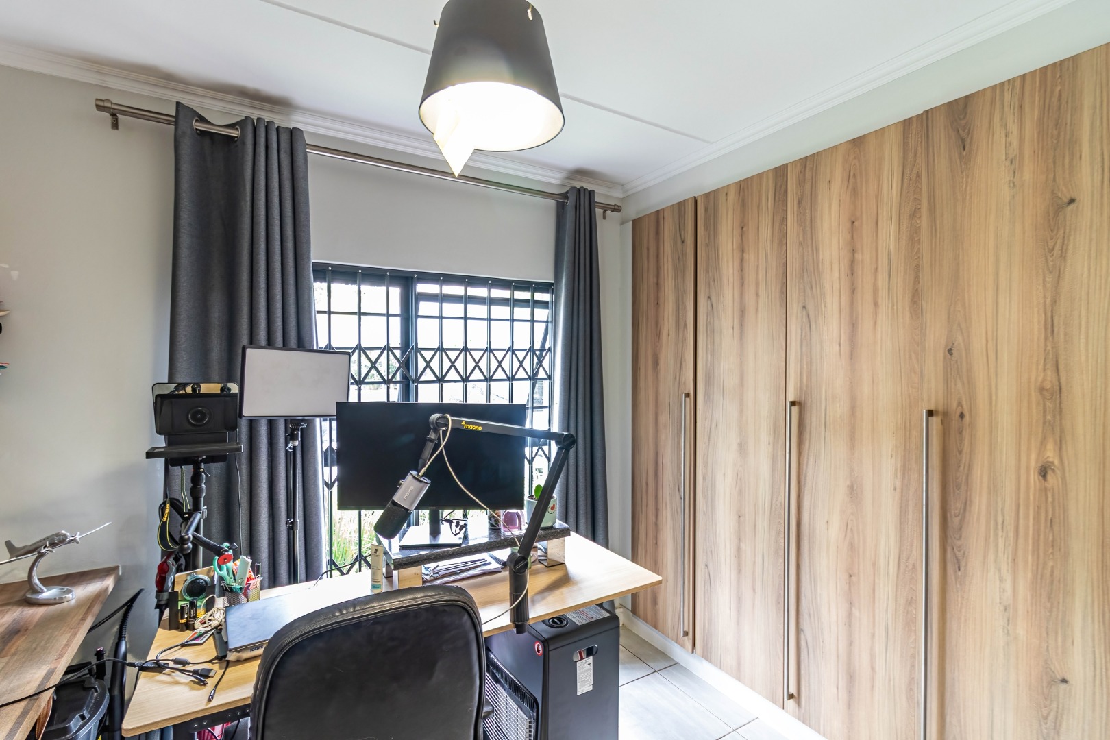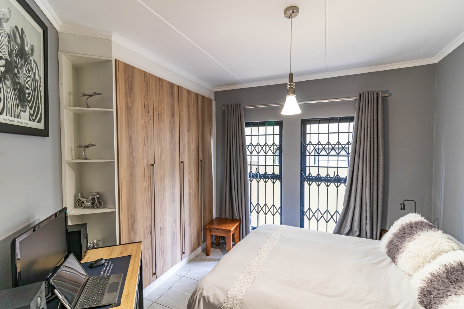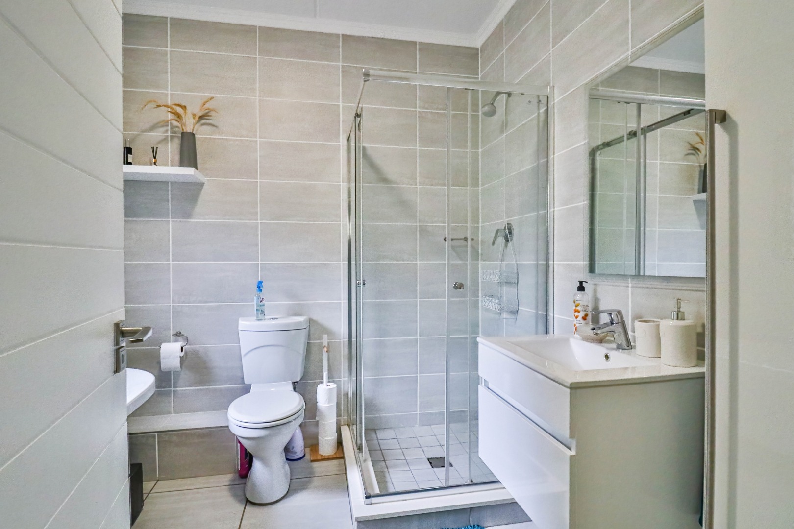 This modern 110 sqm apartment offers sophisticated estate living in Waterfall, Midrand. Its open-plan design seamlessly connects the living, dining, and kitchen areas, creating an inviting atmosphere. The contemporary kitchen boasts stylish two-tone cabinetry, integrated appliances, and a convenient washing machine, complemented by natural light. A dedicated study provides a versatile space. The residence features three comfortable bedrooms and two well-appointed bathrooms, including a private en-suite for the main bedroom. Step outside to a private ground-floor garden and a spacious covered patio, ideal for outdoor entertaining. This area, equipped with a gas grill and string lights, offers direct access to a small, well-maintained lawn. Residents also benefit from exceptional estate amenities: a communal pool, fully equipped gym, squash court, and clubhouse. Security is paramount, with features such as security gates, burglar bars, electric fencing, a security post, and an access gate within a totally walled property. The home includes a battery inverter for uninterrupted power and fibre connectivity. Water tanks contribute to sustainability, and the property is wheelchair friendly. Waterfall, Midrand, offers a desirable suburban estate environment, combining modern conveniences with a secure and vibrant community lifestyle. **Key Features:** * 3 Bedrooms, 2 Bathrooms (1 En-suite) * 110 sqm Floor Size * Open-Plan Living, Dining & Kitchen * Modern Kitchen with Integrated Appliances * Private Covered Patio & Garden * Estate Amenities: Pool, Gym, Squash Court, Clubhouse * Battery Inverter & Fibre Ready * Enhanced Security Features * Wheelchair Friendly * Dedicated Study