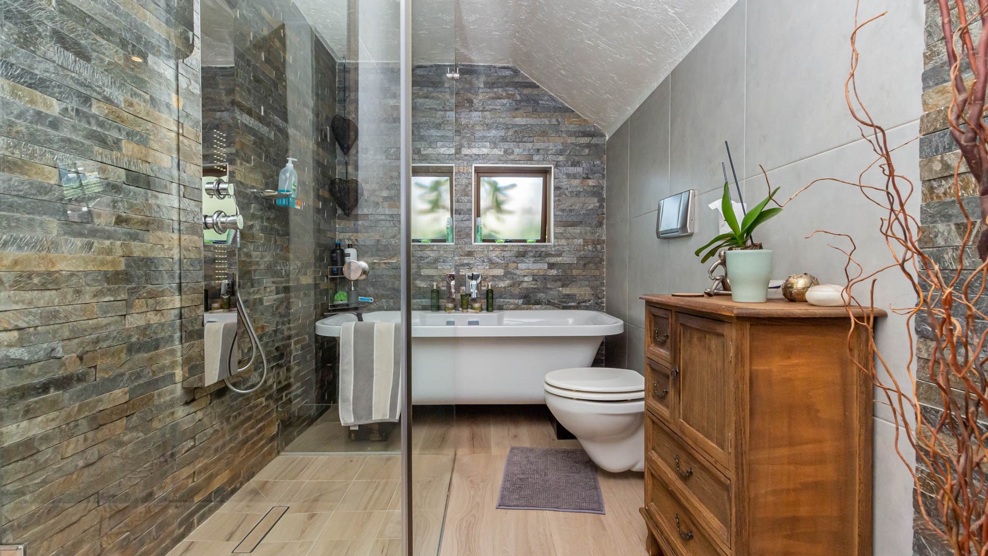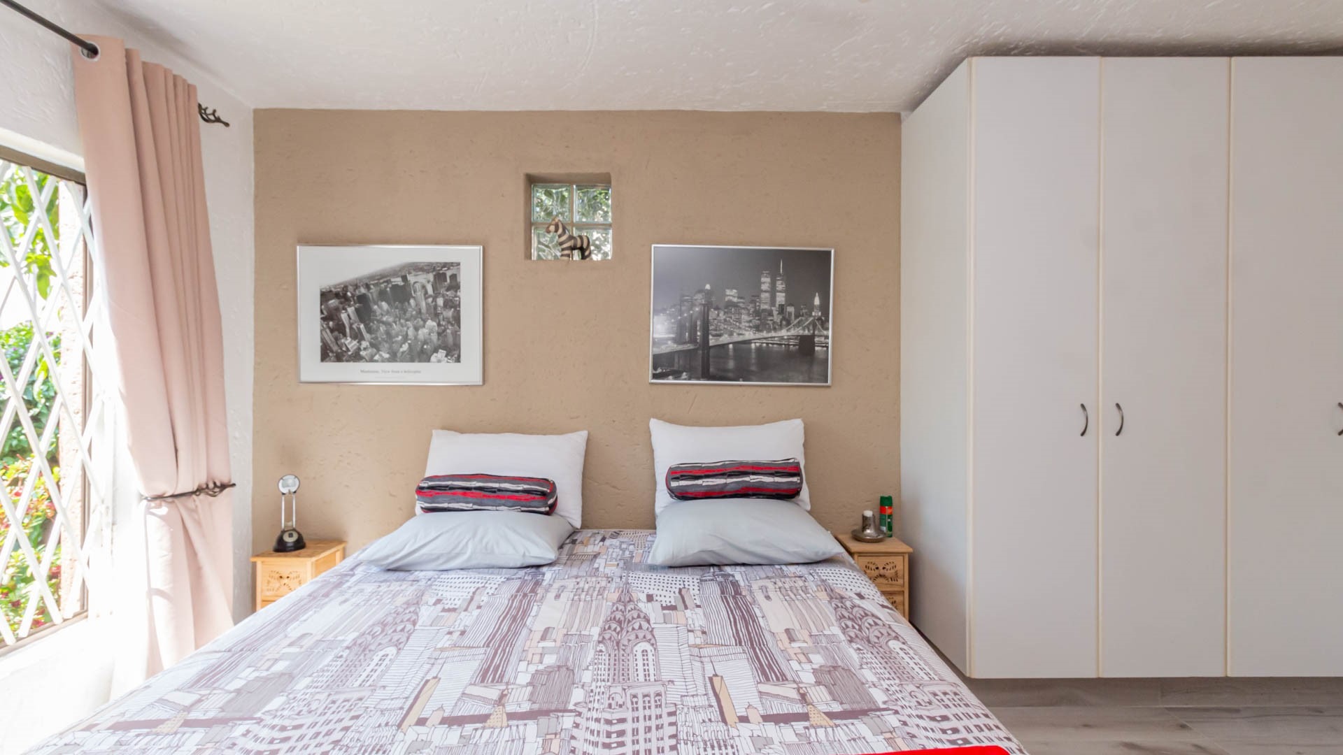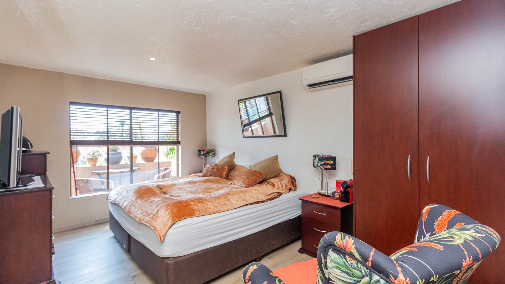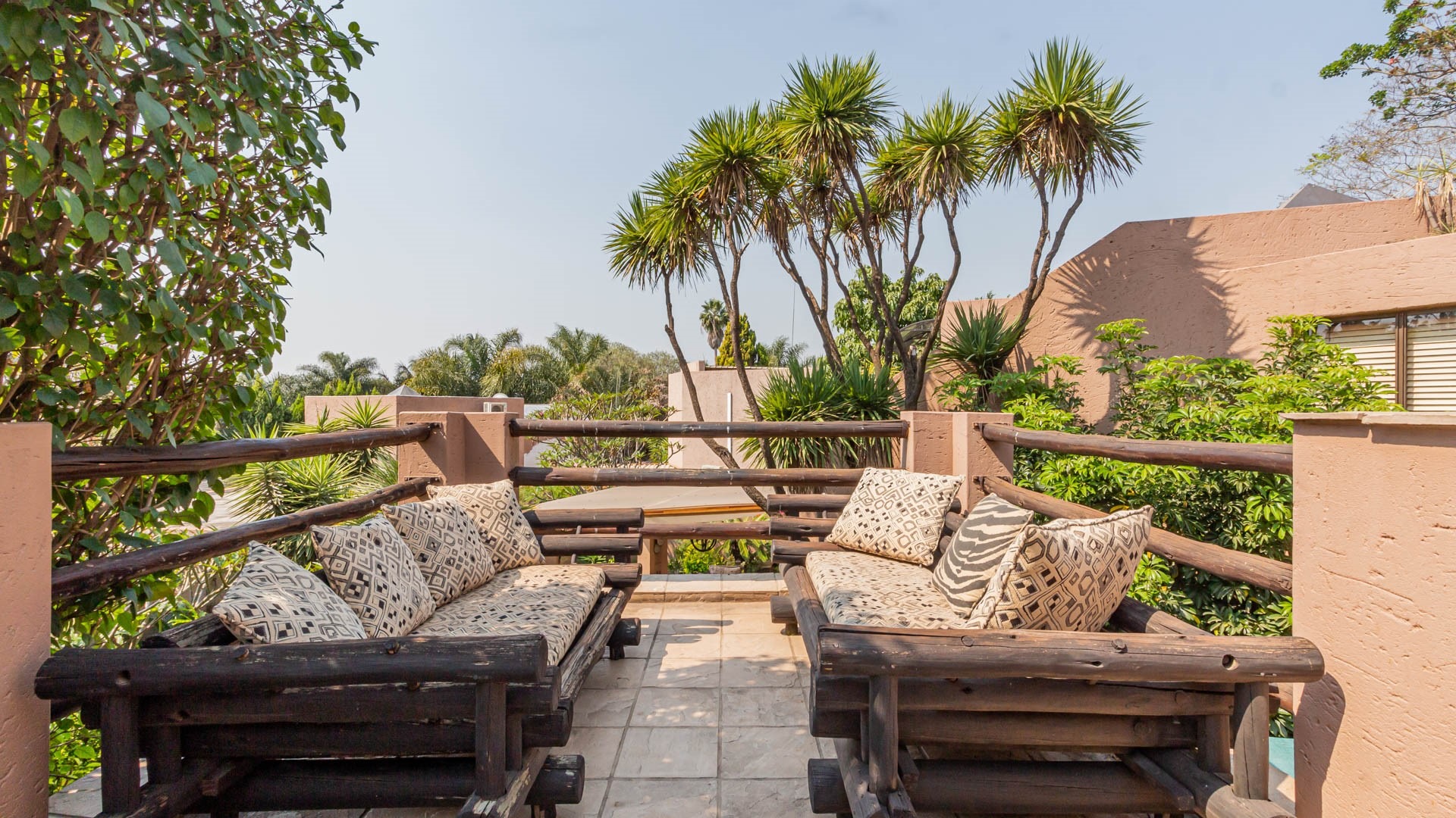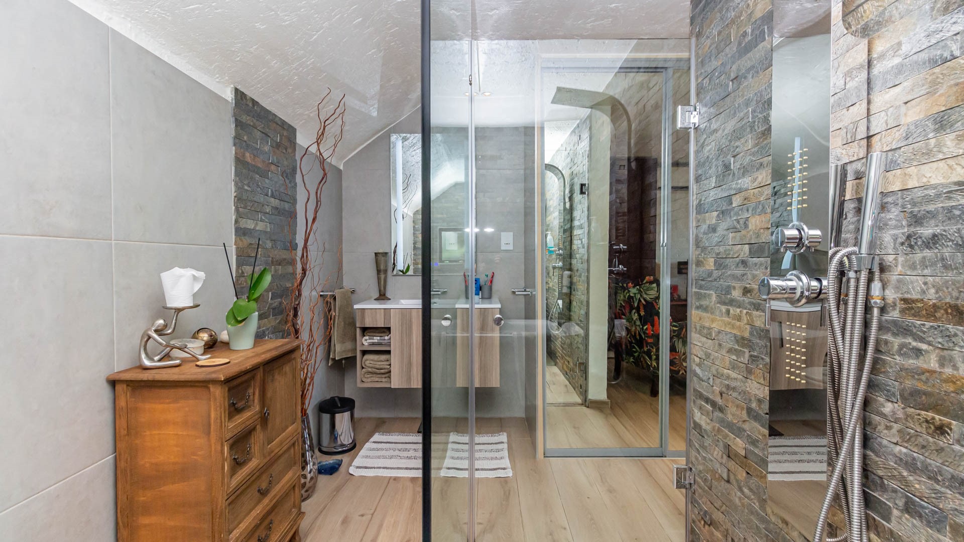 The ground floor is an open concept modern gourmet kitchen, lounge, and dining room with sliding doors onto a patio with a “water wall” feature overlooking a sparkling swimming pool in a simply beautiful garden, also home to a private jacuzzi. The double 2nd bedroom and 3rd guest bedroom, currently used as a snug, are also located on this floor and serviced