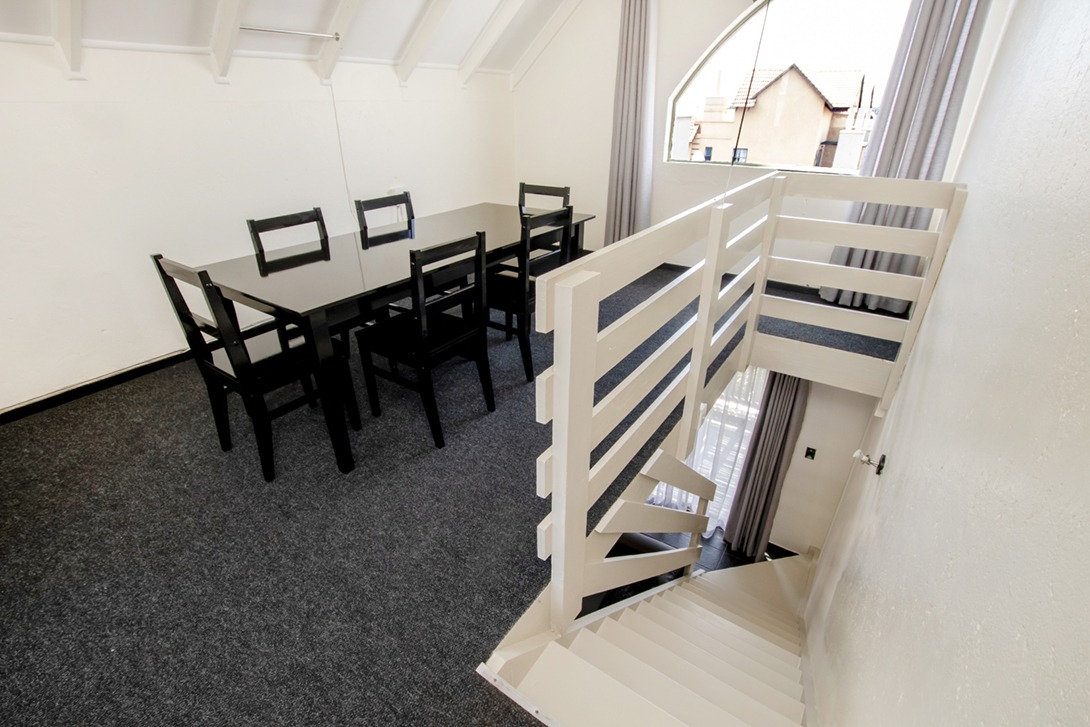 Upstairs, the apartment opens into two versatile rooms and an expansive outdoor area designed for entertaining. With a built-in braai and plenty of open-air space, this level becomes the heart of the home, the perfect setting for gatherings, relaxed afternoons, or quiet evenings under the sky. It’s truly an entertainer’s haven.