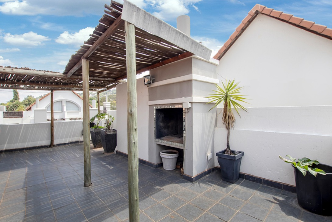 Upstairs, the apartment opens into two versatile rooms and an expansive outdoor area designed for entertaining. With a built-in braai and plenty of open-air space, this level becomes the heart of the home, the perfect setting for gatherings, relaxed afternoons, or quiet evenings under the sky. It’s truly an entertainer’s haven.