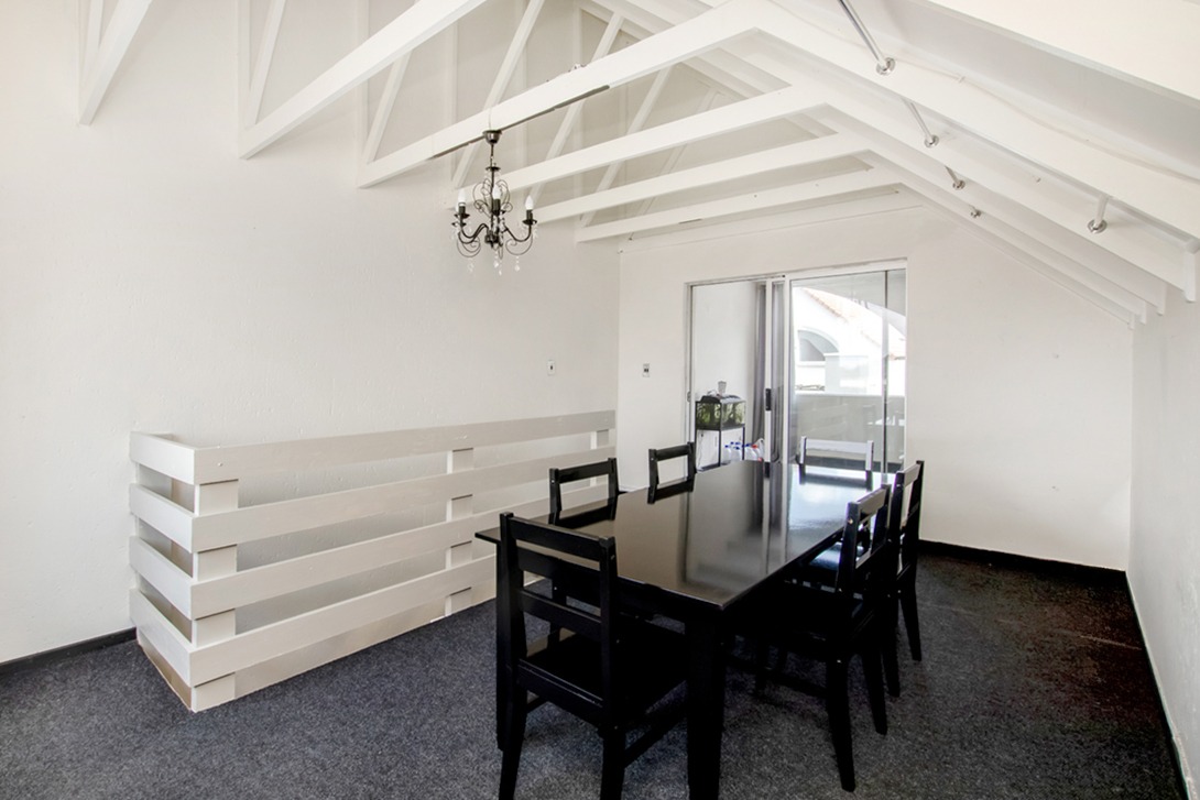 The second upstairs room is a separate enclosed space that works well as a home office or additional bedroom. You walk through this room to reach the main balcony, it has lot of natural light, and it can be used as a workspace, but it also functions as a passage to the outdoor area.