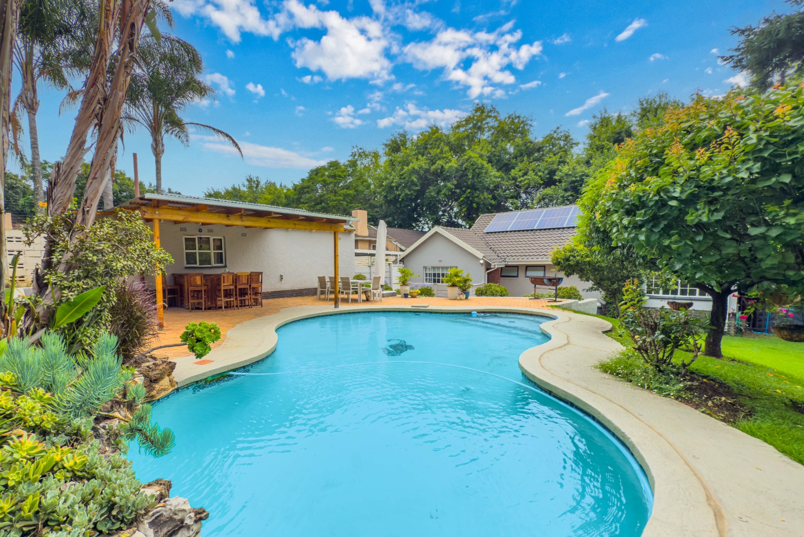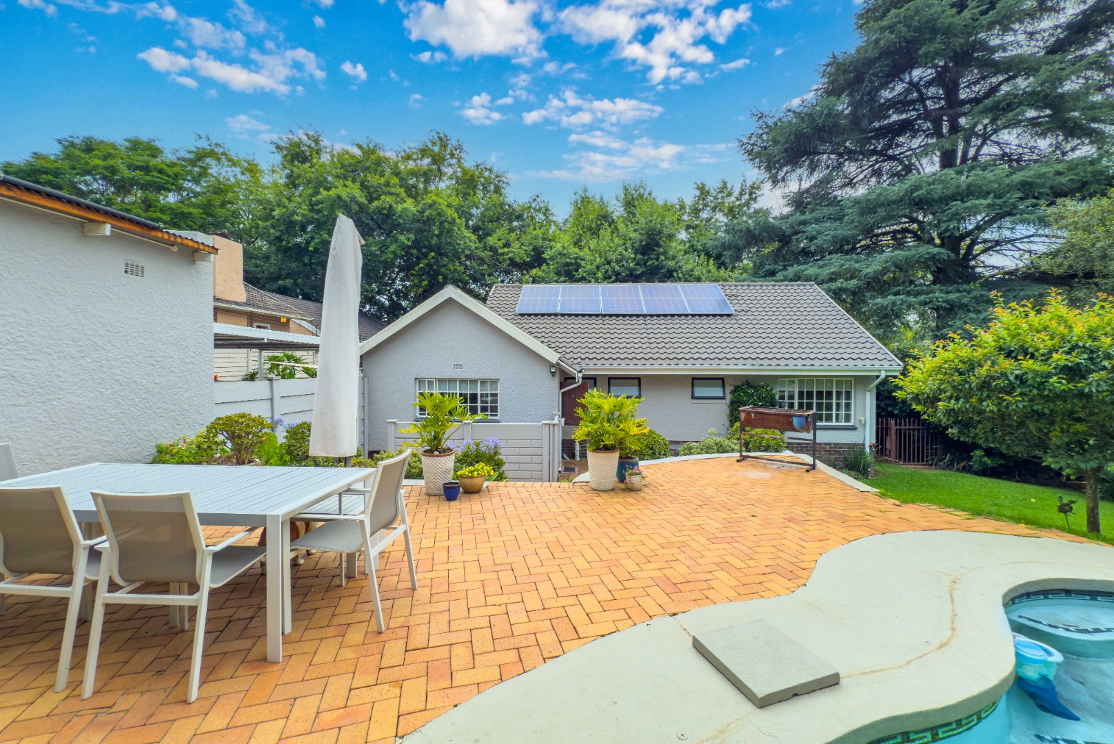 Set in a quiet, leafy street within a sought-after boomed section of Blairgowrie, this family home offers space, security and exceptional convenience. Located minutes from top schools and key nodes, and equipped with solar power and fed by purified borehole water, it delivers a perfect balance of lifestyle, great features and peace of mind.