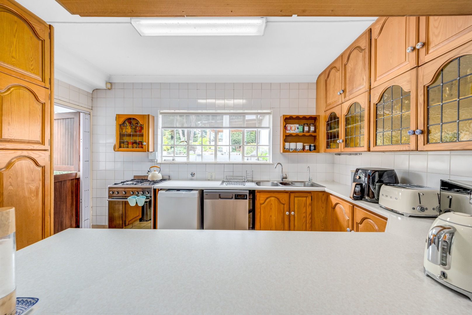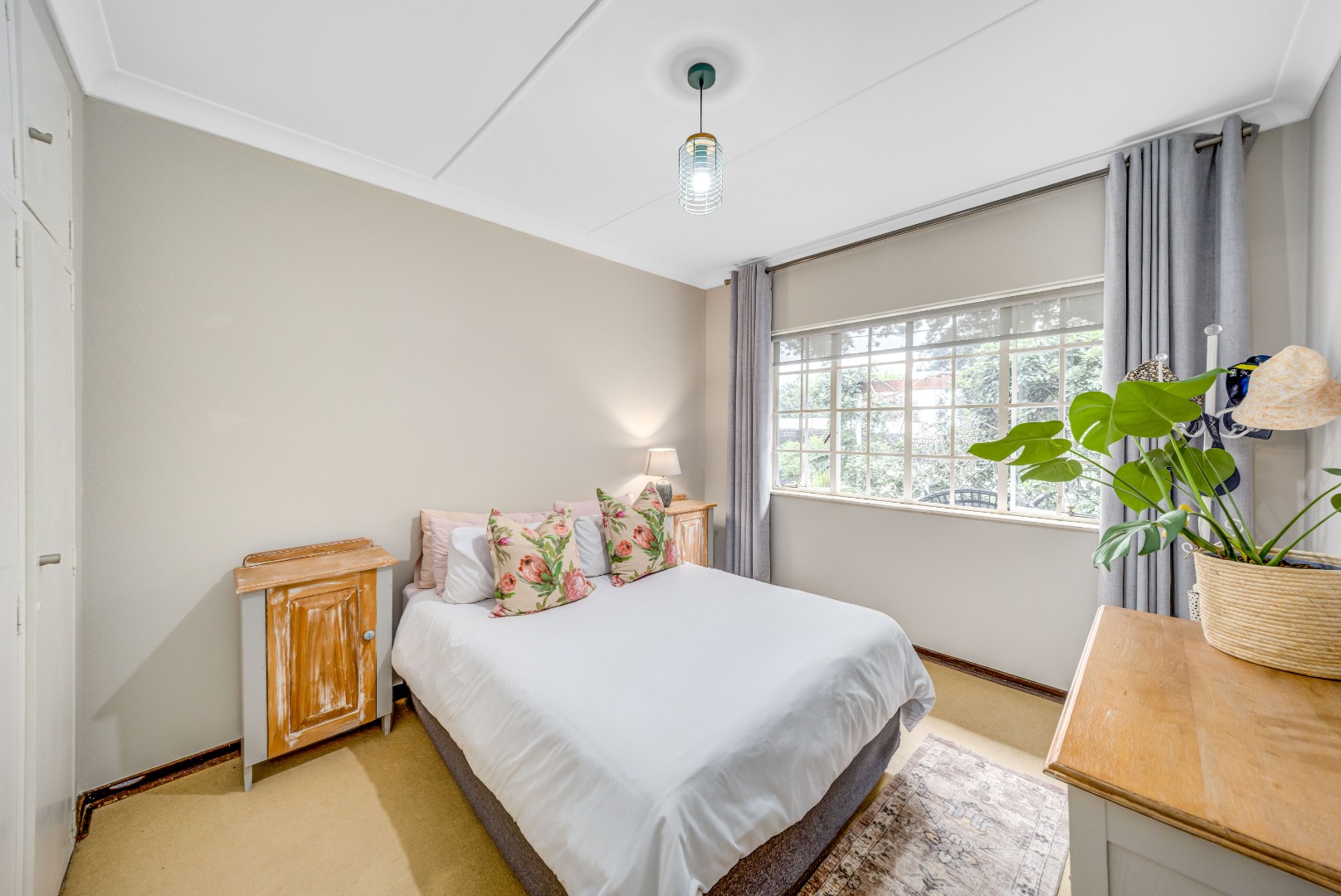 The private bedroom wing comprises three bedrooms with built-in cupboards, serviced by a beautifully renovated full bathroom and separate guest toilet, finished in a clean, modern style.