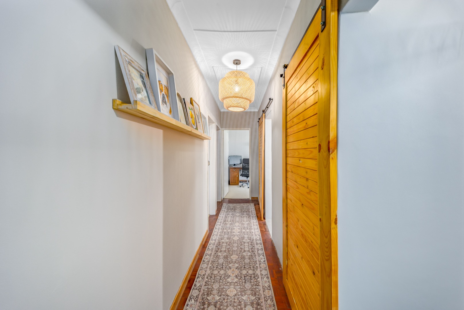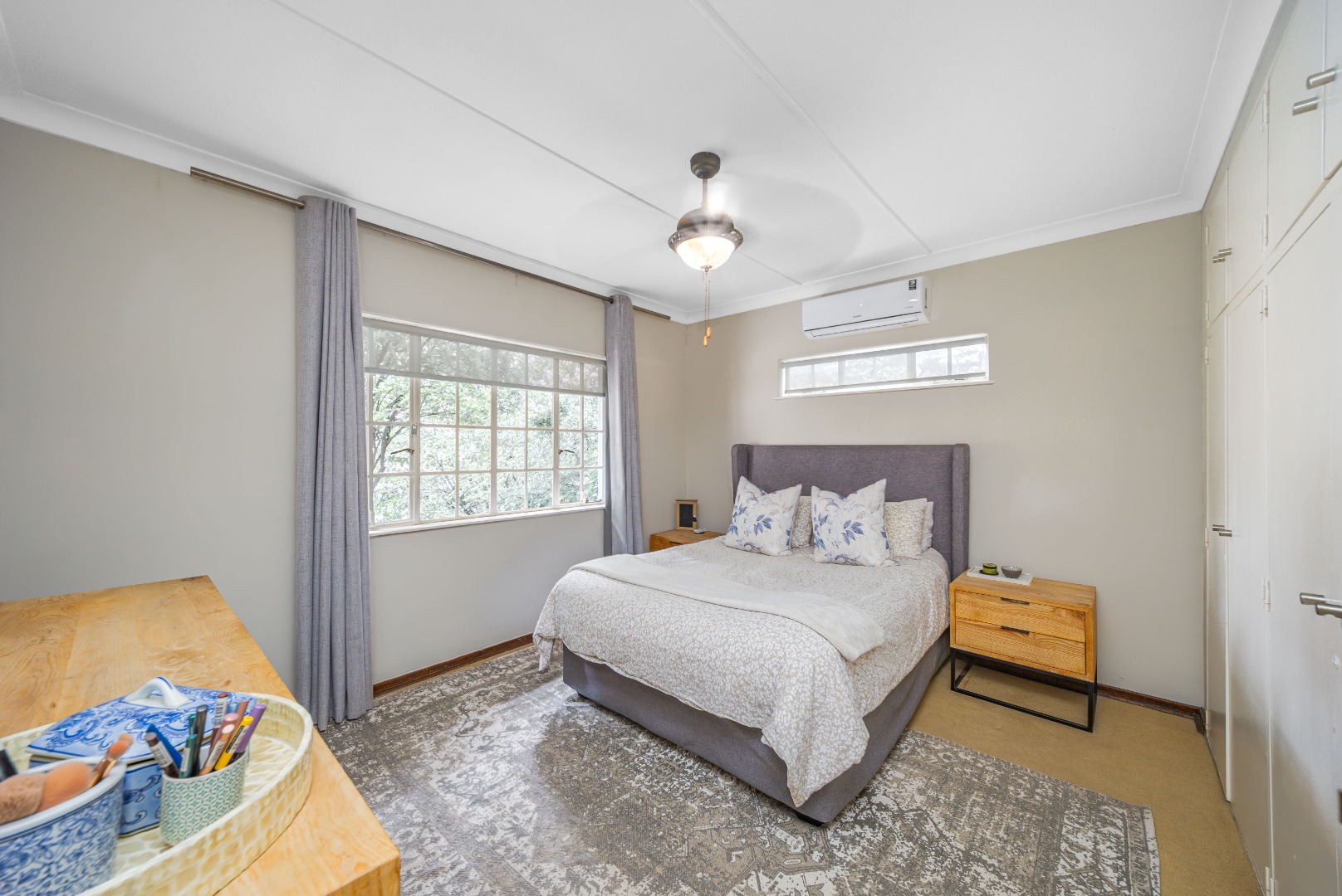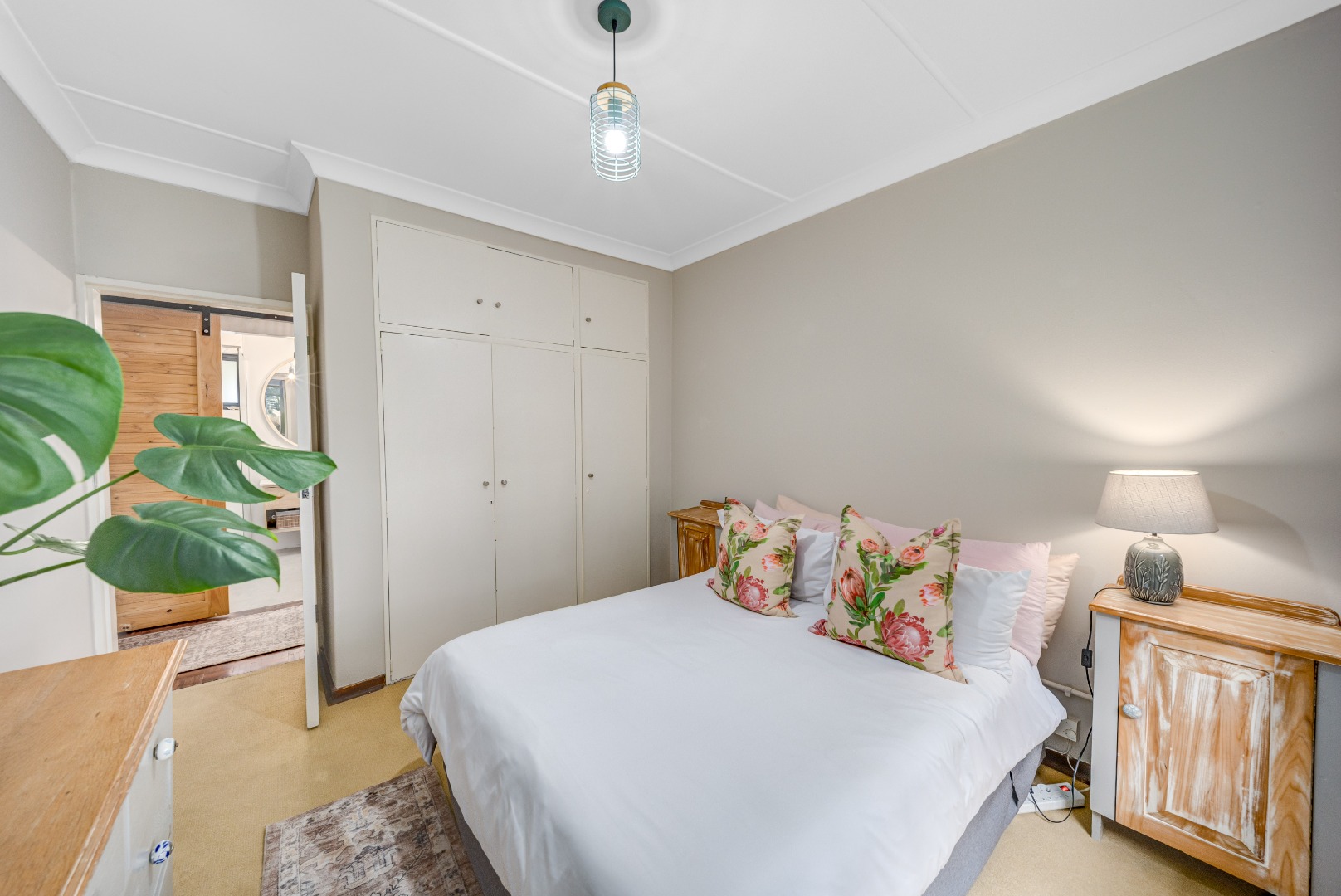 The private bedroom wing comprises three bedrooms with built-in cupboards, serviced by a beautifully renovated full bathroom and separate guest toilet, finished in a clean, modern style.