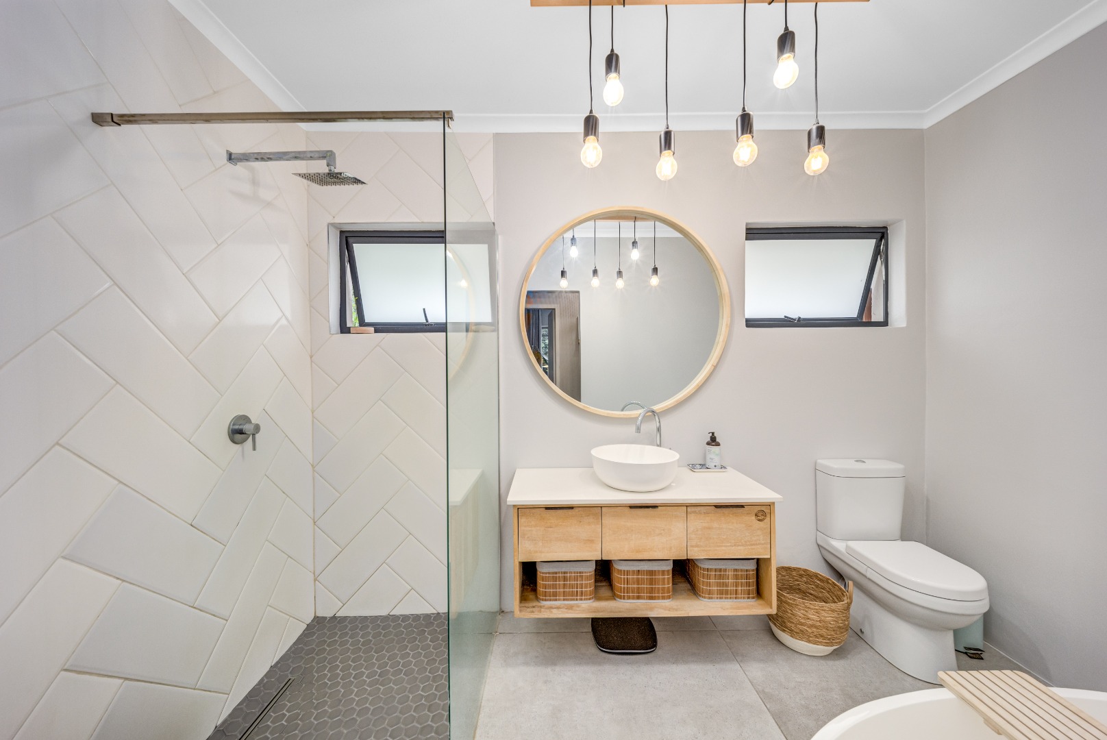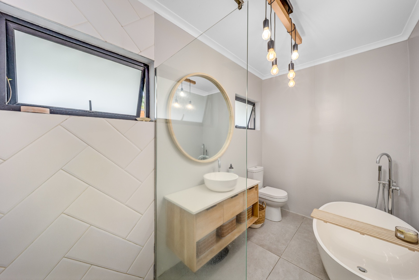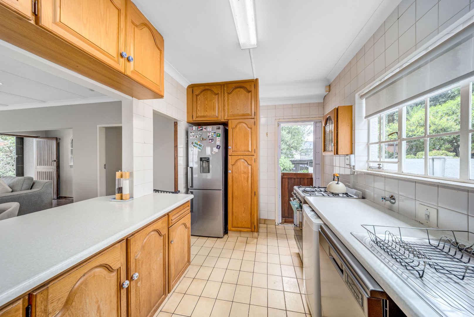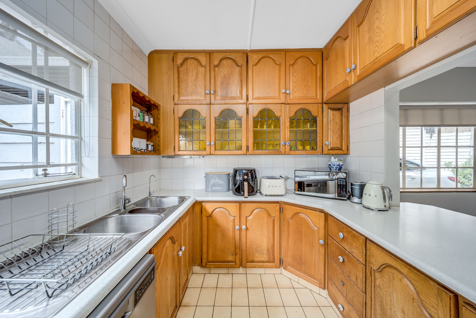 The private bedroom wing comprises three bedrooms with built-in cupboards, serviced by a beautifully renovated full bathroom and separate guest toilet, finished in a clean, modern style.