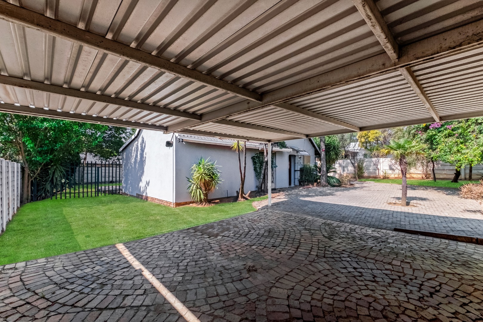 Enter into open plan reception areas with kitchen dining room and lounge. The house has new tiles throughout. The lounge leads offer doors leading into enclosed covered patio. The dining room also has doors leading into the garden. Three bedrooms with 2 bathrooms. The main bedroom with bathroom on suite is modern with shower. The second bathroom is outdated but functional. Wrap around garden with ample parking in the front with Hollywood garage entrance. Pedestrian gate. Storage hut at the back. The font entertainment area