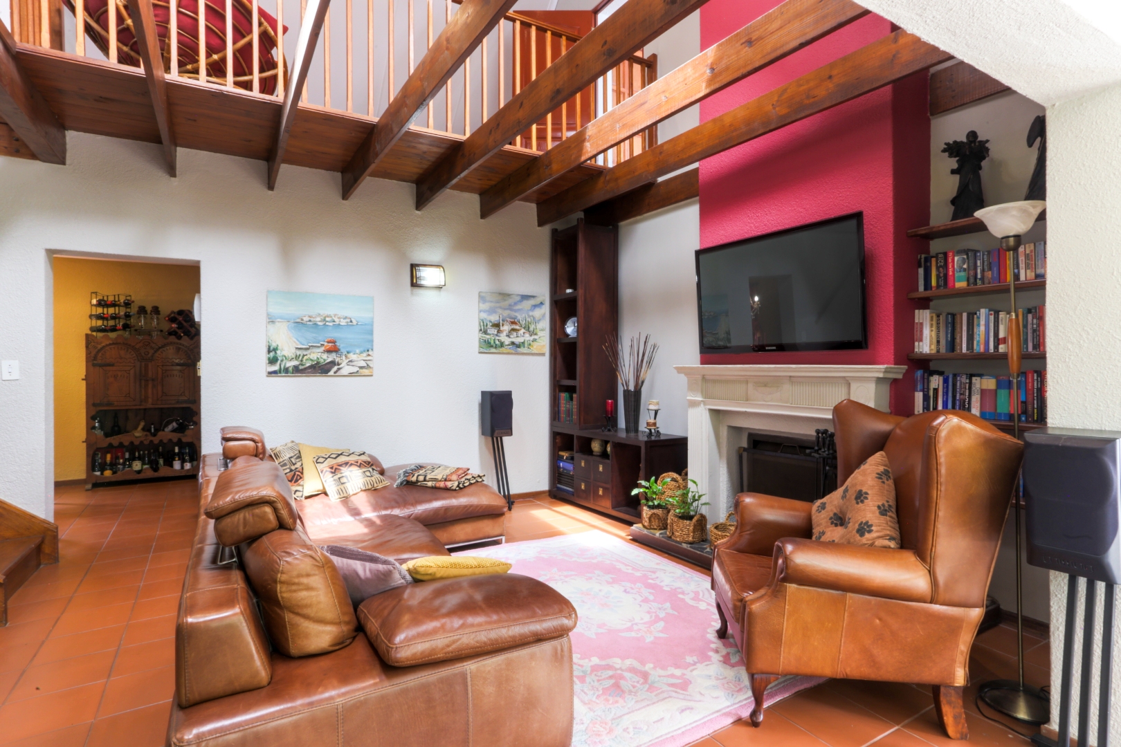 Upstairs offers a second TV lounge leading to a balcony, plus two additional bedrooms—one with a private balcony and the other with its own bathroom and kitchenette, ideal for extended family or rental potential.