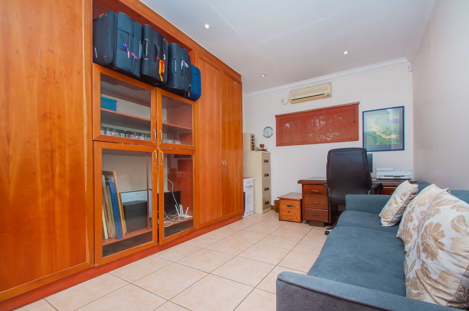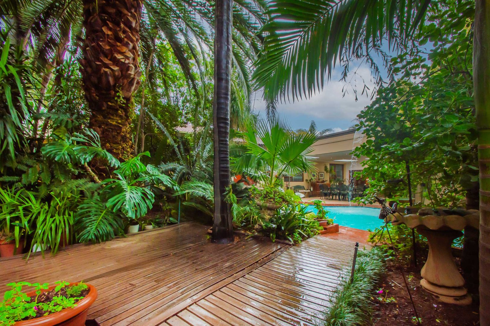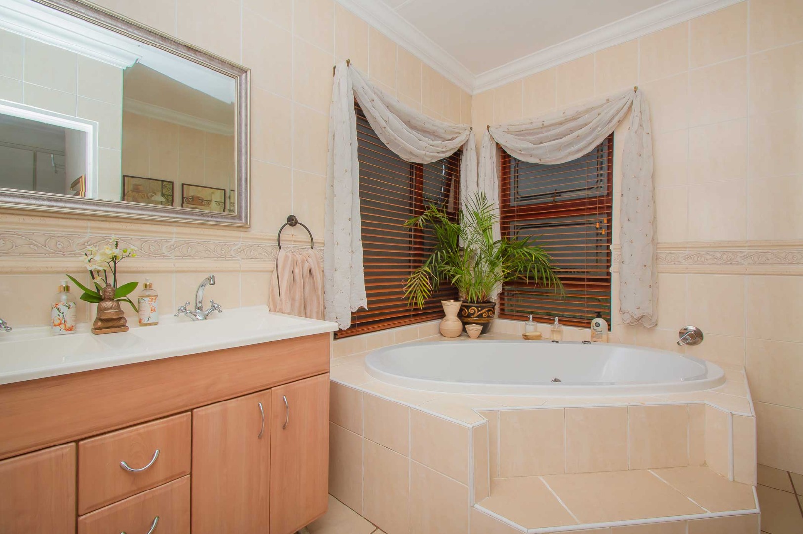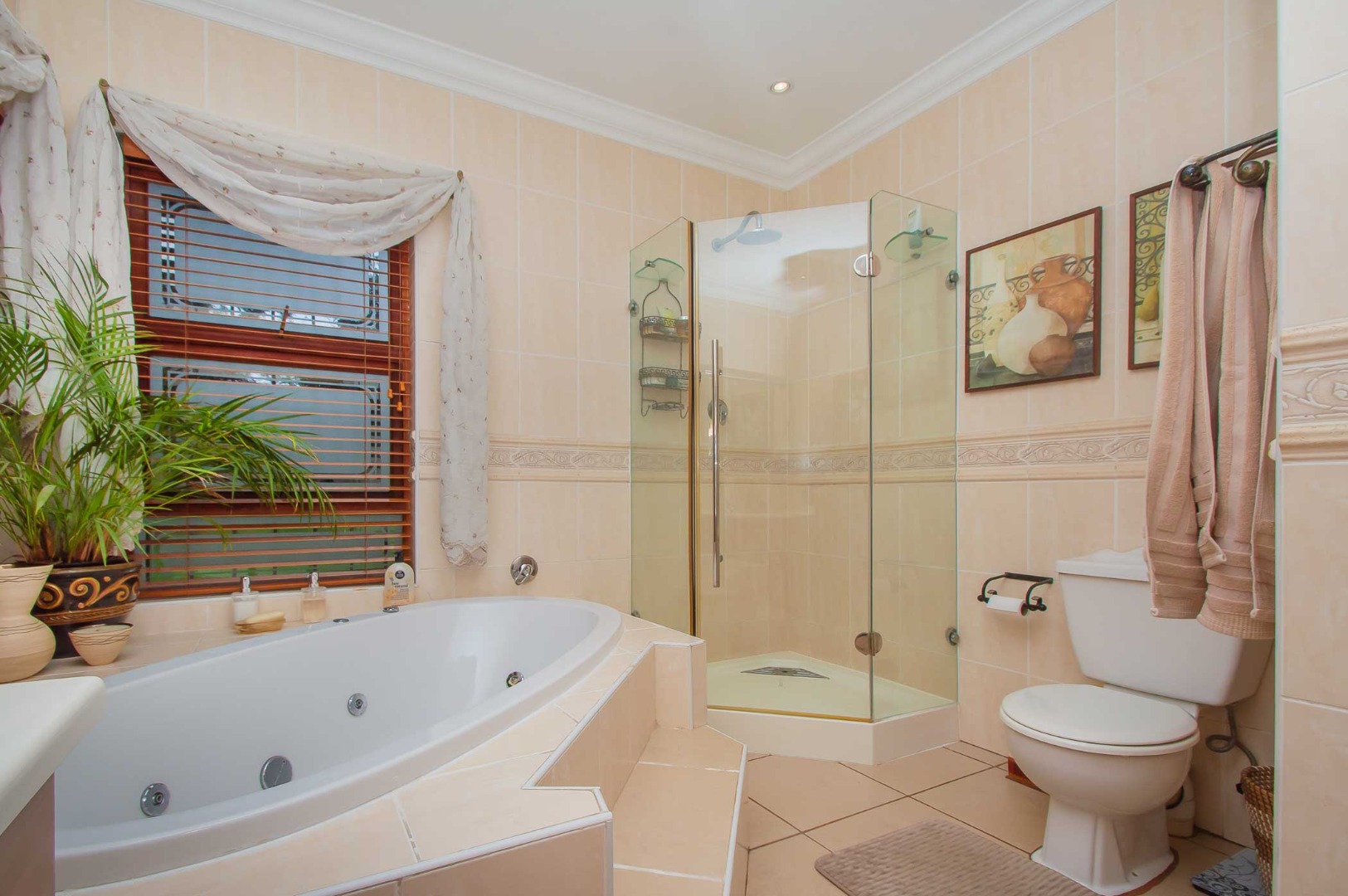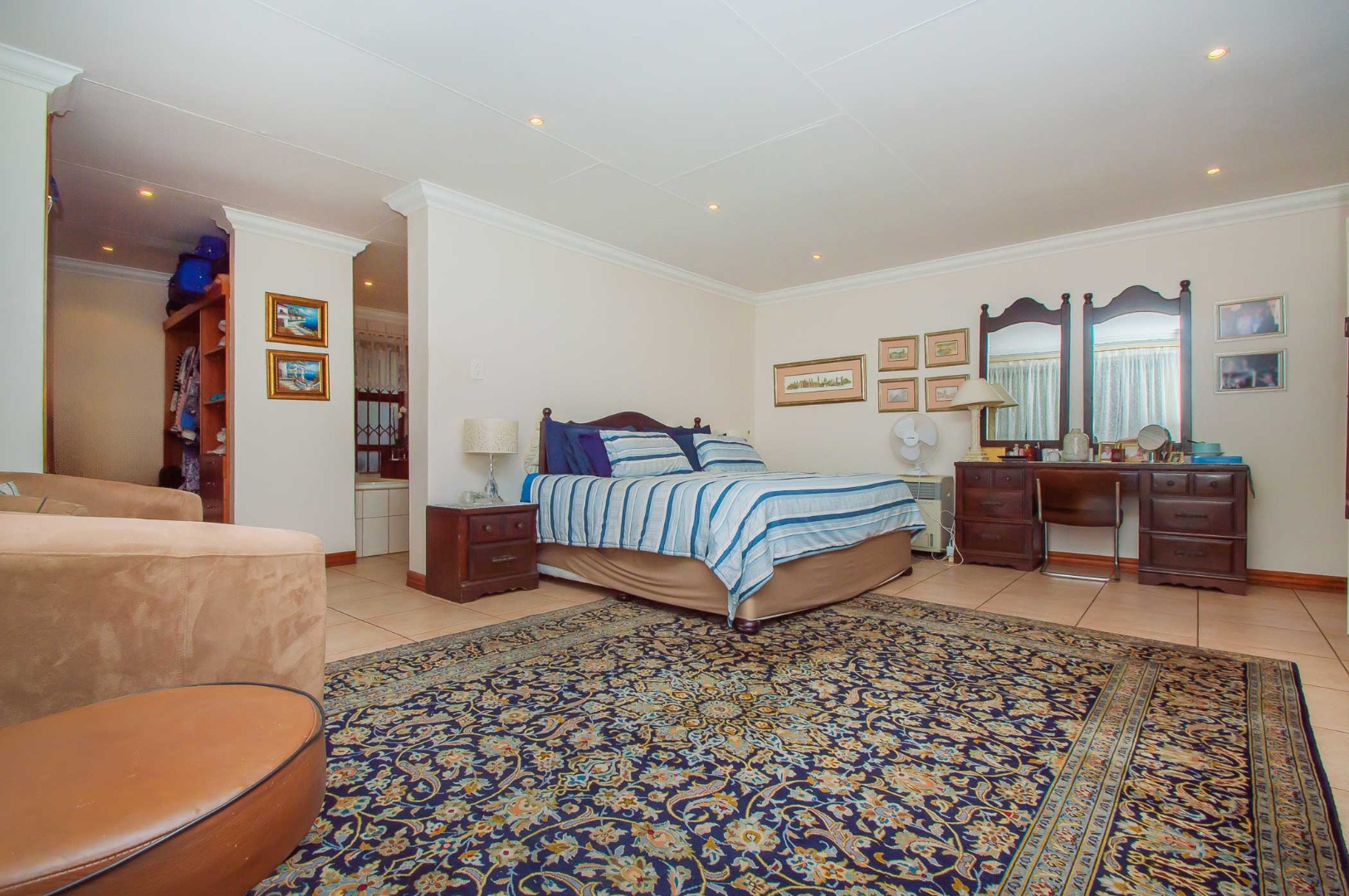 The heart of this home features a large lounge and dining room, perfect for family gatherings. For more informal moments, a separate family room comes complete with a built-in bar, ideal for entertaining guests. These inviting living spaces seamlessly open up to a covered patio, which boasts a built-in braai and a spacious area for both dining and relaxing.