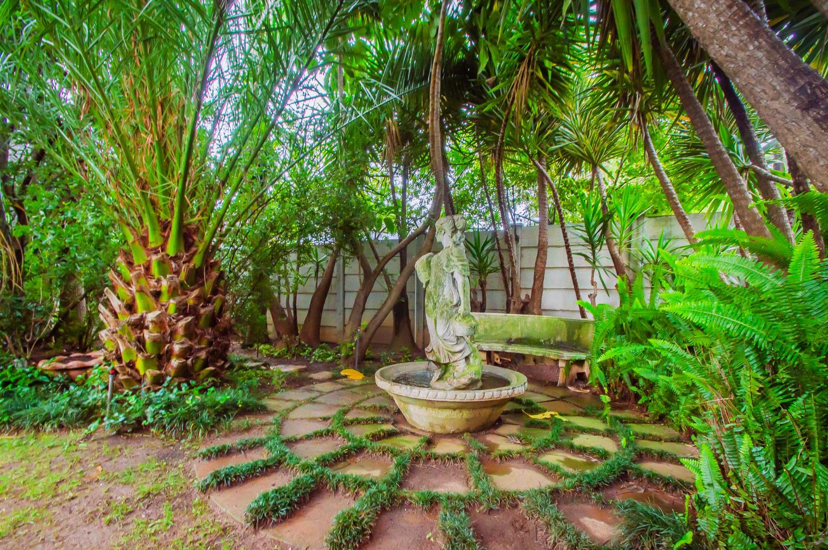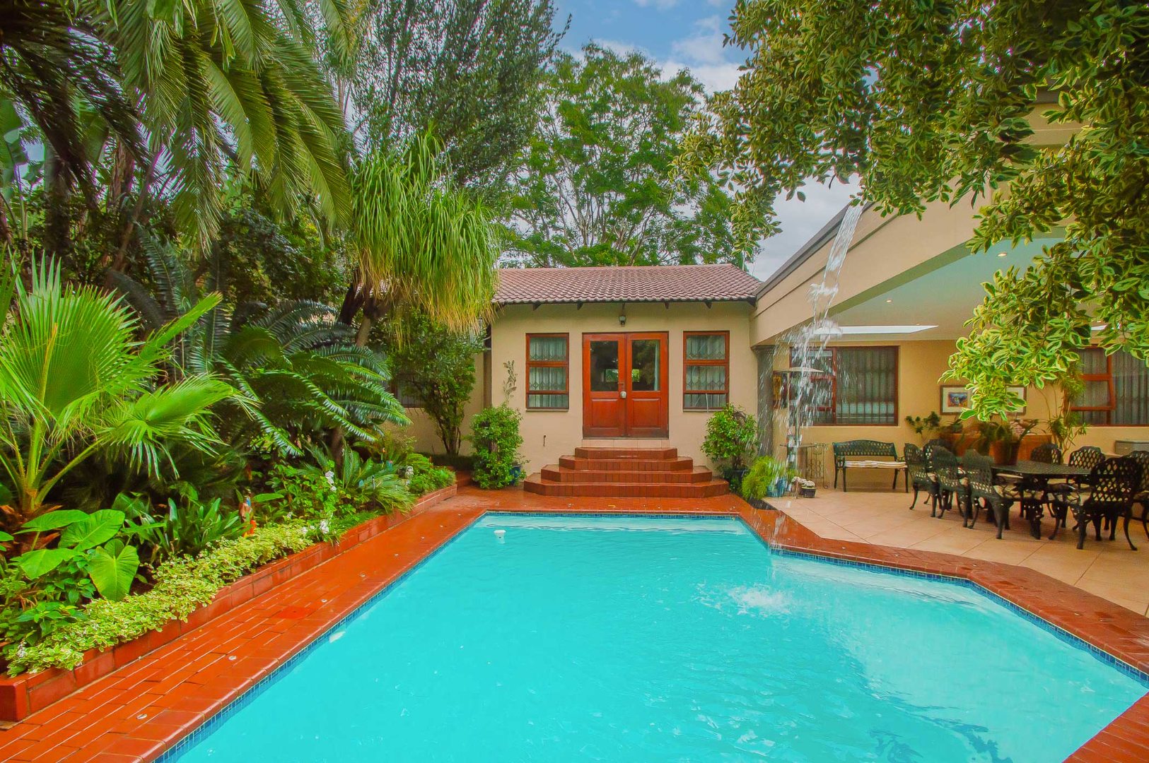 Step outside to your private oasis, where a stunning waterfall feature cascades into a sparkling pool. The expansive garden extends to the back, providing ample space for pets to roam and little ones to play in safety and freedom.