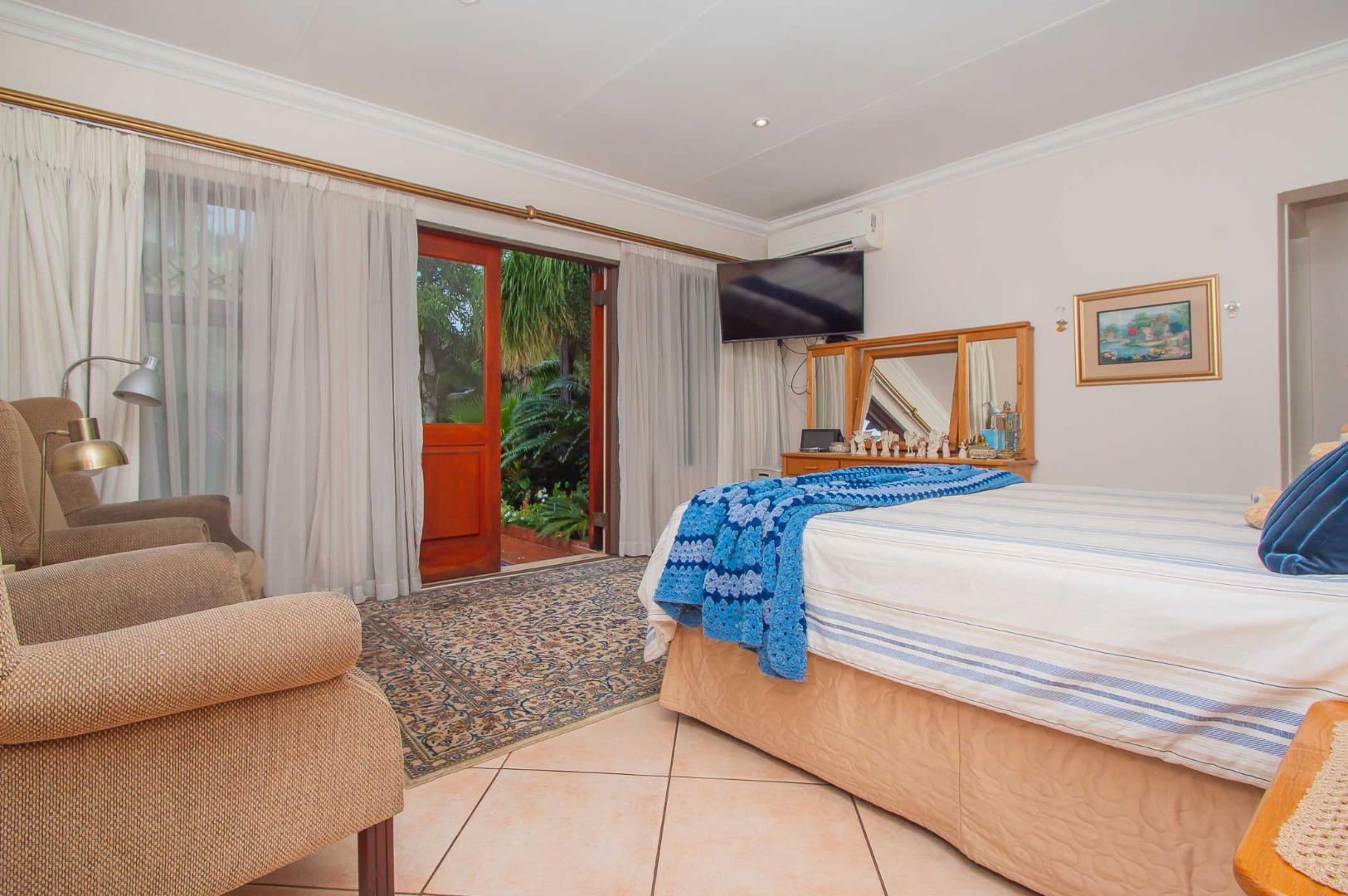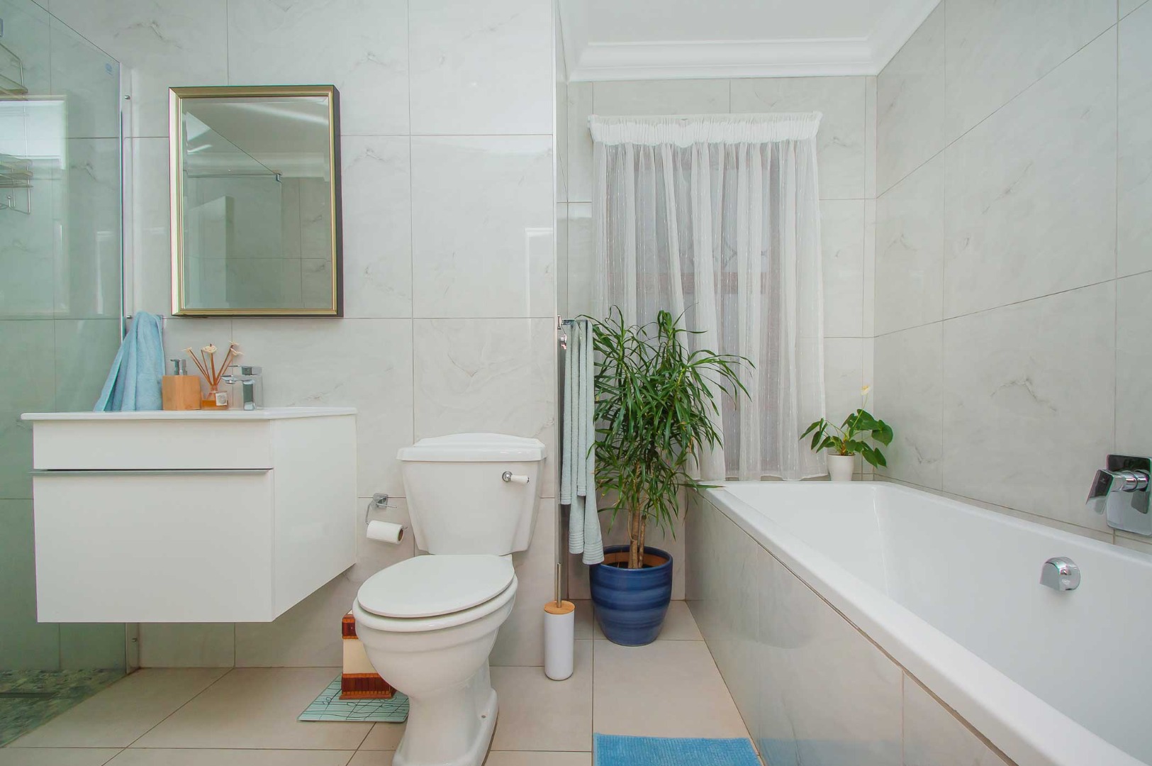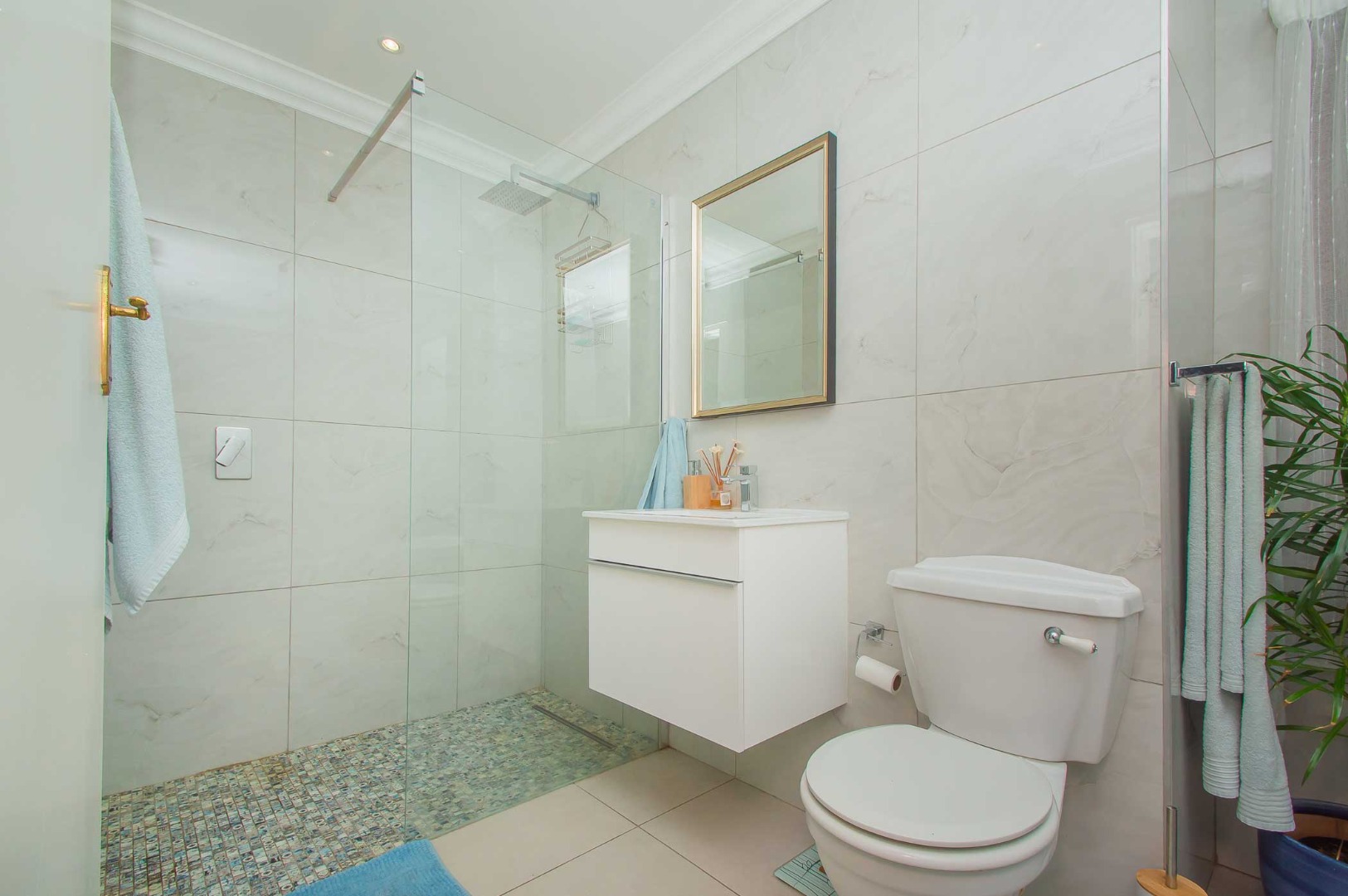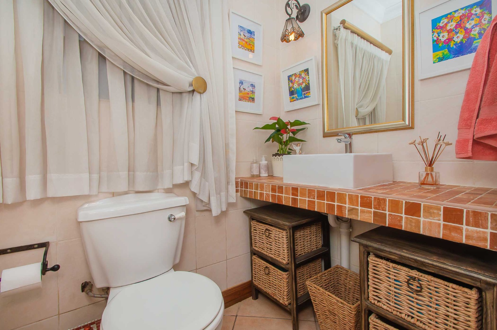 The main home provides comfortable accommodation with four bedrooms. The luxurious main suite includes a dressing area and a full en-suite bathroom with a double vanity. Doors open from the main bedroom to the tranquil garden, offering a peaceful retreat. The remaining bedrooms are serviced by a full family bathroom, and a guest loo is conveniently available for visitors.