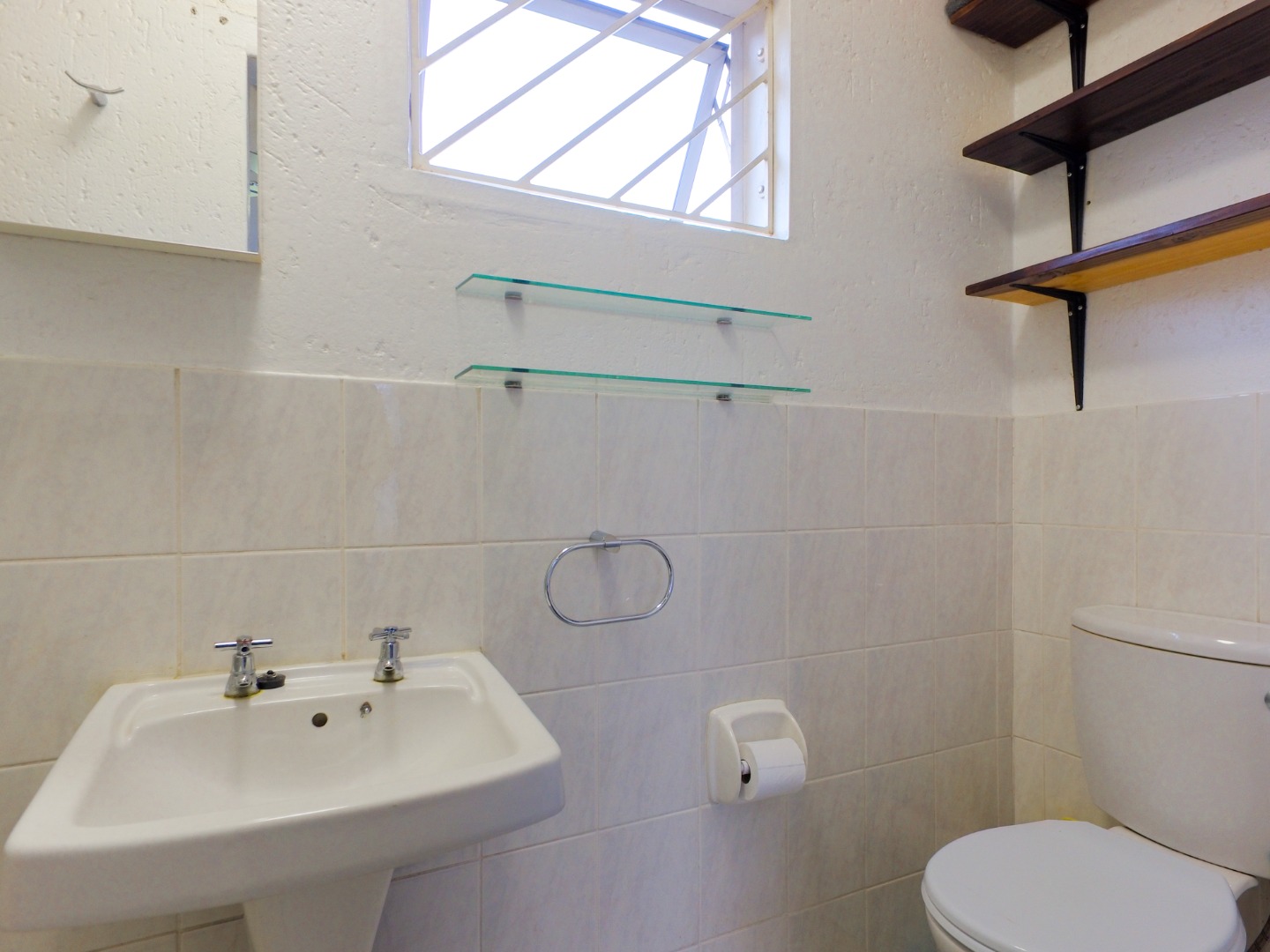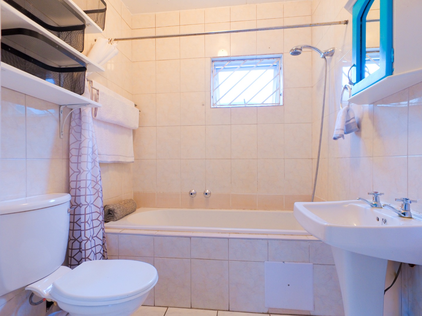 Accommodation includes three well-sized bedrooms with carpeted flooring and built-in cupboards, and two neat bathrooms, one offering a shower in the MES, and the other bath in the family bathroom with a shower attachment over the bath, basin, and toilet.