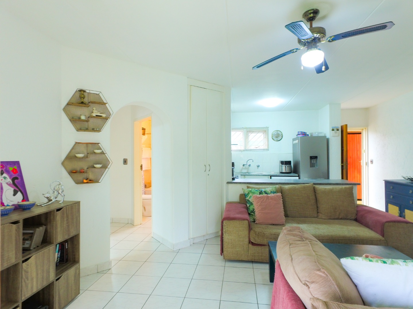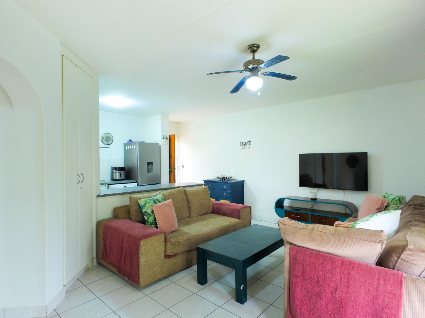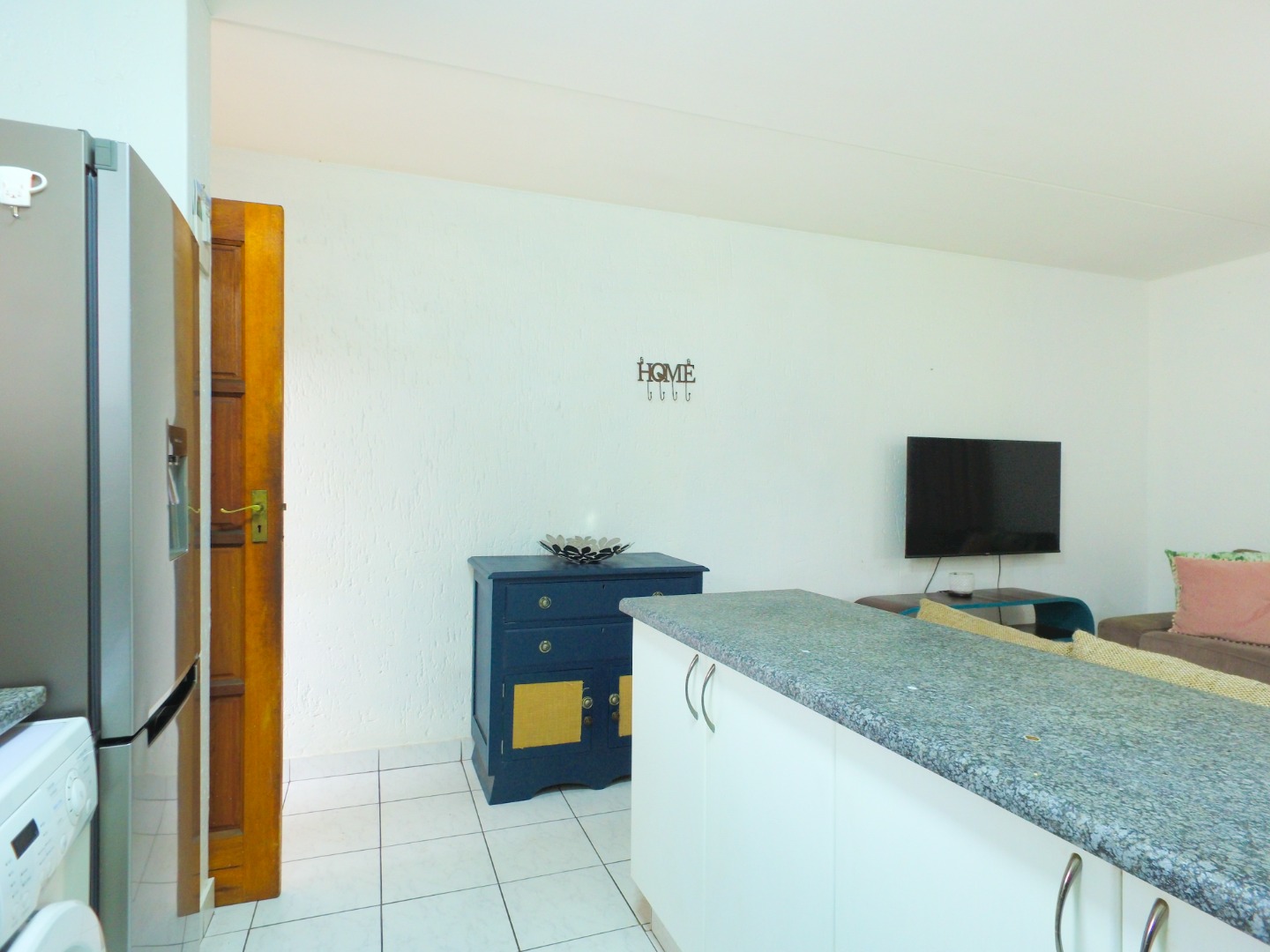 Step inside to an inviting open plan living area, the lounge and kitchen space flow seamlessly onto a covered, tiled patio complete with a built-in braai, ideal for relaxed entertaining and enjoying your own private garden.