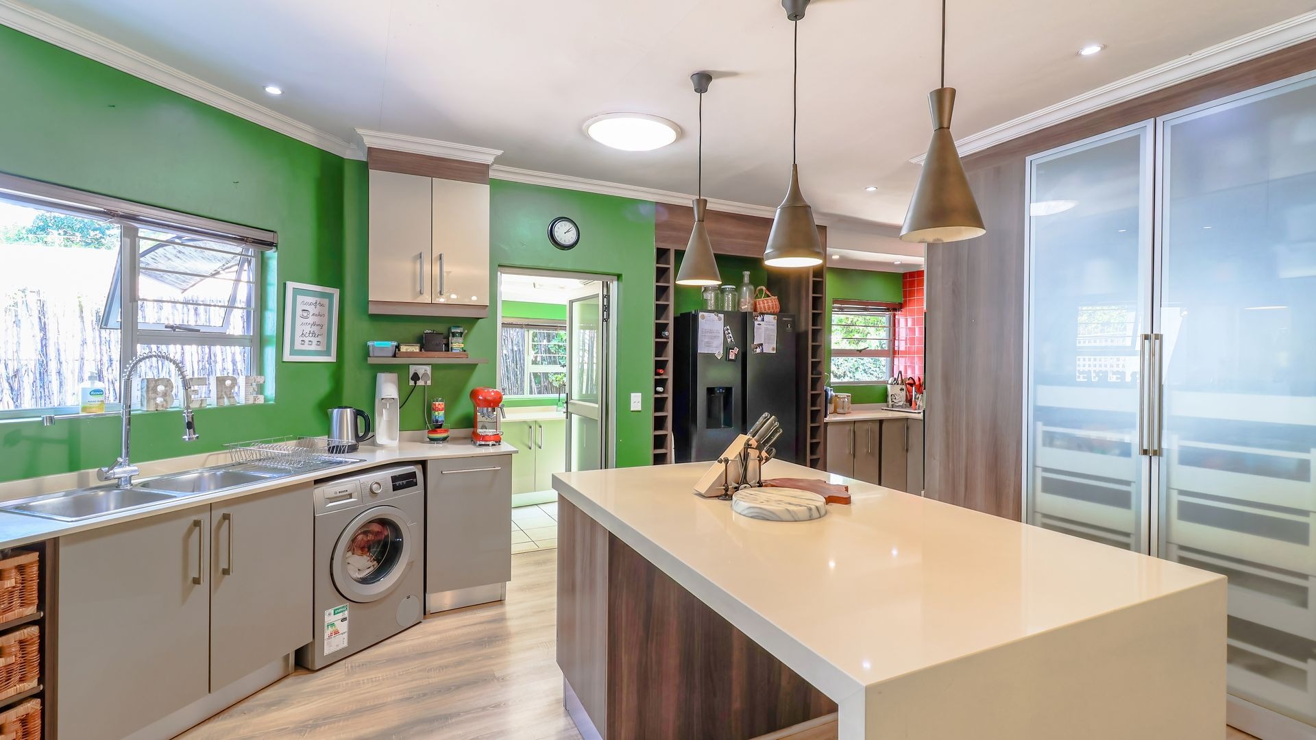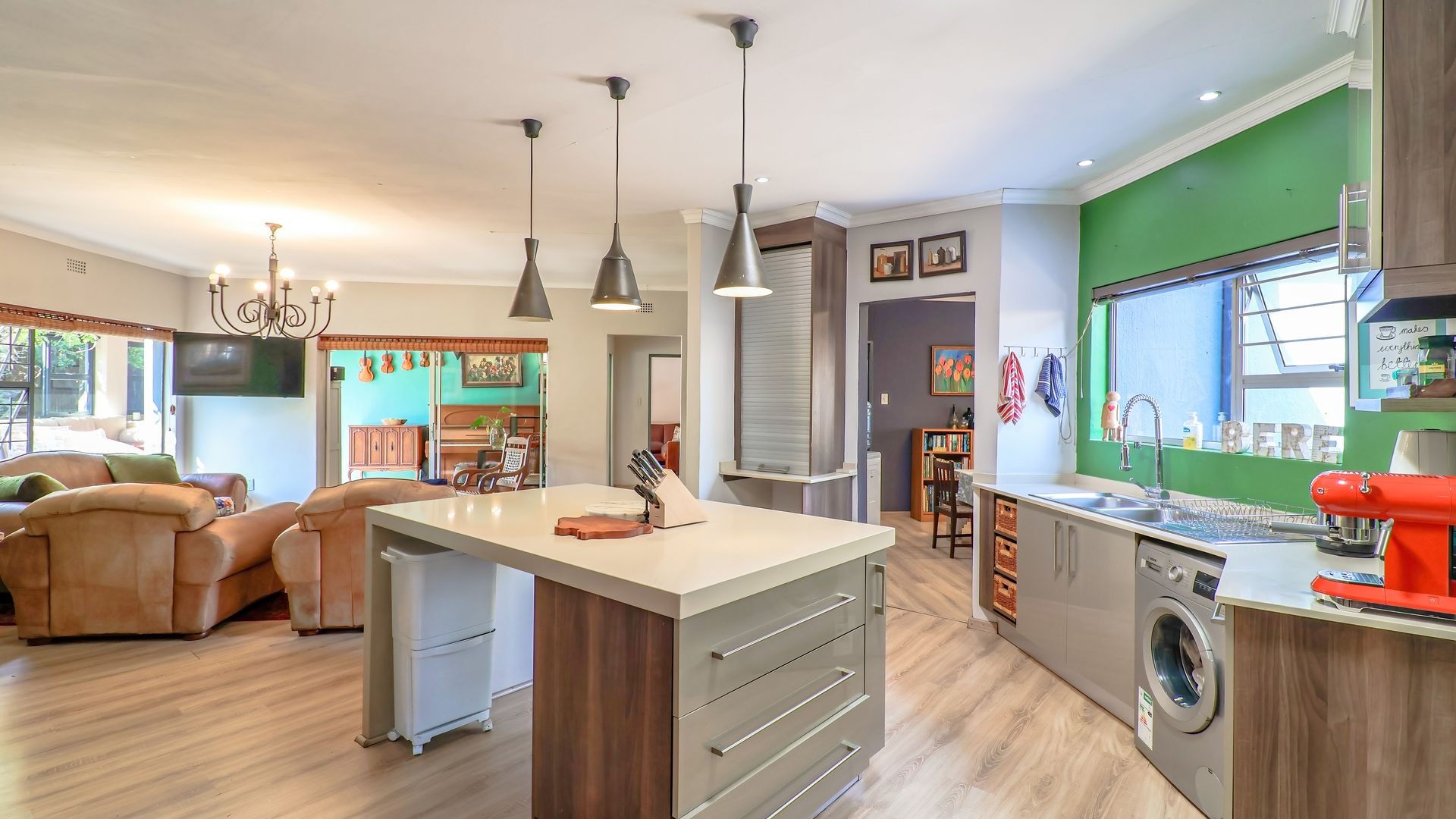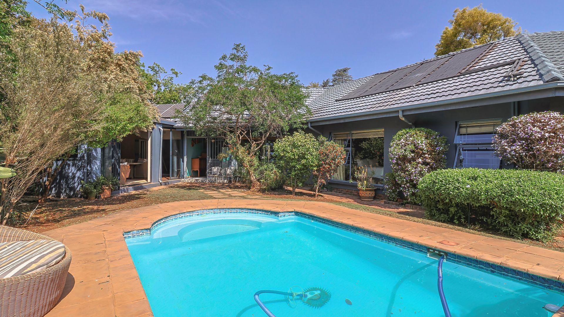 BOREHOLE! Nestled in a quiet, secure boomed area of Darrenwood, this open-plan family home offers the ultimate in modern living and entertainment. Boasting an 8kVA inverter system with 12 solar panels and 3 lithium batteries, this home ensures energy efficiency and peace of mind. The heart of the home features a stylish modern kitchen with Caesarstone tops, a gas hob, pantry, and scullery, flowing seamlessly into the dining area, piano lounge, and cozy TV lounge with a contemporary fireplace. The entertainment/playroom, large covered patio with aluminum stack doors, and built-in braai open onto a lush, manicured garden and sparkling heated pool, perfect for family gatherings or weekend entertaining.