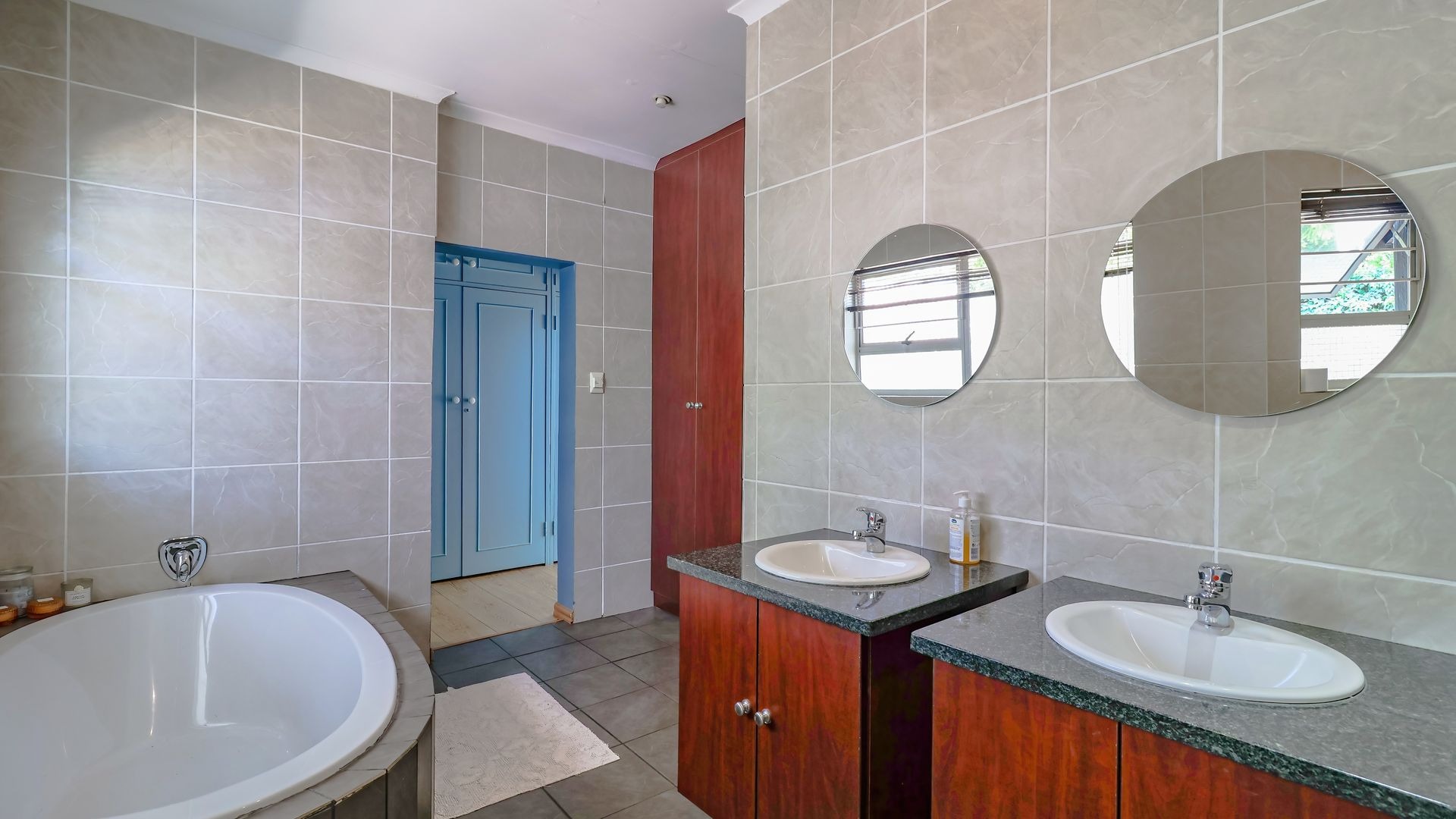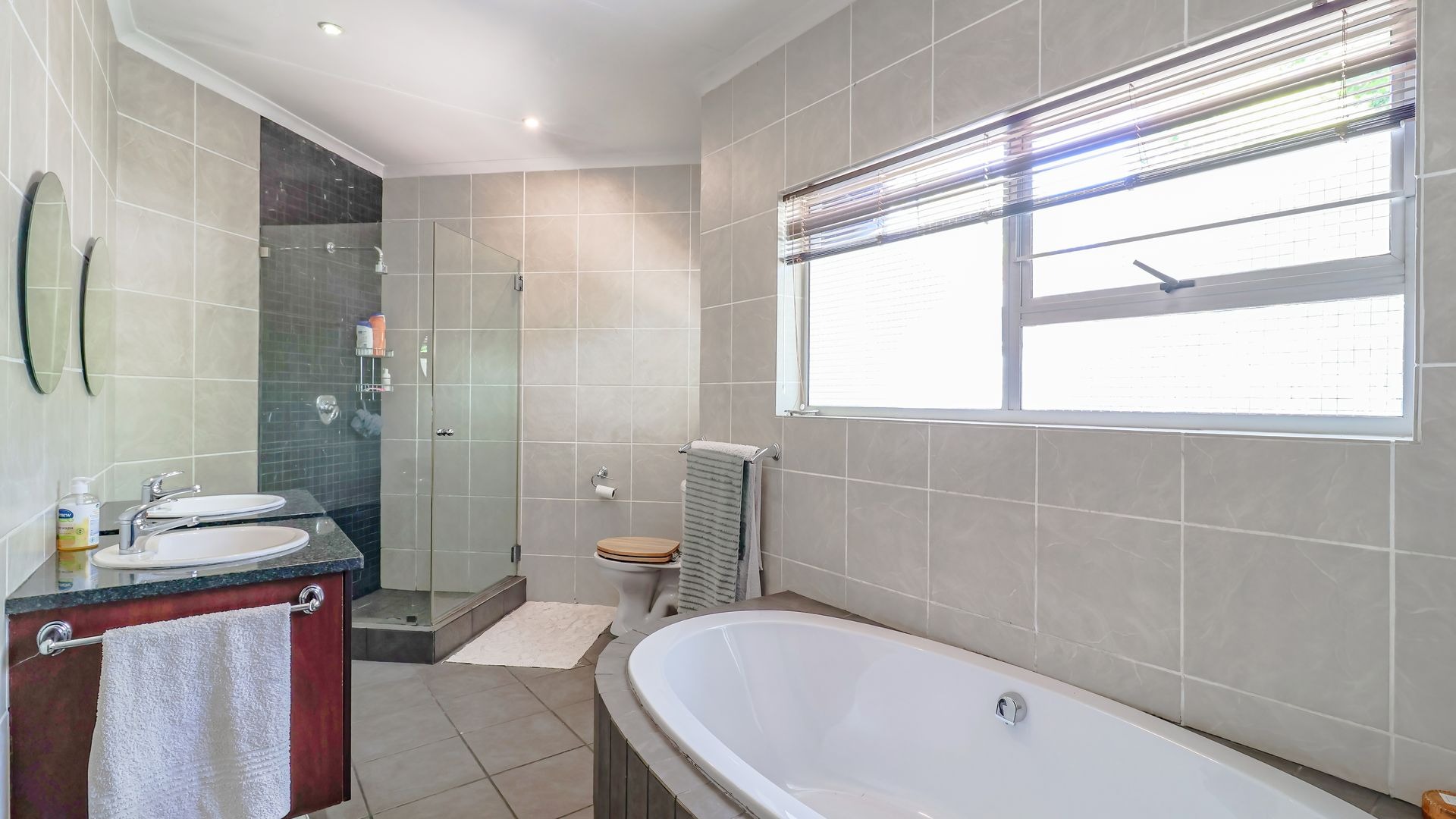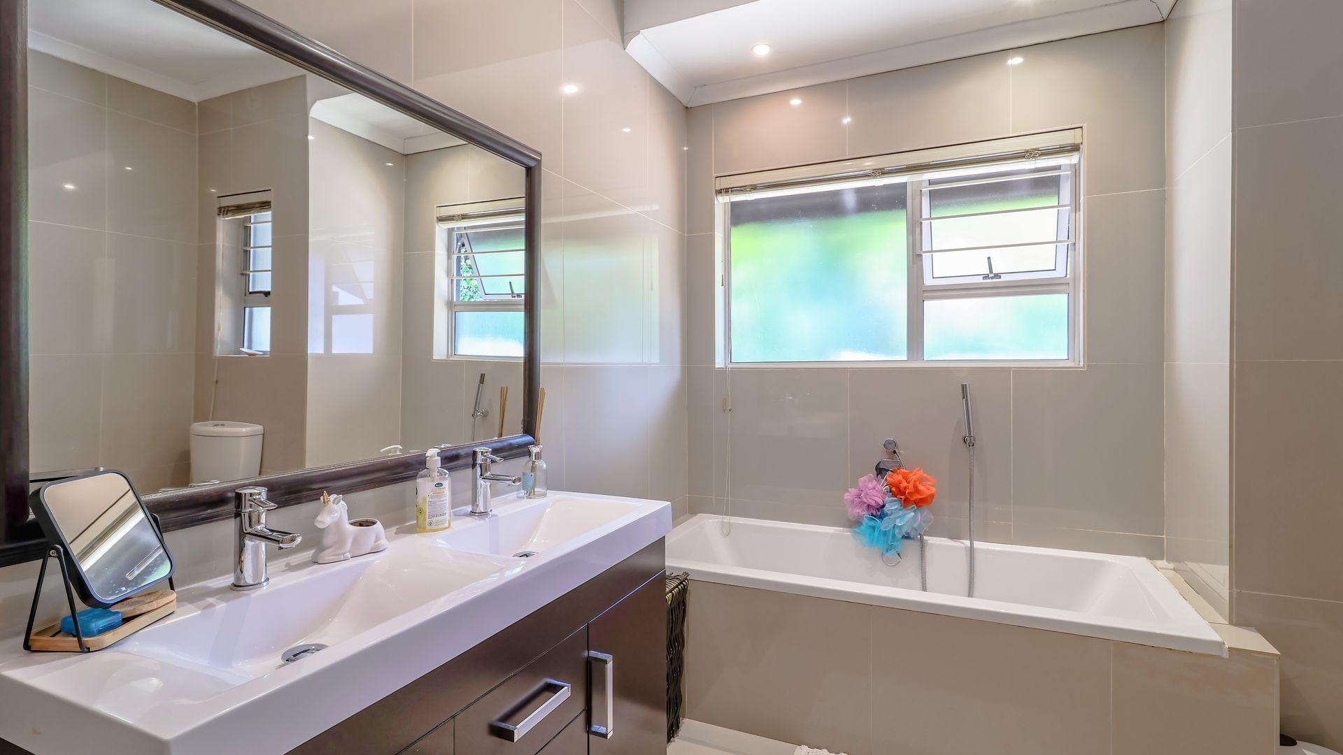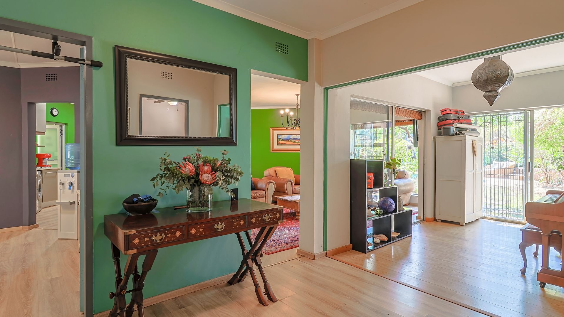 BOREHOLE! Nestled in a quiet, secure boomed area of Darrenwood, this open-plan family home offers the ultimate in modern living and entertainment. Boasting an 8kVA inverter system with 12 solar panels and 3 lithium batteries, this home ensures energy efficiency and peace of mind. The heart of the home features a stylish modern kitchen with Caesarstone tops, a gas hob, pantry, and scullery, flowing seamlessly into the dining area, piano lounge, and cozy TV lounge with a contemporary fireplace. The entertainment/playroom, large covered patio with aluminum stack doors, and built-in braai open onto a lush, manicured garden and sparkling heated pool, perfect for family gatherings or weekend entertaining.