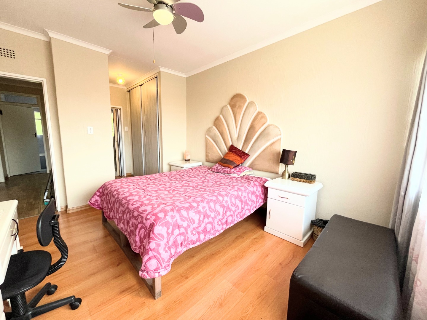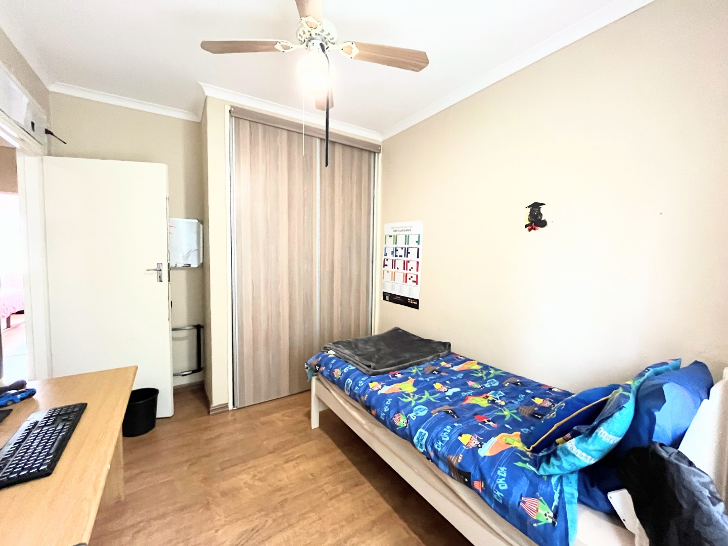 Upstairs, the main bedroom offers an en-suite bathroom and a ceiling fan for added comfort. All bedrooms feature built-in cupboards with sleek sliding doors for a modern touch and extra space efficiency. The second bedroom also includes a ceiling fan.