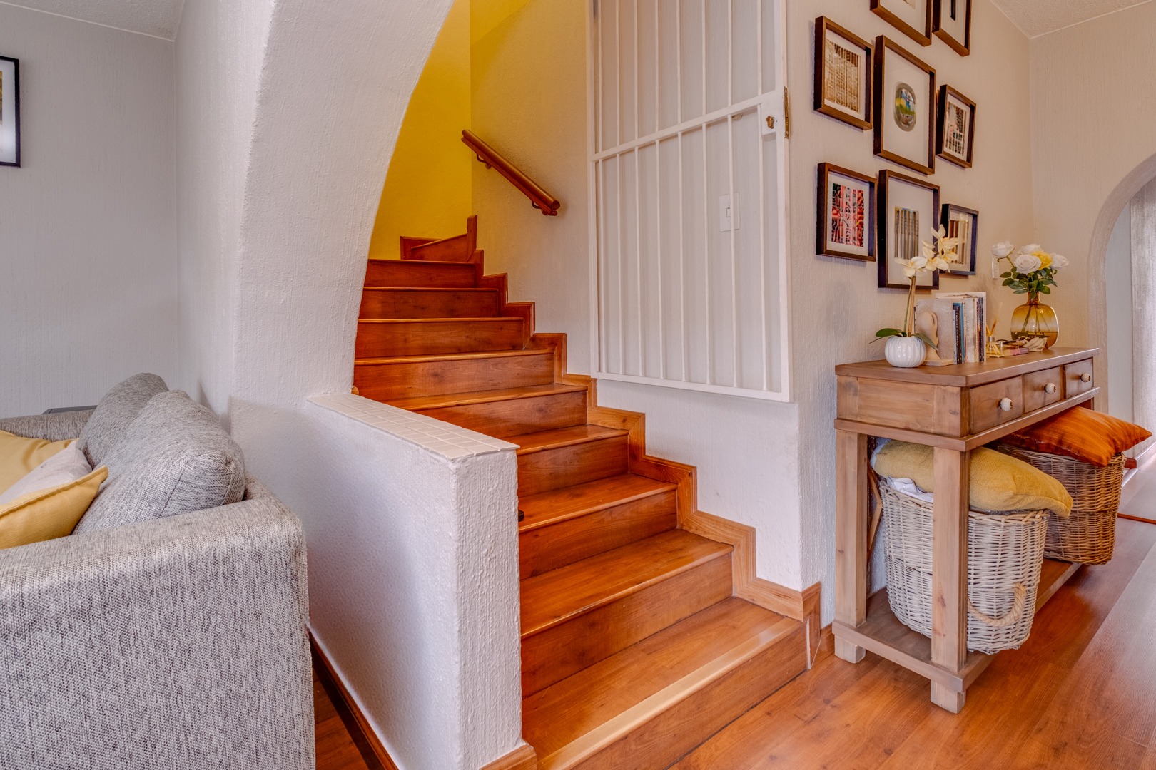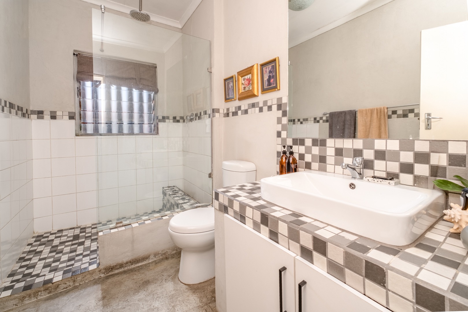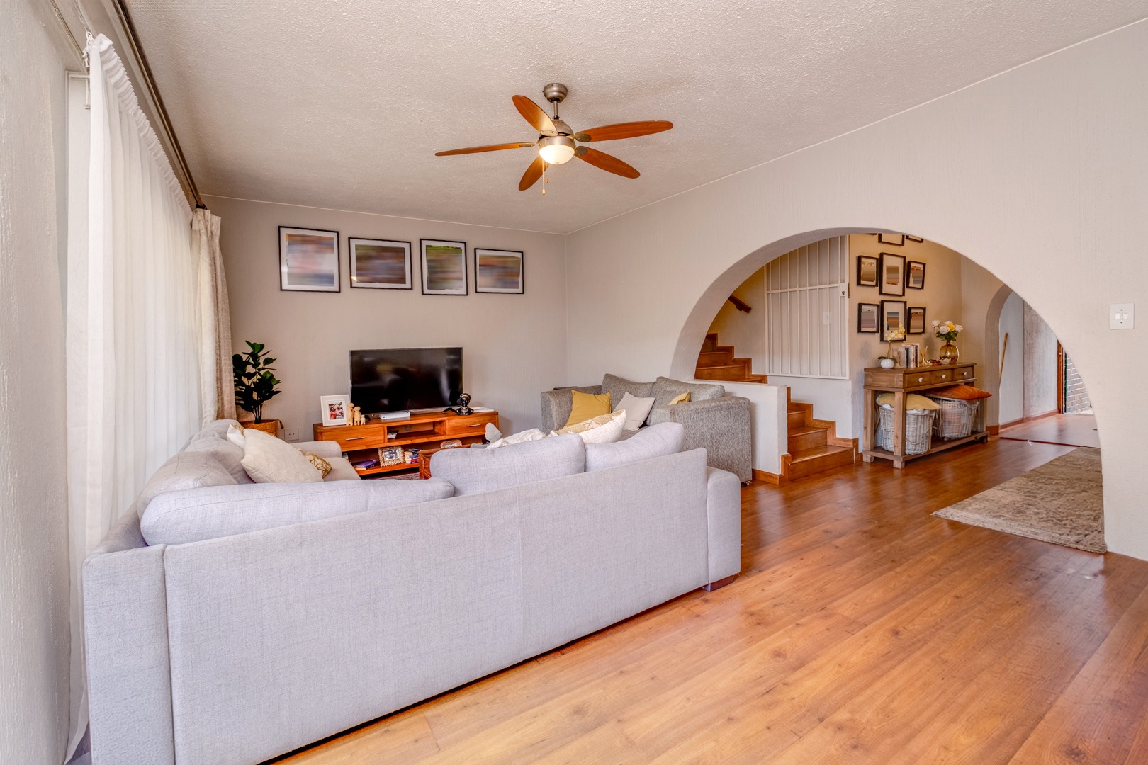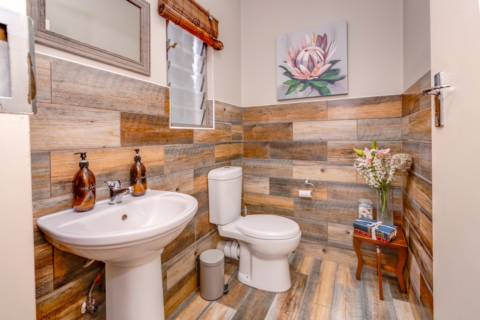 A convenient gorgeous guest bathroom downstairs ensures added privacy for the upstairs living areas, where the bedrooms are thoughtfully positioned and well sized. The main bedroom (mes) is comfortably large and has a dressing area.