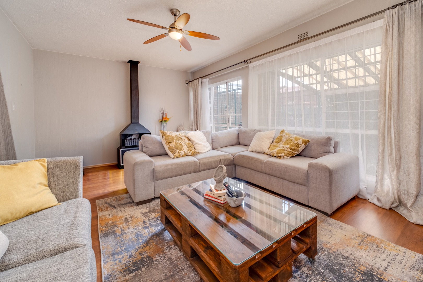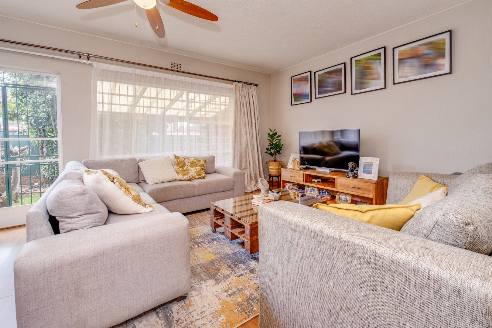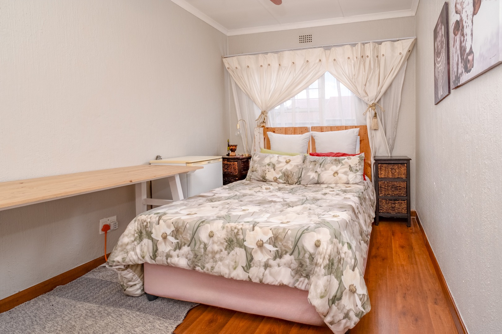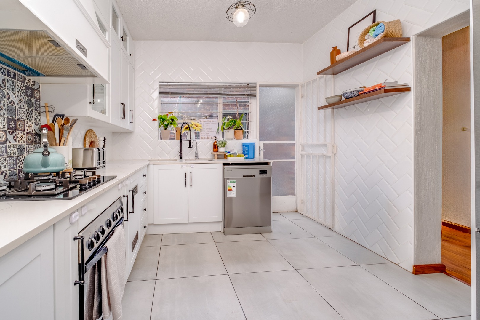 The ultra-modern kitchen is a standout feature, boasting sleek Caesarstone counter tops, ample built-in cupboards, and a gas hob—perfect for home cooks and entertainers alike.
