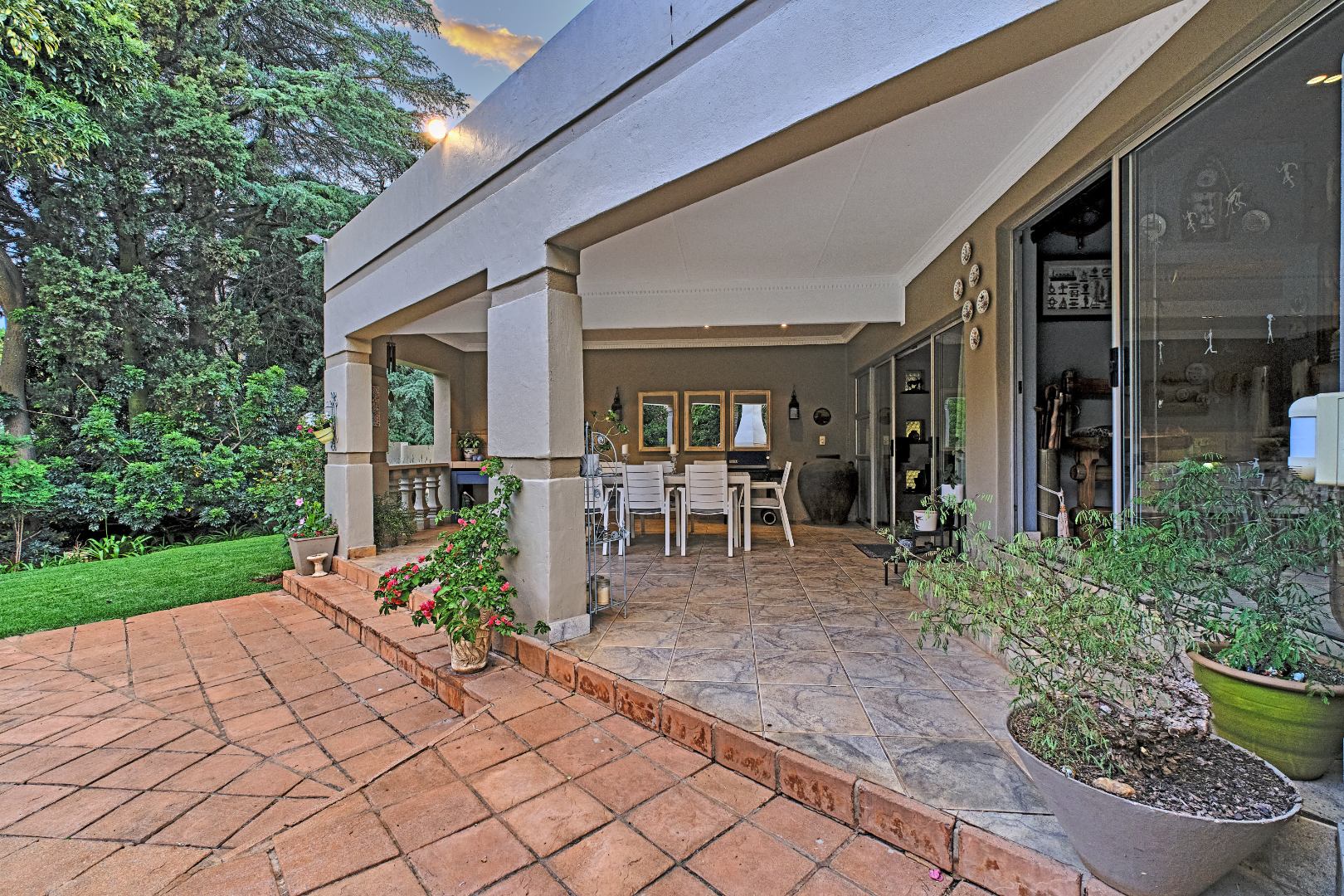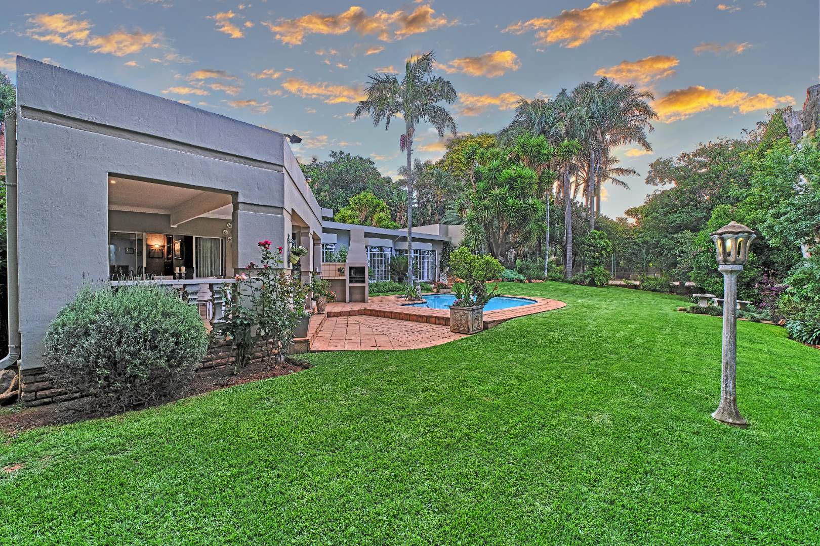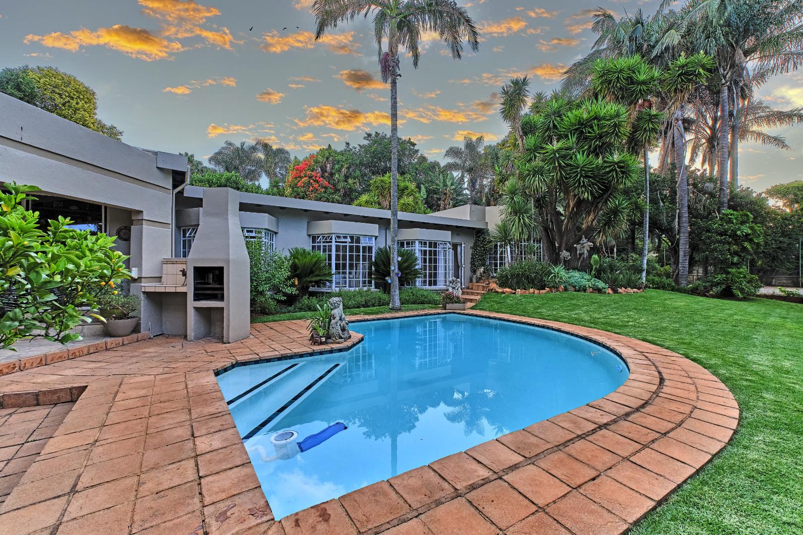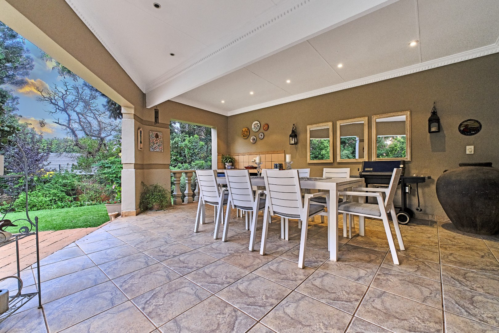 The outdoor amenities are a true highlight, transforming the property into a private resort-like sanctuary. A sparkling swimming pool, surrounded by a manicured lawn and lush garden, invites relaxation. The expansive covered patio, complete with a built-in braai, is perfect for al fresco dining and entertaining guests year-round. For the active family, a private tennis court offers endless recreational opportunities. The property benefits from an irrigation system and a borehole, ensuring the garden remains vibrant. Parking is abundant with four garages and eight additional parking spaces. Pets are welcome, making this an ideal family residence.