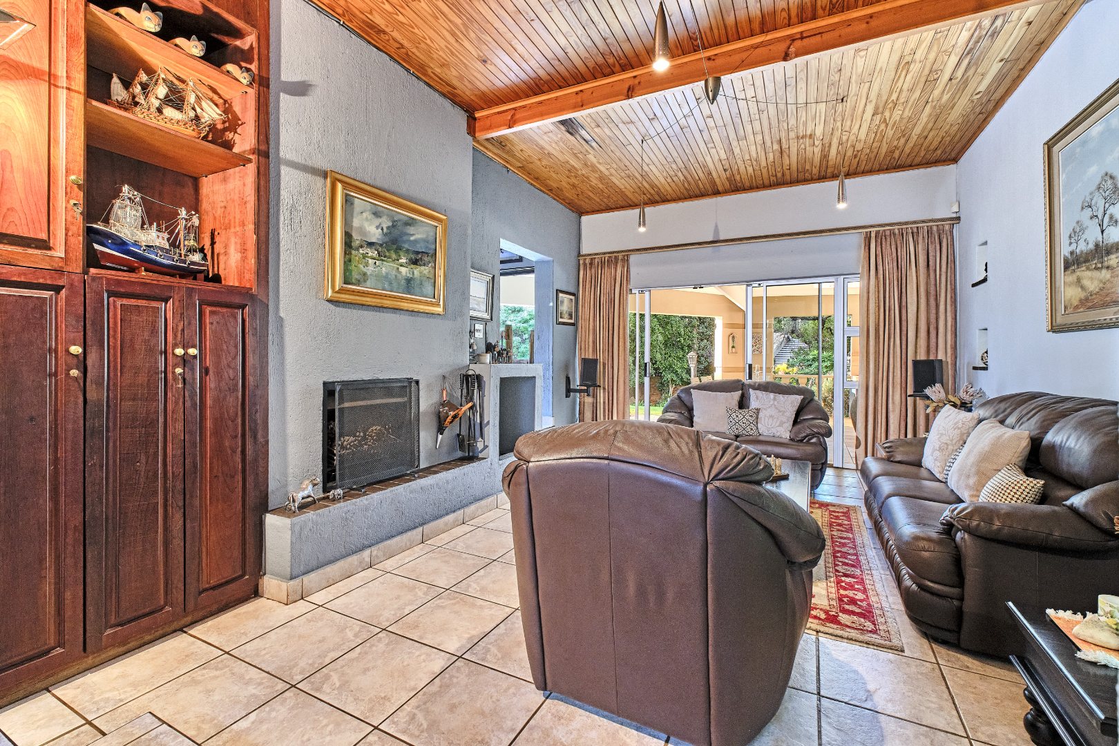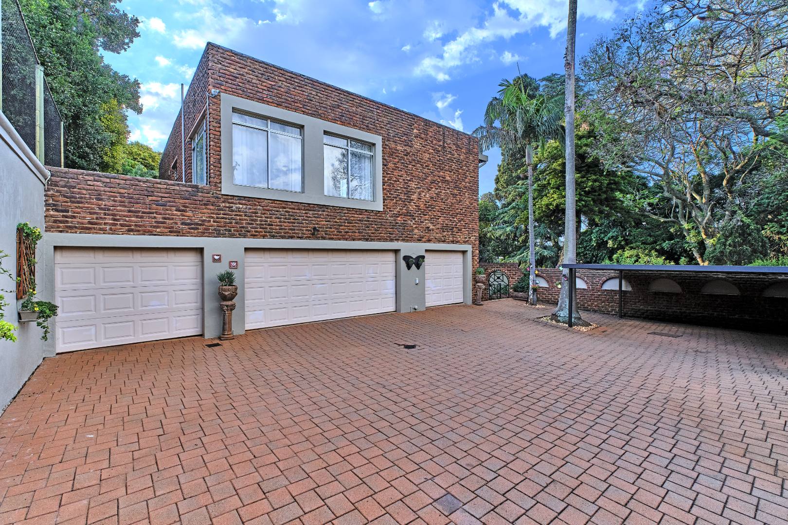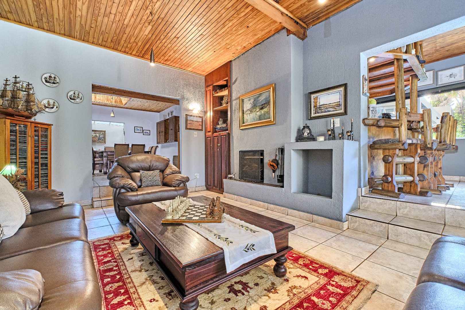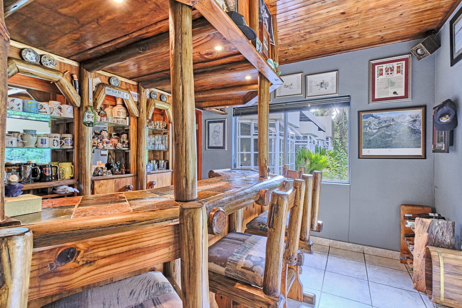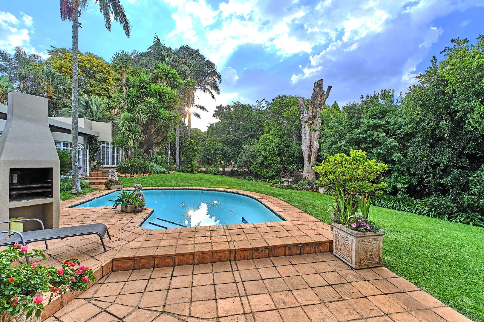 The outdoor amenities are a true highlight, transforming the property into a private resort-like sanctuary. A sparkling swimming pool, surrounded by a manicured lawn and lush garden, invites relaxation. The expansive covered patio, complete with a built-in braai, is perfect for al fresco dining and entertaining guests year-round. For the active family, a private tennis court offers endless recreational opportunities. The property benefits from an irrigation system and a borehole, ensuring the garden remains vibrant. Parking is abundant with four garages and eight additional parking spaces. Pets are welcome, making this an ideal family residence.