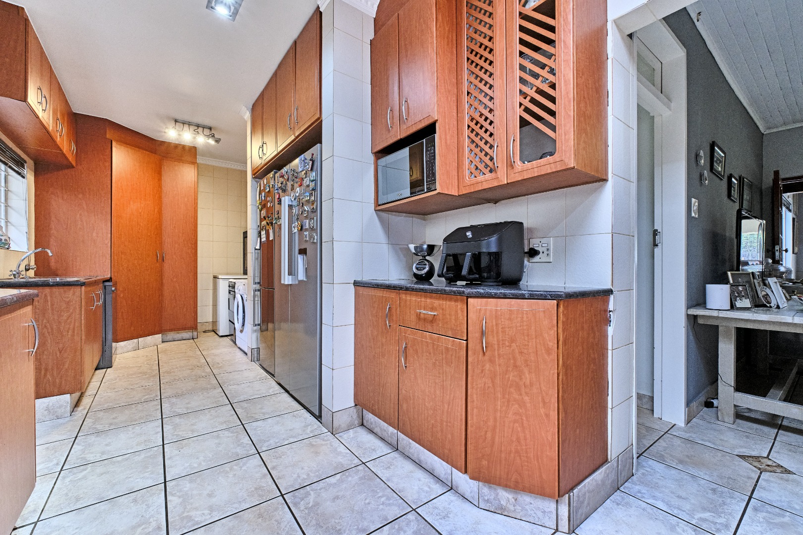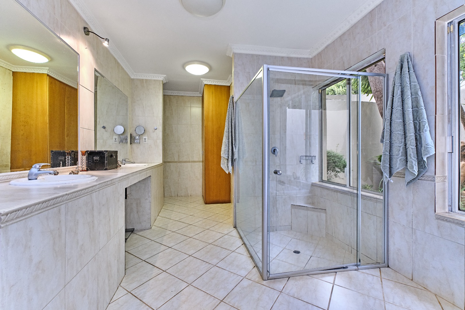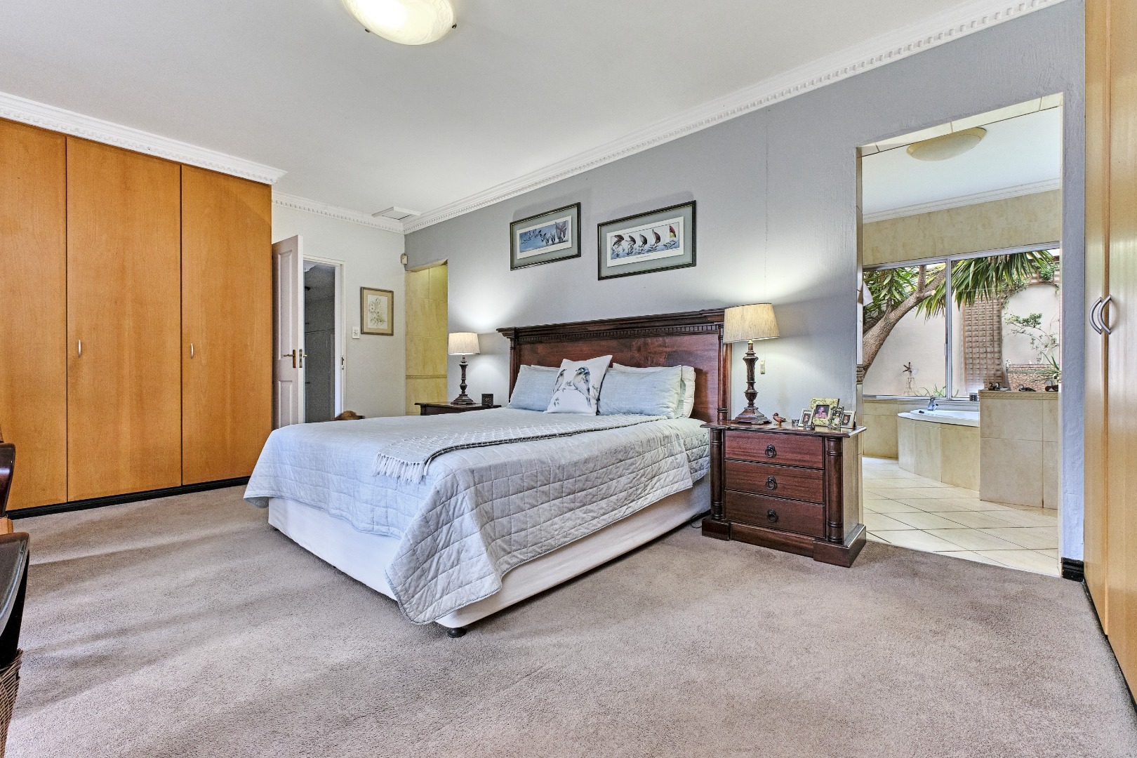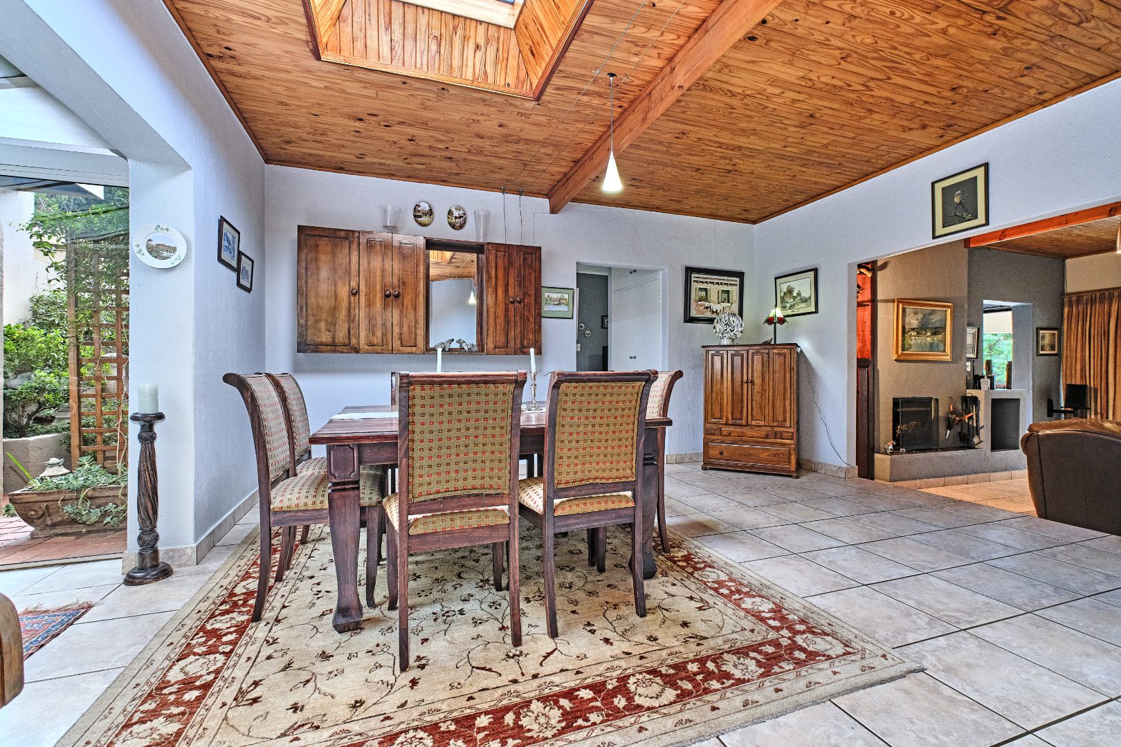 The outdoor amenities are a true highlight, transforming the property into a private resort-like sanctuary. A sparkling swimming pool, surrounded by a manicured lawn and lush garden, invites relaxation. The expansive covered patio, complete with a built-in braai, is perfect for al fresco dining and entertaining guests year-round. For the active family, a private tennis court offers endless recreational opportunities. The property benefits from an irrigation system and a borehole, ensuring the garden remains vibrant. Parking is abundant with four garages and eight additional parking spaces. Pets are welcome, making this an ideal family residence.