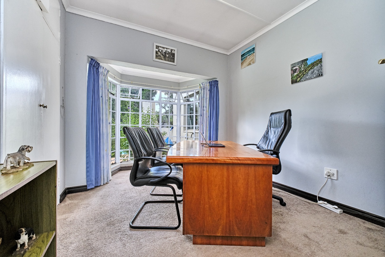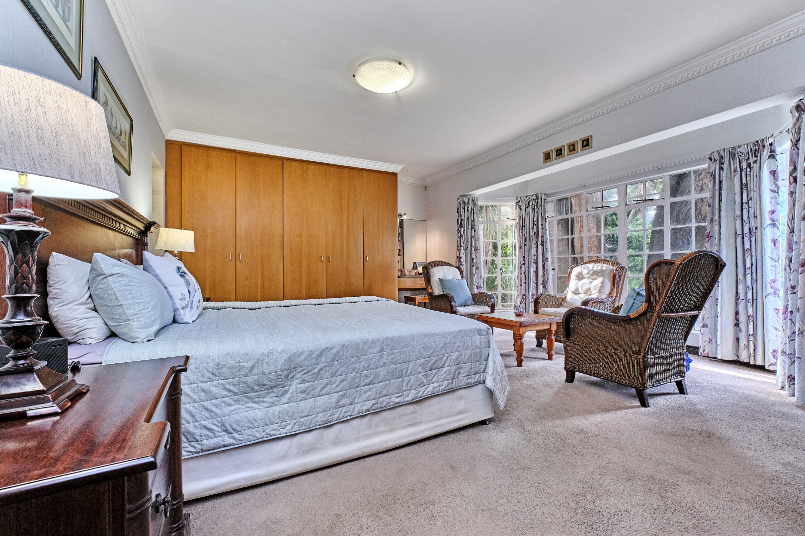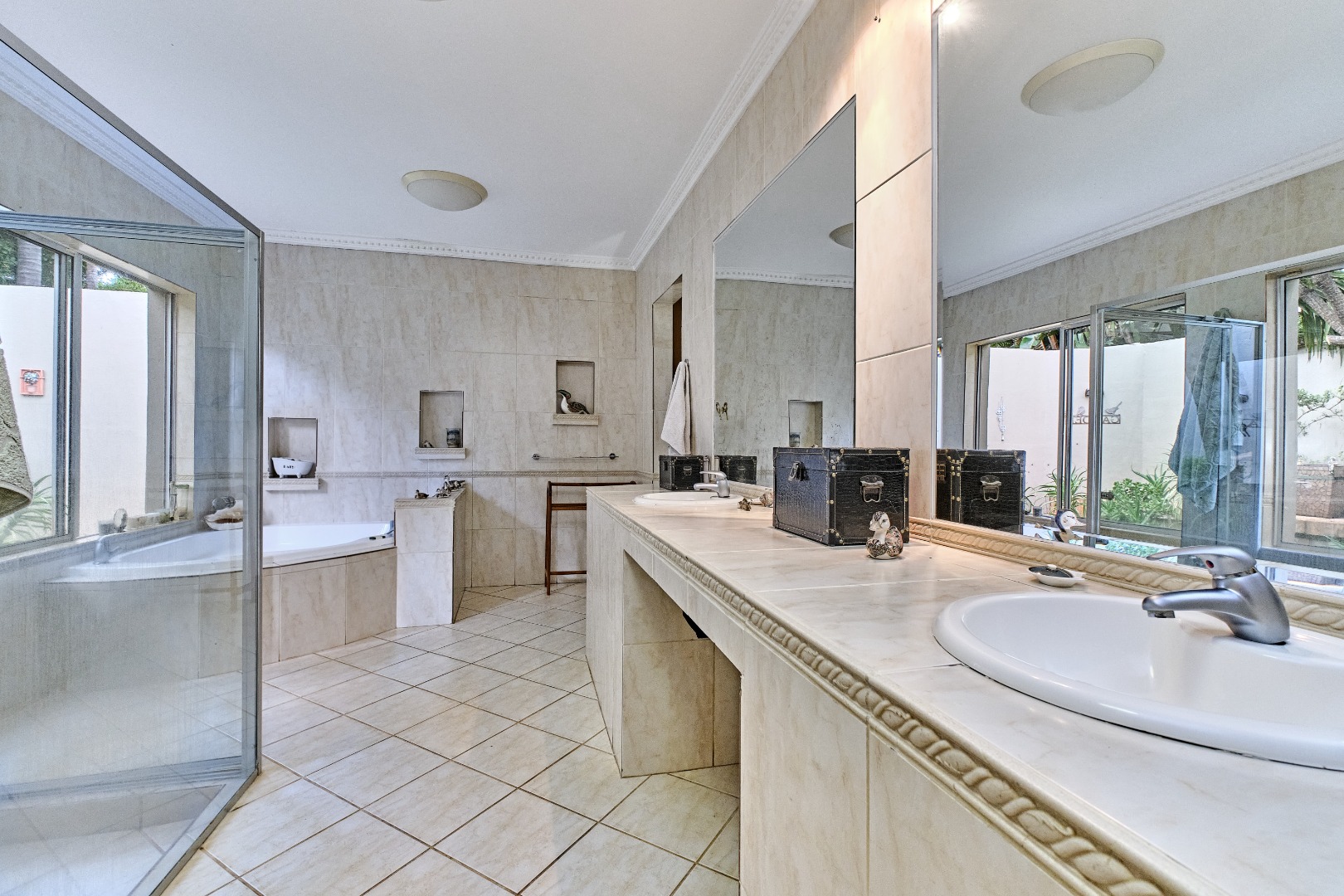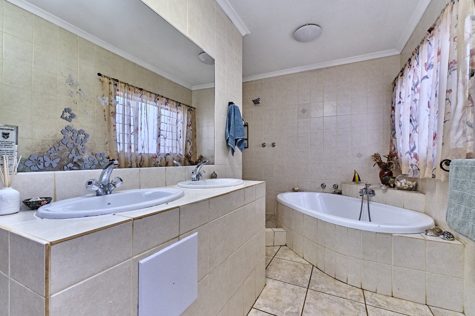 The outdoor amenities are a true highlight, transforming the property into a private resort-like sanctuary. A sparkling swimming pool, surrounded by a manicured lawn and lush garden, invites relaxation. The expansive covered patio, complete with a built-in braai, is perfect for al fresco dining and entertaining guests year-round. For the active family, a private tennis court offers endless recreational opportunities. The property benefits from an irrigation system and a borehole, ensuring the garden remains vibrant. Parking is abundant with four garages and eight additional parking spaces. Pets are welcome, making this an ideal family residence.