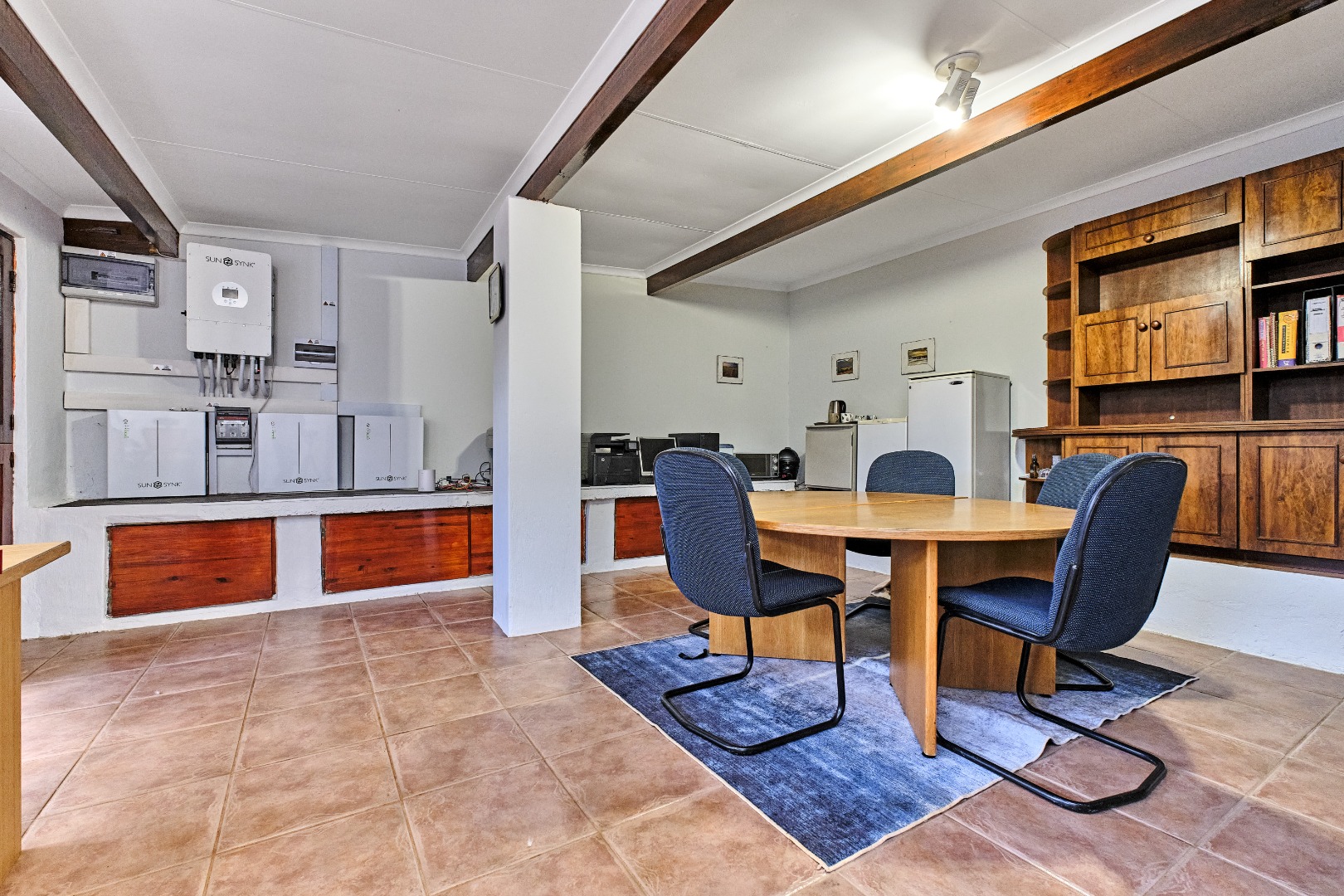 Security is well-addressed with an alarm system, electric fencing, an access gate, and an intercom, all within a totally walled perimeter for enhanced privacy. Modern conveniences include fibre connectivity, a battery inverter, and solar panels, contributing to energy efficiency and reduced utility costs.