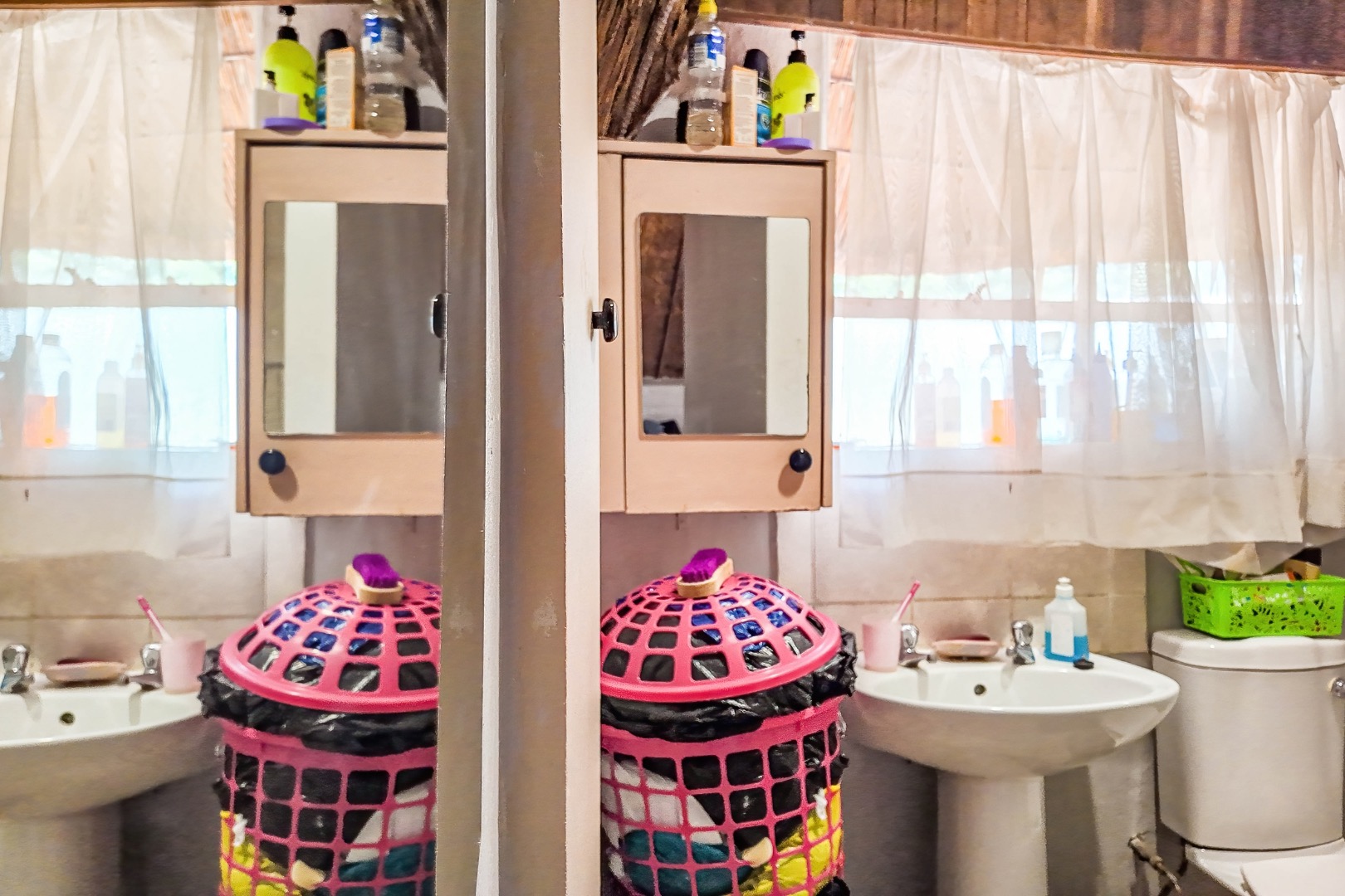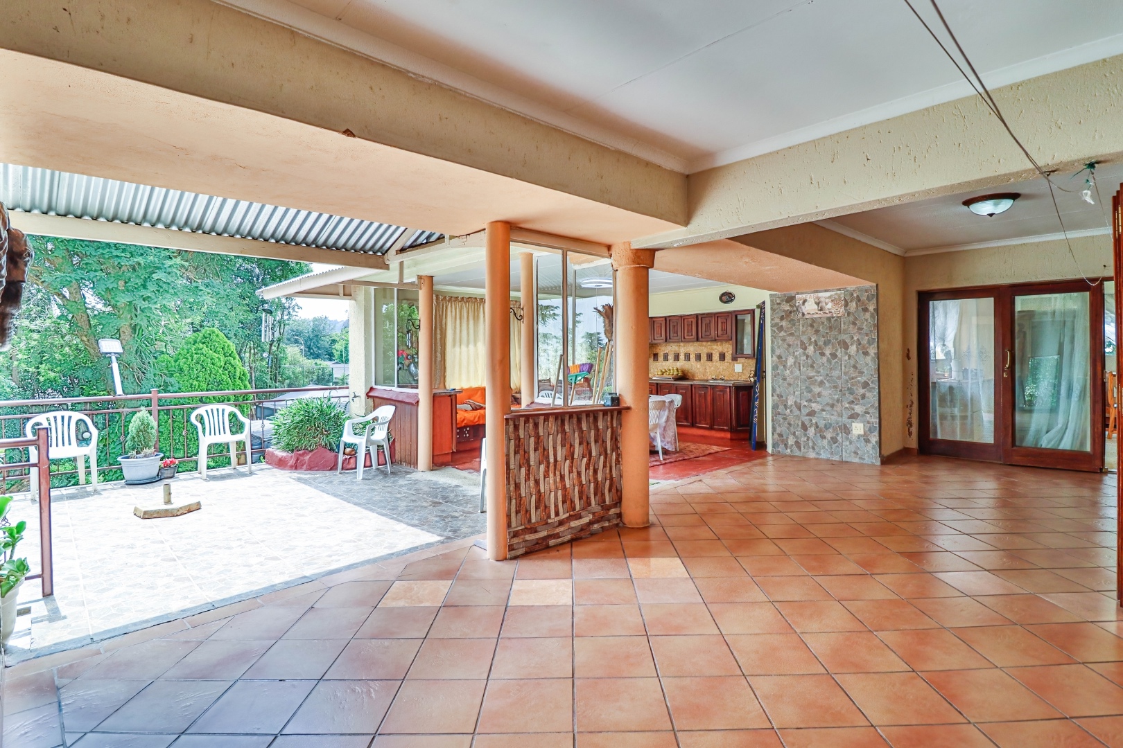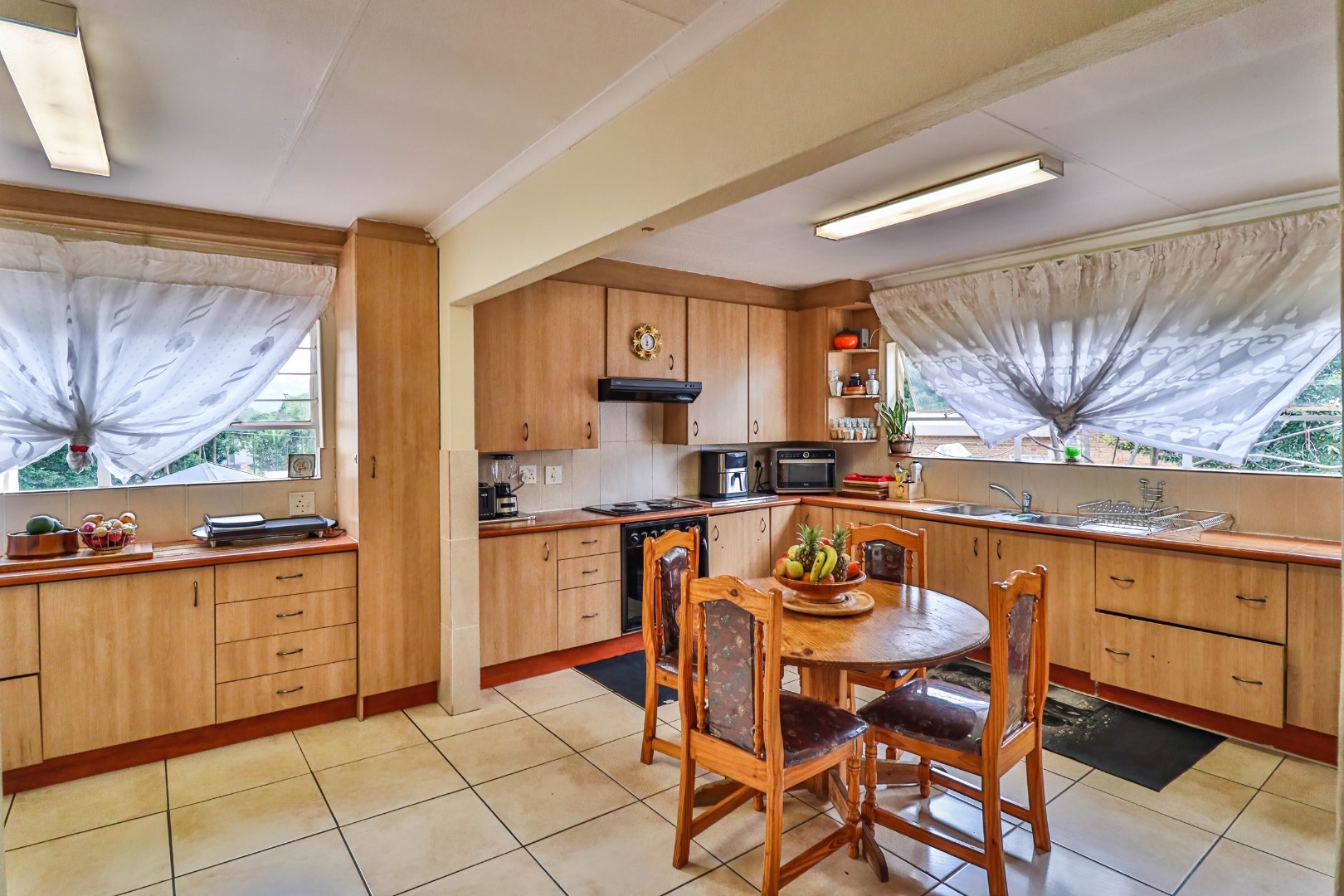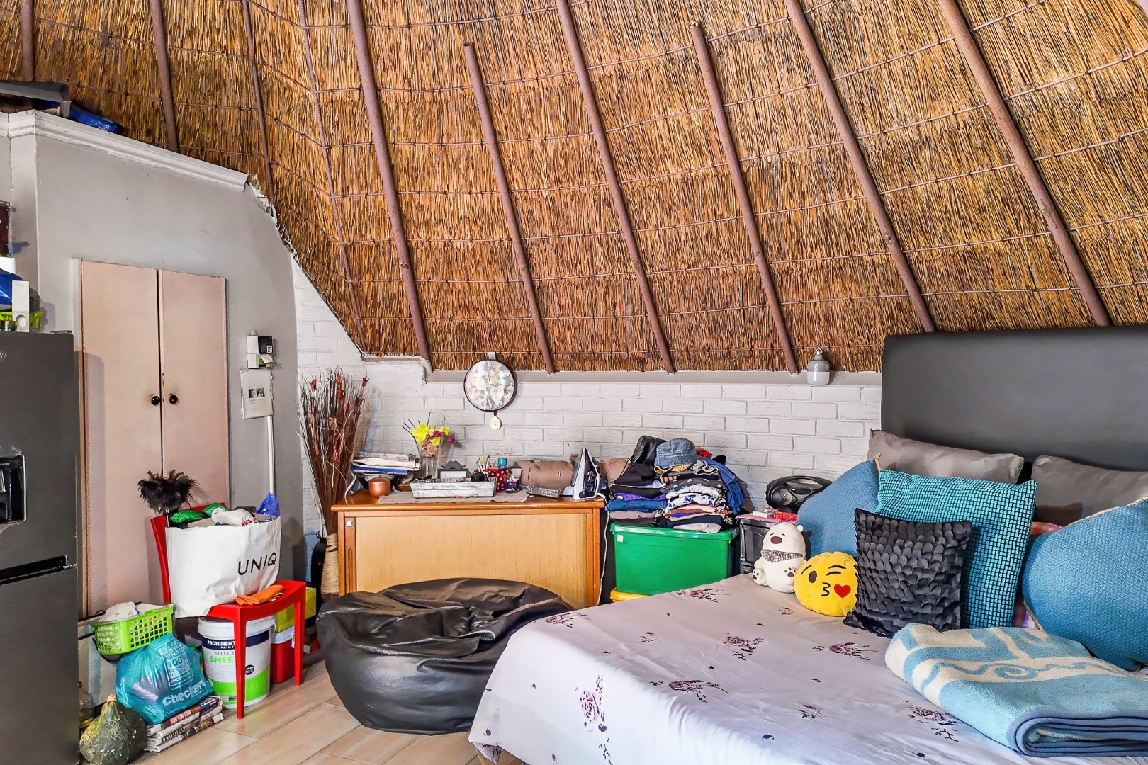 Accommodation includes seven well-proportioned bedrooms and four bathrooms, with two en-suite bedrooms and a guest toilet for added convenience. A separate flatlet, along with domestic rooms and outside toilets, further enhances the home’s adaptability for extended family, guests, or staff. Distinctive thatched-roof features, including a charming rondavel, add character and architectural interest to the property