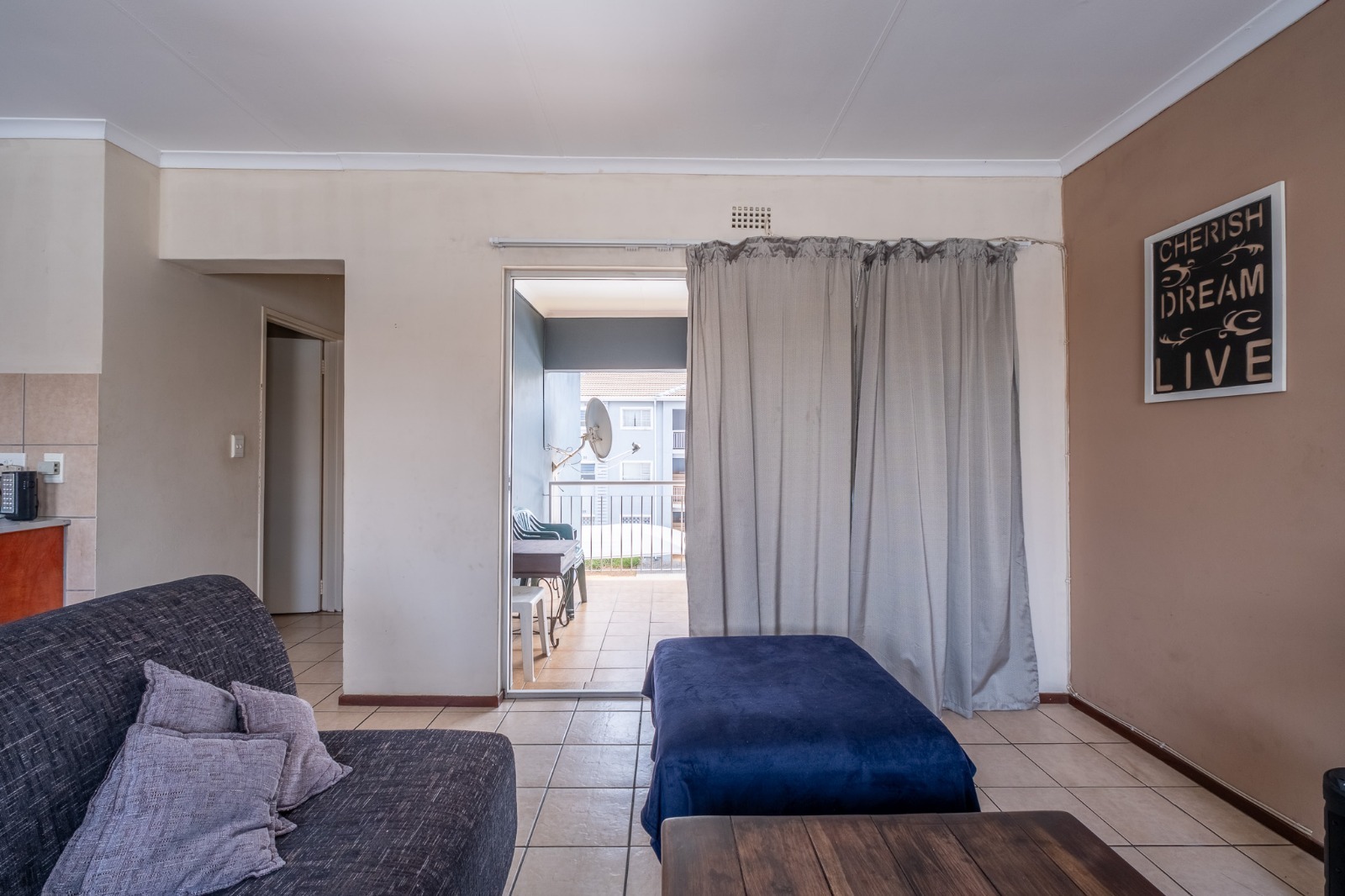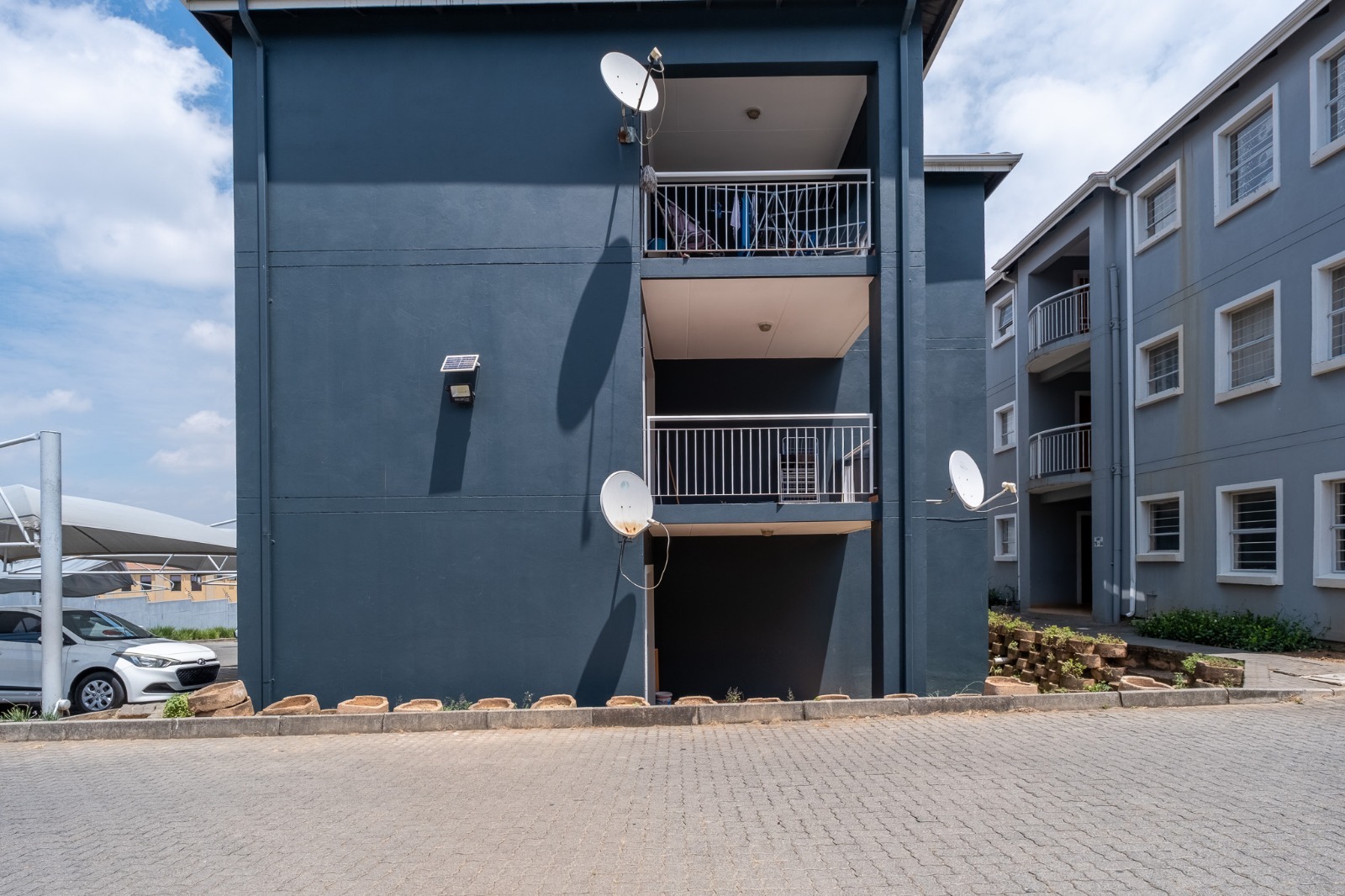 Unusually large covered balcony with stunning open view. Great position in the complex - nicely tucked away. Allocated carport. Ample visitors parking.