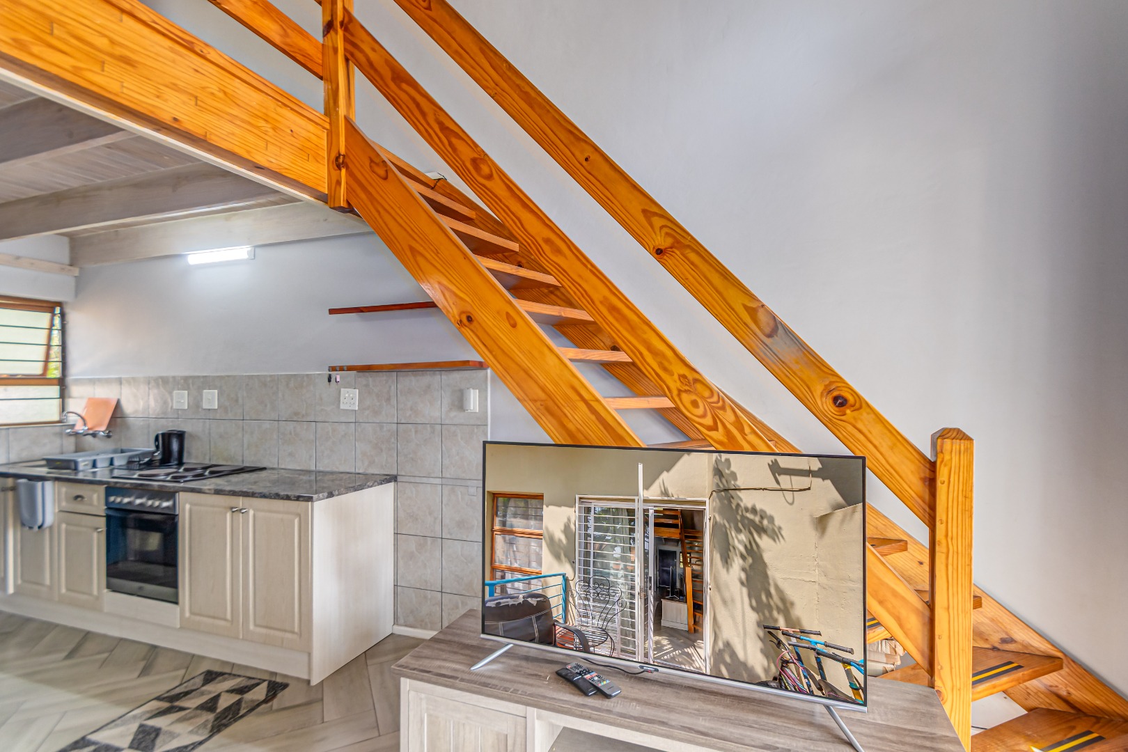Spacious open-plan living area leading to a private balcony, perfect for relaxing or enjoying a braai.