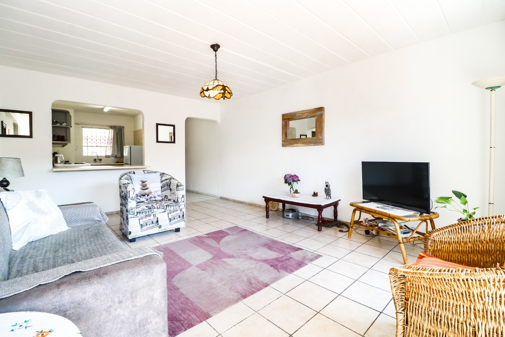 Both bedrooms are with laminated flooring. Tiled lounge/dining room.