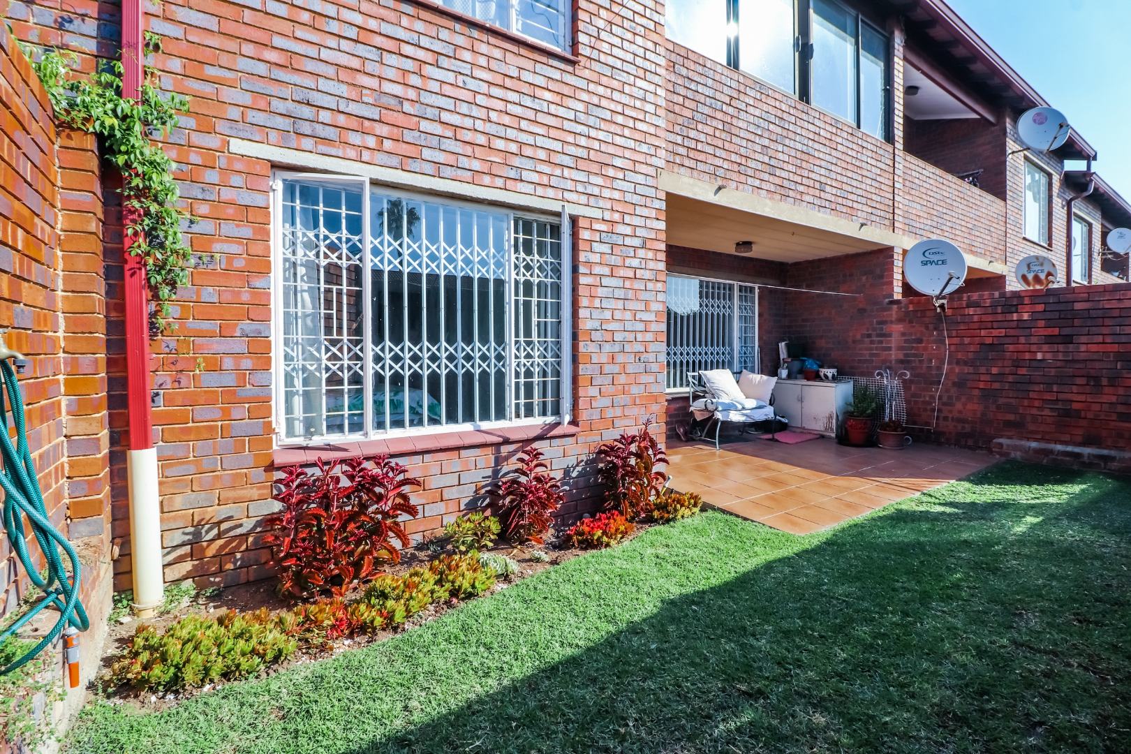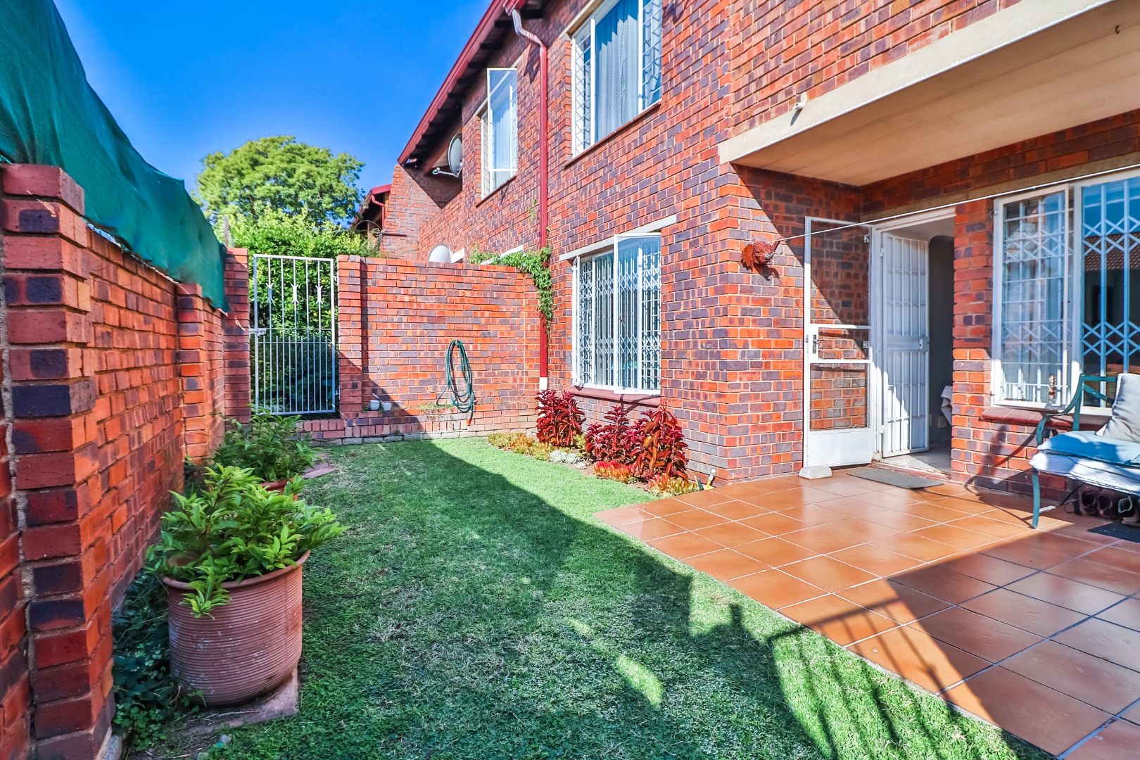 Covered patio opens to own walled garden. Individual water meters. Reasonable levy,