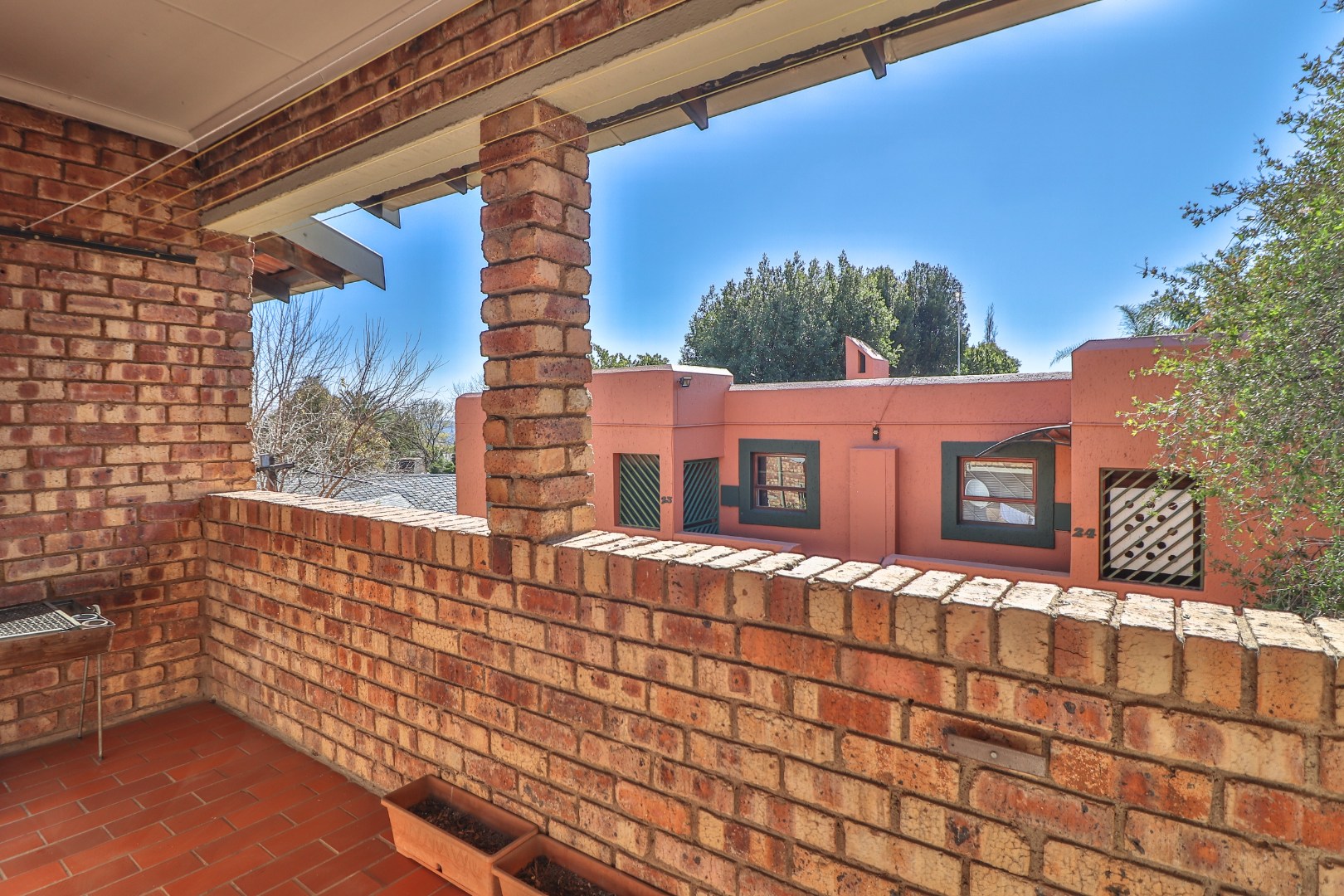 Covered balcony. Private and spacious.