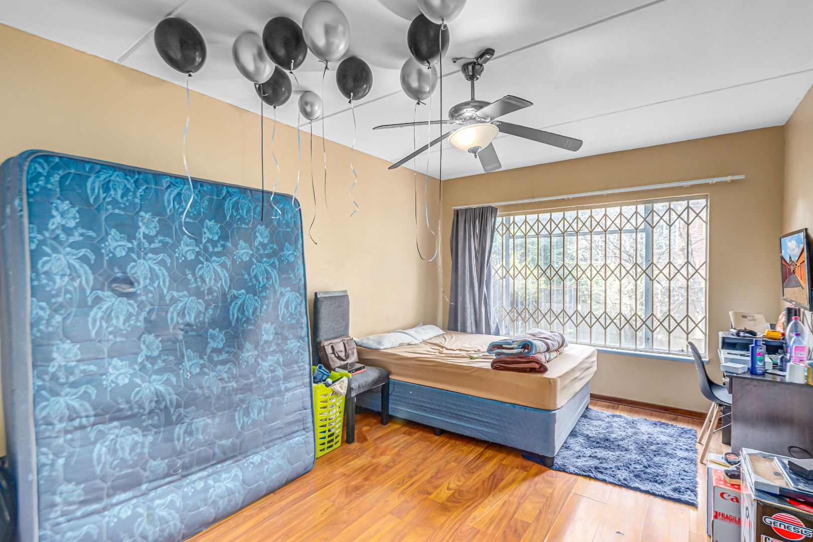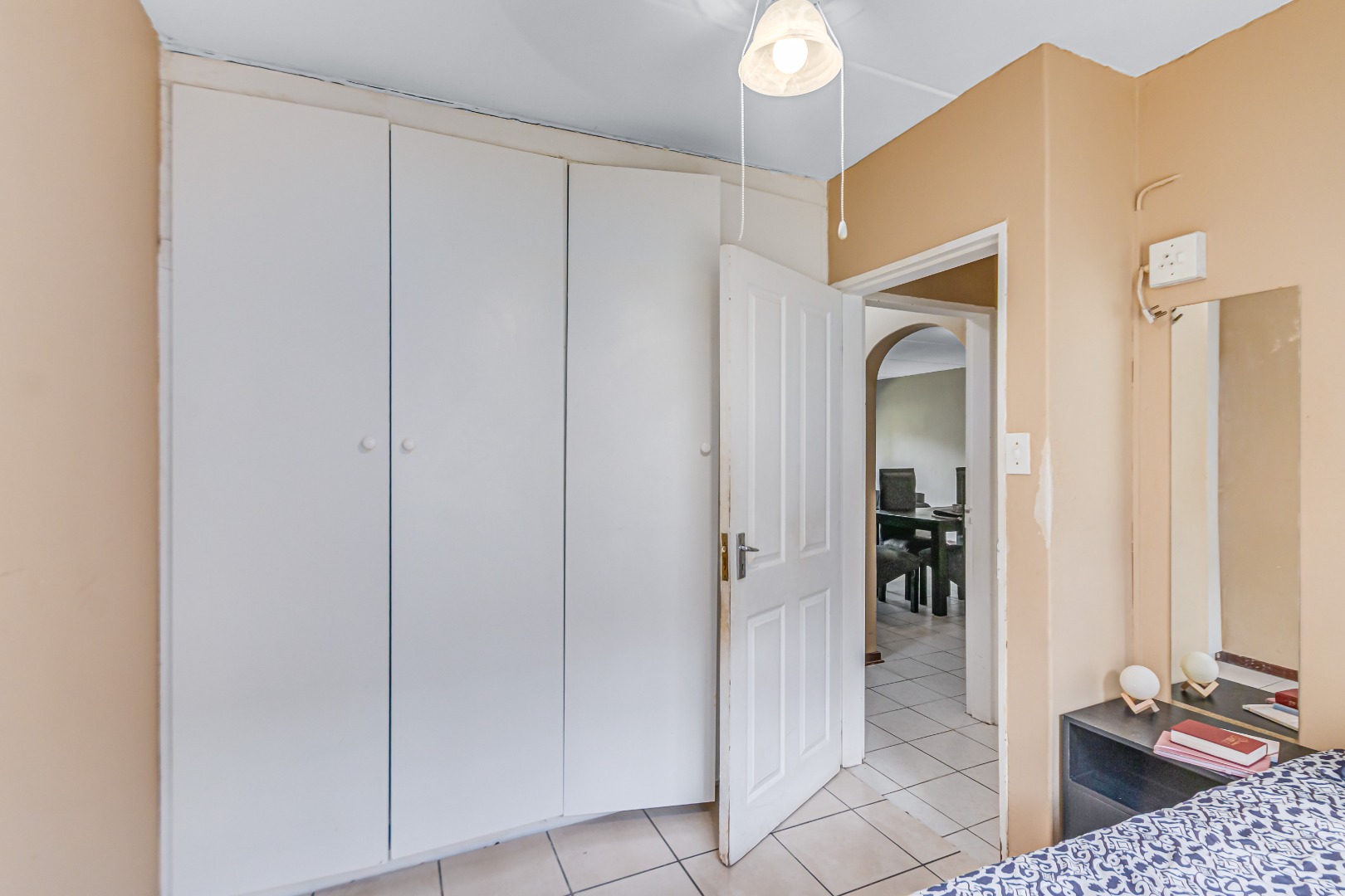 Both bedrooms are generously sized, with plenty of built-in cupboards and security bars on the windows. The main bedroom features stylish laminate flooring, while the second bedroom is tiled – both neat and move-in ready.