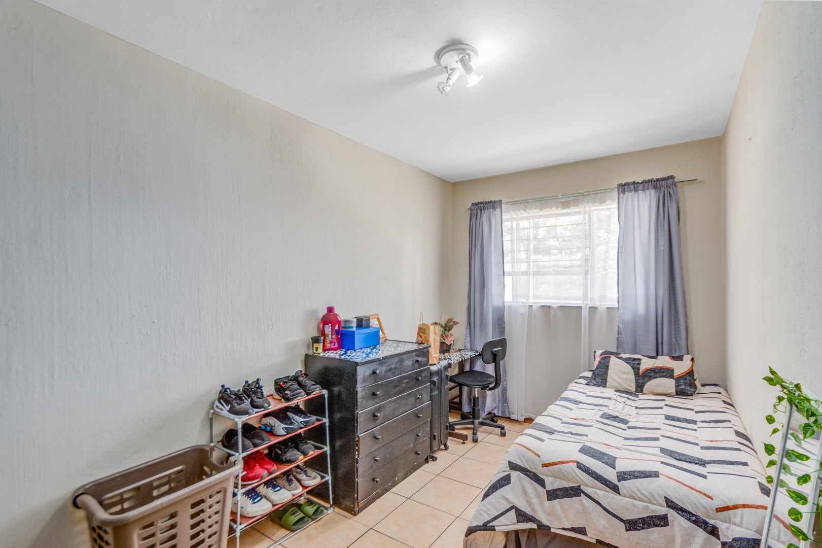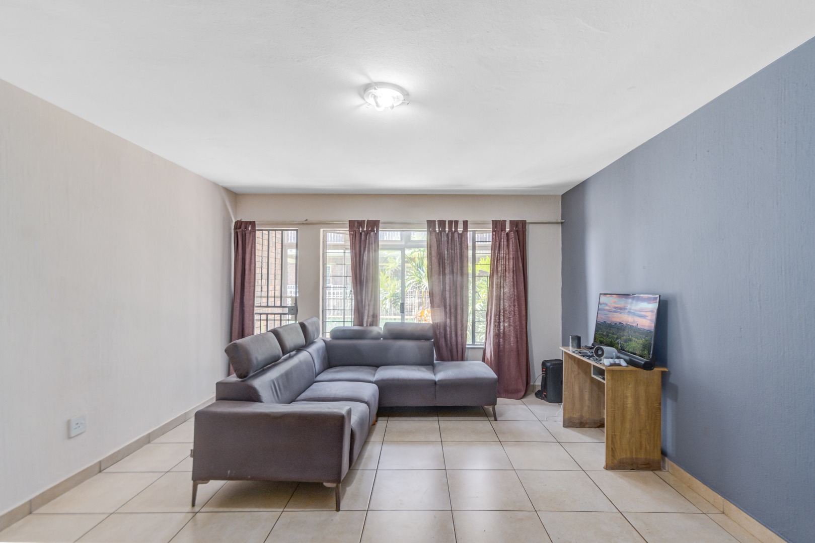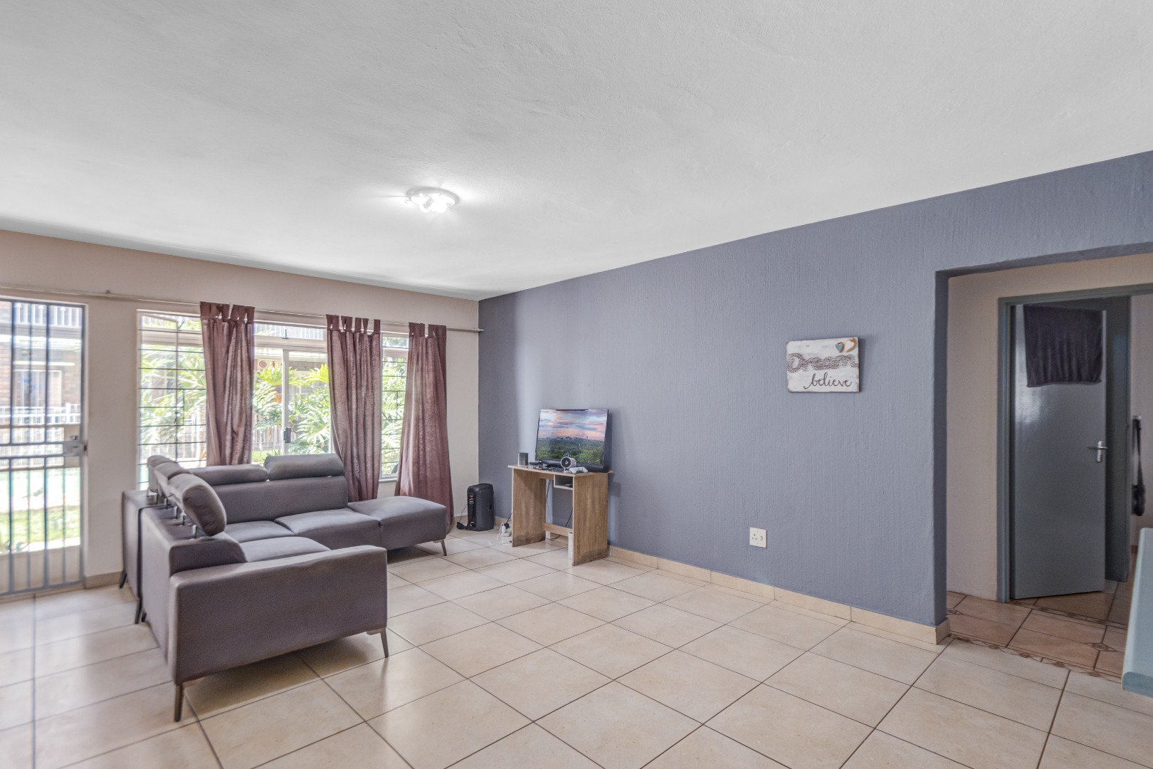 Step inside and you’ll find a tiled open-plan living area that easily fits both a lounge and dining setup, leading through sliding doors to a covered patio and your own private garden – perfect for morning coffee or weekend braais.
