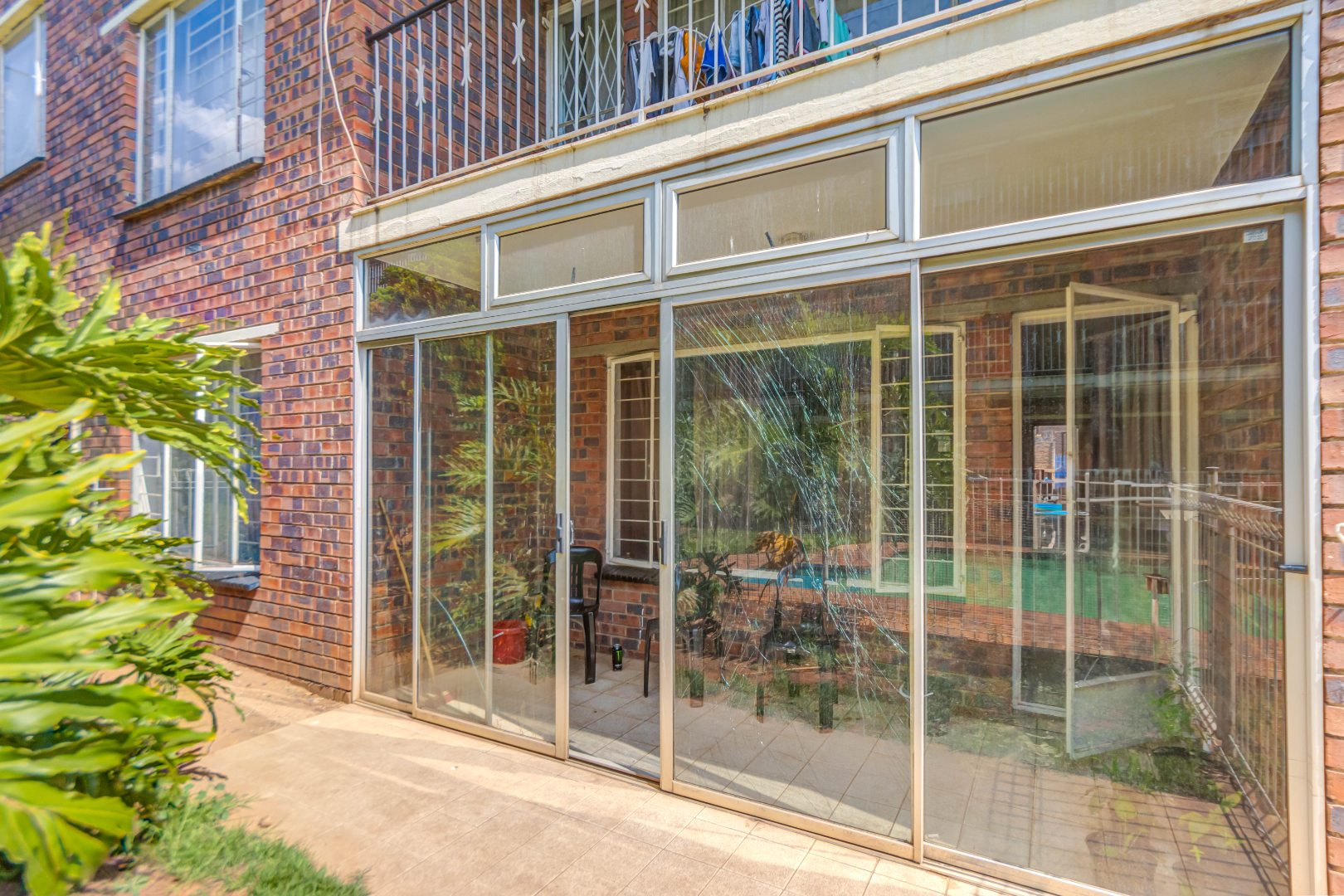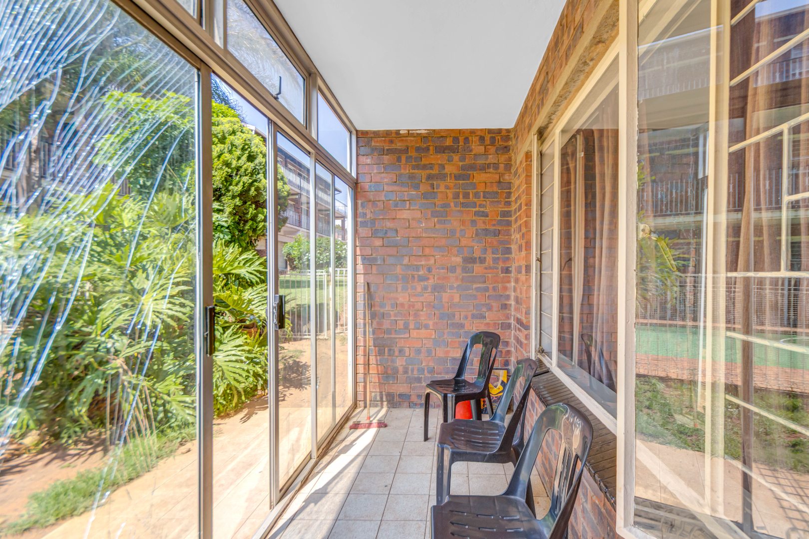 One of the standout features of this home is the enclosed sunroom-style patio just off the lounge, with sliding doors that open out to the garden and offer a lovely view of the sparkling complex pool.