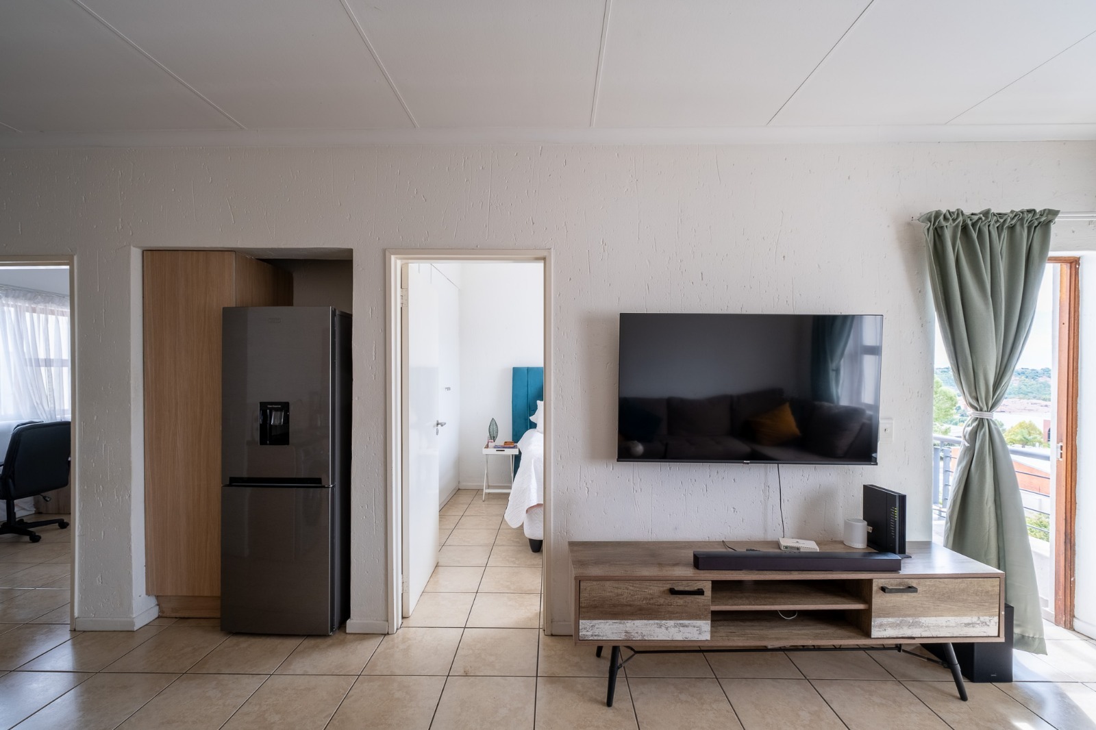 Open plan kitchen/lounge. Granite tops, sizeable Pantry. Space for 2 appliances. Lounge leading to a private balcony with an open view. Apartment is fully tiled. Neatest. Move in condition. Great location - border Ferndale EXT/ Bryanston EXT. Easy access to N1, Sandton and Bryanston.