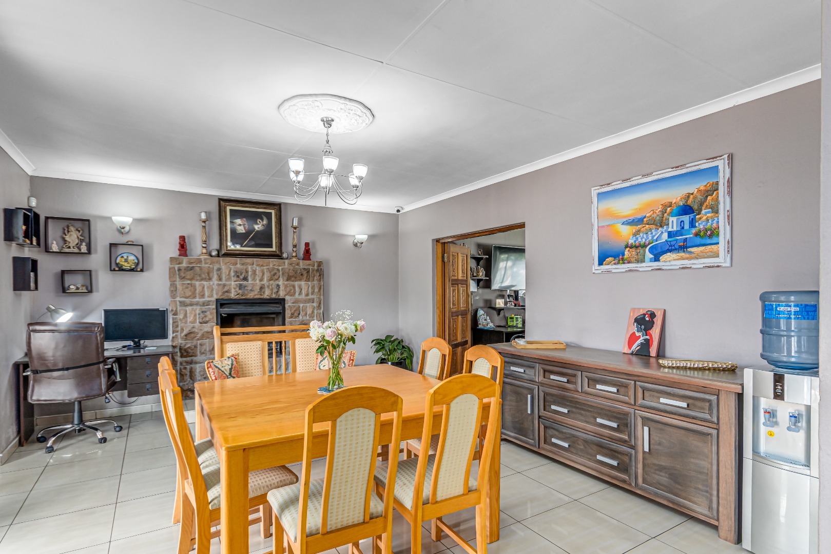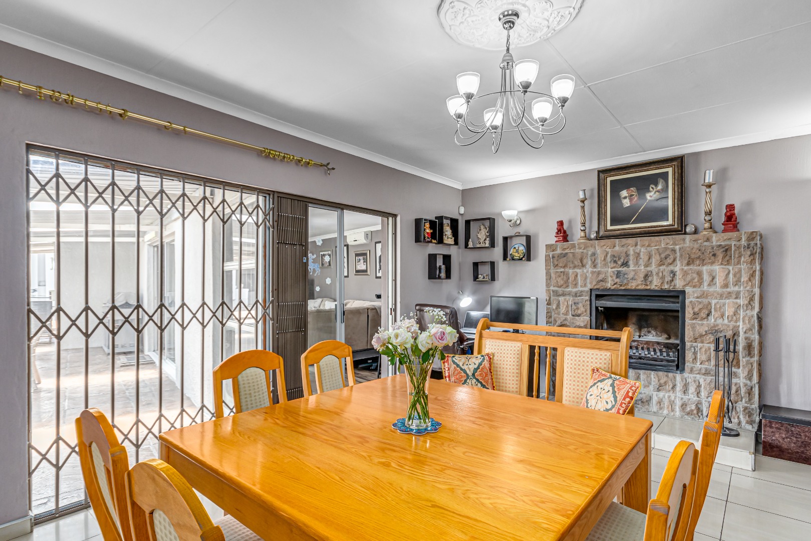 Boasting three spacious bedrooms and two bathrooms (including a main en-suite), this home is designed with comfort in mind. Multiple living areas—including a warm lounge, formal dining room, and a separate TV/family room—ensure everyone has their own space to unwind.
