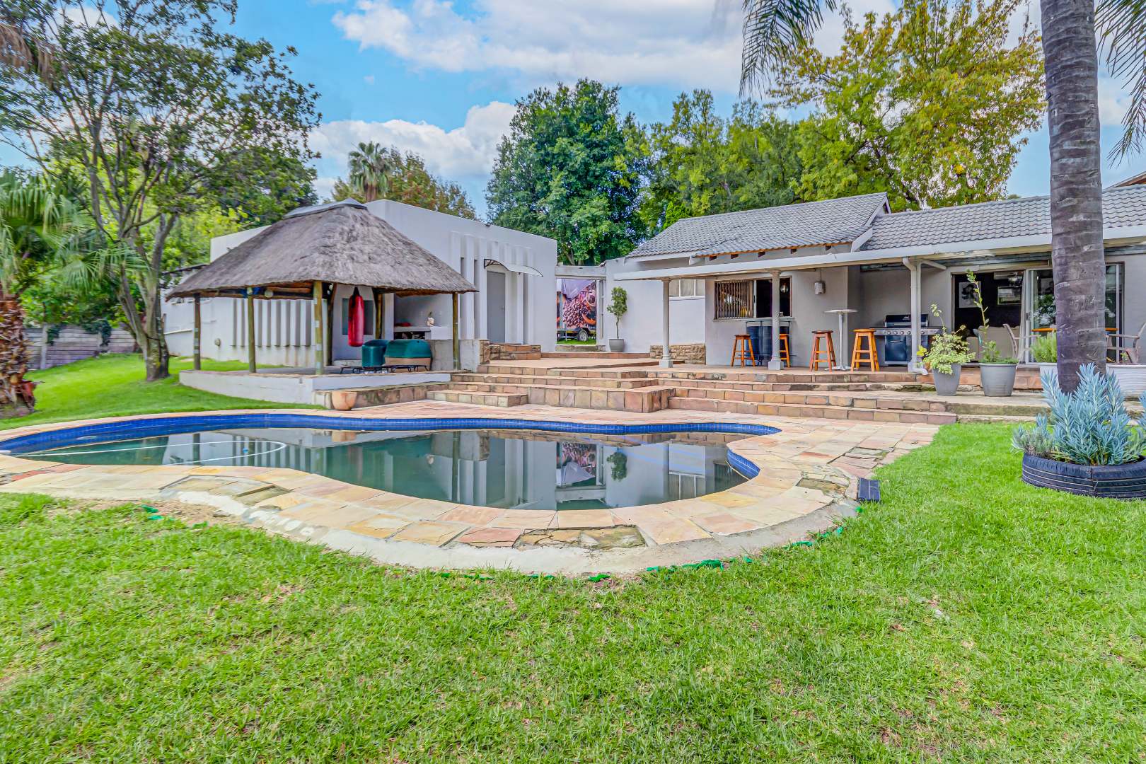 Step outside and enjoy your own private oasis! A lush garden, sparkling swimming pool, and welcoming patio create the ultimate setting for weekend braais, entertaining friends, or simply soaking up the sunshine. The built-in bar adds that extra touch of fun and flair.